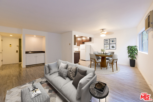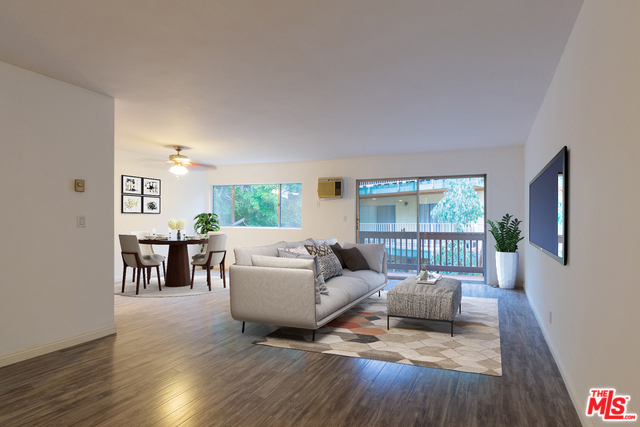 Spacious corner unit with a bright and open floor plan with an updated kitchen, and laminate flooring throughout. HOA allows combo washer/dryer inside. Enjoy treetop views from the balcony. Large bedroom with walk-in closet. The bathroom has double sink with a separate shower and bath. Resort-style complex with pool, rec room, hot tub and beautiful grounds with coy pond. Individual and bike storage available. Walking distance to Fox Hills Park and Culver City Westfield Mall; easy access to freeways, beaches, and LAX. Don't miss this great opportunity to be part of the Culver City community and award winning schools. There is a special assessment until 2030 of $225 per month.