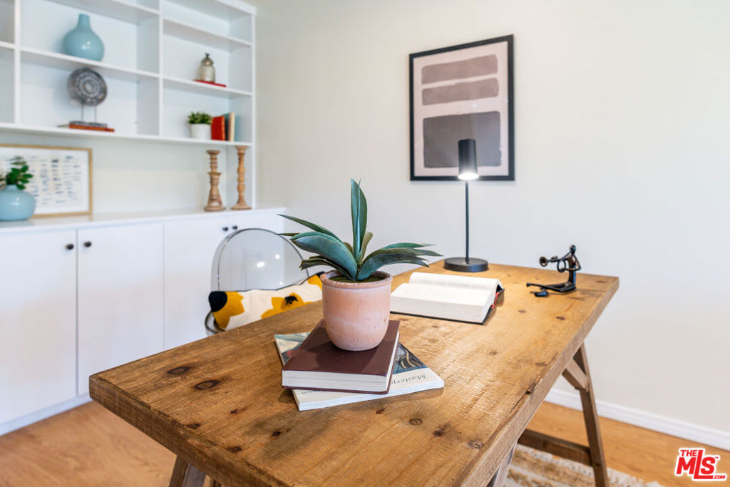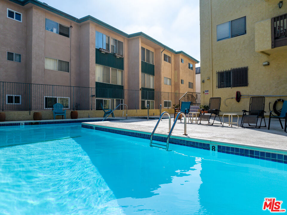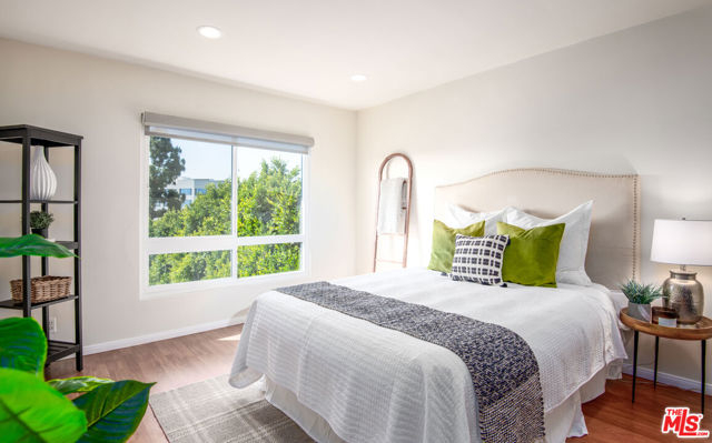 Elevate your lifestyle in this contemporary top floor corner end unit affording sweeping skyline and sunset views. Upon entry take in the sleek open-concept aesthetic this bright and spacious home affords with an oversized living room with office/flex space, well-equipped kitchen with stainless steel appliances and modern finishes, and hard-surfaced flooring throughout. Enjoy the convenience of having 2 remodeled bathrooms and the comfortable bedroom is sure to please with its delightful views, privacy, and large walk-in closet. Relax and enjoy sunny summer days, breezes, and views from the outdoor balcony. Additional highlights include an in-unit washer/dryer combo, double-pane windows with a built-in window AC unit, smooth ceilings with recessed lighting, and gated parking by the elevator. Complex amenities include controlled access, manicured grounds, and inviting outdoor pool and spa. 10-acre Fox Hills Park is 2 blocks away and a plethora of retail shops and eateries are close by.