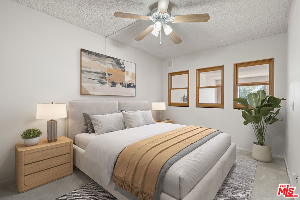 Motivated sellersubmit your offer on this top-floor, move-in-ready Adobe Grande condo offering light-filled living and serene treetop views. Spacious and light-filled 2-bedroom, 2-bath in the Adobe Grande, TOP-FLOOR with serene treetop views, this condo is in move-in condition and exudes modern sophistication. Grand double door entry welcomes you into a spacious and bright unit. The open floor plan effortlessly connects the living room, dining area, kitchen, and balcony, creating an airy, sunlit space ideal for both entertaining and everyday living. The galley kitchen features stainless steel appliances, and both bathrooms have been fully remodeled with designer-inspired finishes. Overall, this unit offers an exceptional layout with abundant storage and closet space. Additional conveniences include in-unit laundry with a full size stackable washer & dryer, A/C wall unit, extra storage space, secured bike room, and two tandem, end parking spaces. Adobe Grande is a secure, resort-like complex with a sparkling pool and spa, recreation room, and beautiful grounds featuring running brooks and a koi pond, all just steps from your front door. Situated close to Fox Hills Park and Westfield Culver City Mall, with easy access to freeways and short drives to Venice Beach, Marina del Rey, LAX, and premier restaurants, this location blends convenience with lifestyle. All furnishings and decor are virtually rendered.