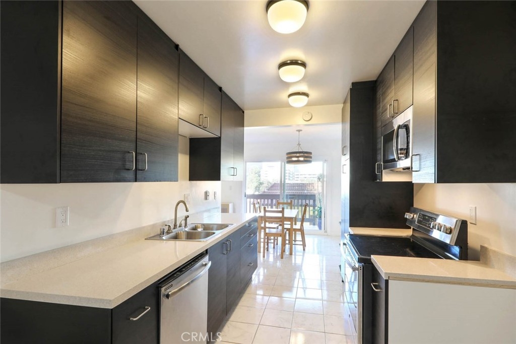 Welcome home to this updated Fox Hills condominium at the Adobe Grande, located in a gentrified and diversified area of Culver City. Enter the double front door, through the warmly lit foyer, and into the open area of your living space that is bright and drenched in natural light. You will love the remodeled chef's galley kitchen with granite counter tops, stainless steel appliances, and modern custom cabinets. Your freshly painted master bedroom suite has a west-facing window and an updated bath with separate tub and shower. An updated half-bath in the hallway, and a den with closets which can double as a second bedroom that has beautiful french doors opening into the living room. Dual-pane windows throughout and a slider off the dining area that opens out to the balcony where you will enjoy cool breezes, city views, and golden sunsets. Single parking under building (#77). Adobe Grande is a secure, resort-like complex with pool/spa, recreation room, and beautiful grounds with running brooks and koi pond, all just steps from your front door. HOA allows combo washer/dryer inside. Walking distance to Fox Hills Park, Culver City Westfield Mall; easy access to freeways; short drives to Venice Beach, Marina del Rey, LAX, and great restaurants in nearby Inglewood. It's an ideal place to call home for professionals, couples, or young families.