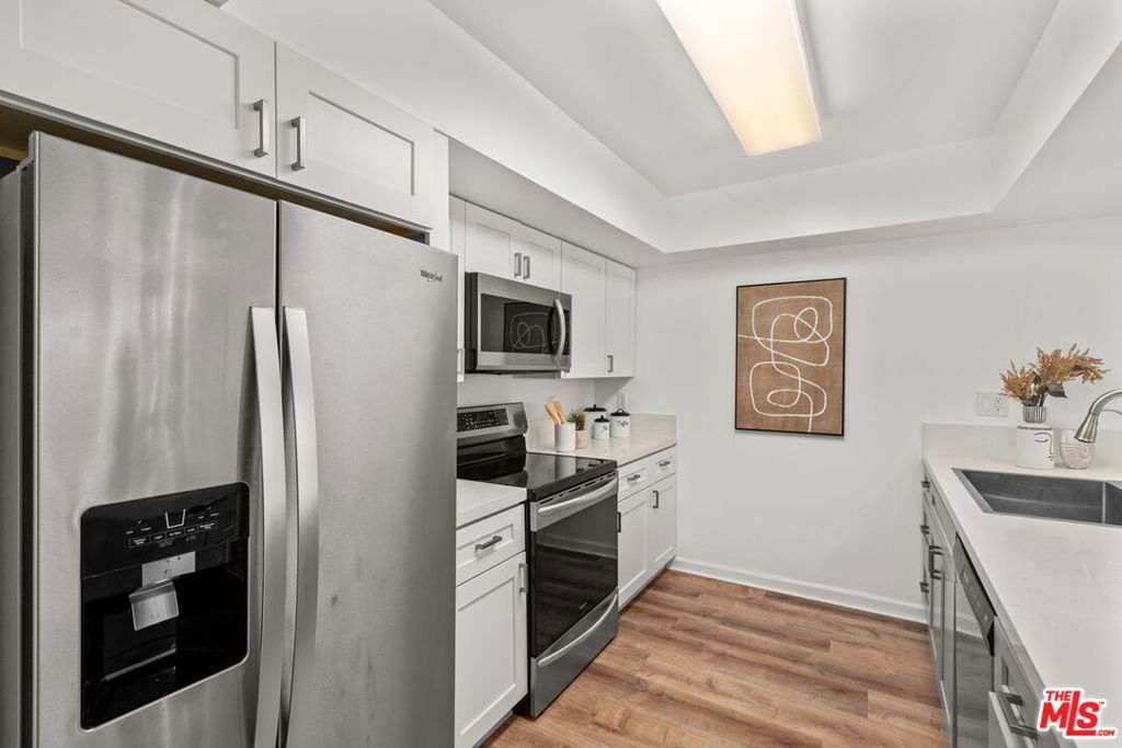 Cambridge House is a charming boutique condo complex with only 24 units, perfectly situated in a prime Culver City location. Just minutes from downtown, shopping, and transportation, this two-bedroom, two-bath condo offers modern upgrades and exceptional convenience.This corner unit features a private balcony overlooking the park and a pool view from the bedroom window. Located near the cul-de-sac at the edge of the complex, it enjoys tranquility, privacy, and beautiful tree-lined views.Inside, the updated shines with luxury flooring throughout, contemporary LED lighting, and a sleek, modern kitchen with an expansive countertopperfect for cooking and entertaining. The open-concept design seamlessly connects the kitchen to the dining area and family room, enhancing the sense of space.Both bedrooms offer full-wall closets for ample storage, while additional closets in the hallway provide extra convenience. A stacked washer/dryer is located in-unit, with community laundry available as well. Need more storage? A locked owner storage room and additional space in the gated parking garage ensure plenty of room for belongings.Two side-by-side assigned parking spaces are included in the controlled-access garage. The HOA fees are among the lowest in the area. Cambridge House amenities include a pool, elevator, and secure entry, and the complex is pet-friendly.Fox Hills Park, just down the street, offers a jogging/walking path, basketball, tennis, and pickleball courts, BBQ areas, and a playground. Plus, Trader Joe's, Sprouts, Starbucks, Westfield Mall, and major freeways are just minutes away, providing quick access to LAX, the Marina, and the beach.This move-in-ready condo is the perfect blend of style, comfort, and convenience. Schedule your showing today! Portable a/c with heater included.