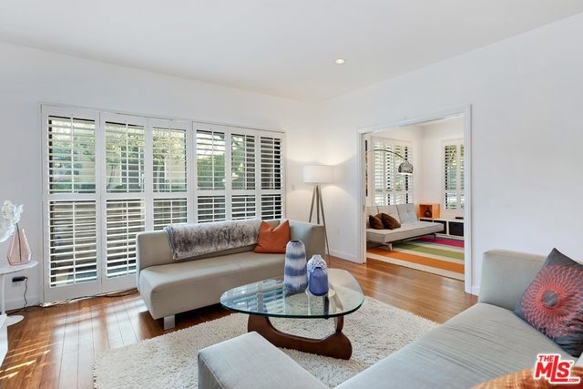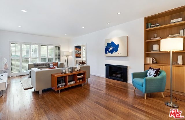 Gorgeous Culver City condo that feels like a home. This spacious 1700sf corner unit, is on the 1st floor and opens to the building lobby so it feels like a private residence. Windows look out to the grass yard, trees and quiet street. With two large bedrooms, including a huge master suite with four closets offering tons of storage, and a large den/office/nursery that could be closed and used as a 3rd bedroom. The remodeled condo boasts bamboo floors, plantation shutters, recessed lighting, Kitchen Aid appliances, new washing machine, quartz countertops, pocket doors, custom built-ins, custom wet bar, ample storage, two walk-in closets with Elfa storage systems, jet tub in the master bathroom, two car gated parking, central air & heat, and generous amounts of natural light. The quiet 11-unit building offers a nice community with a private pool and gated patio and grass yard, located near a Culver City park with sports courts, fields & play areas.