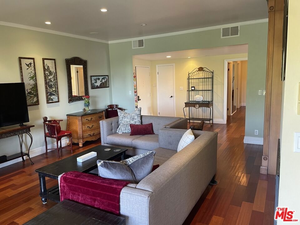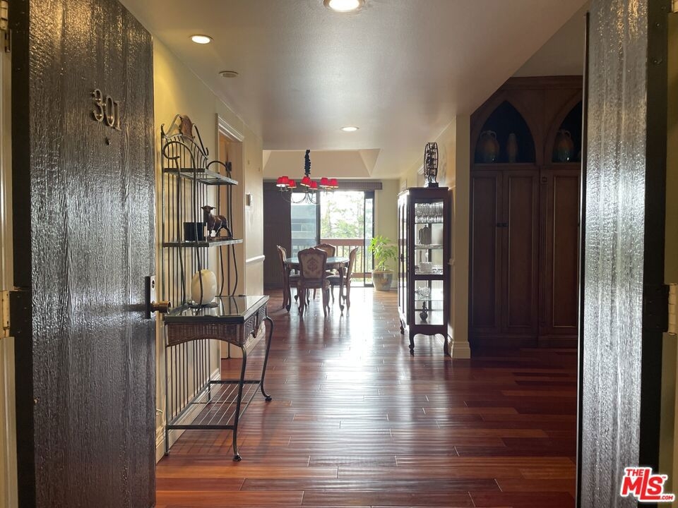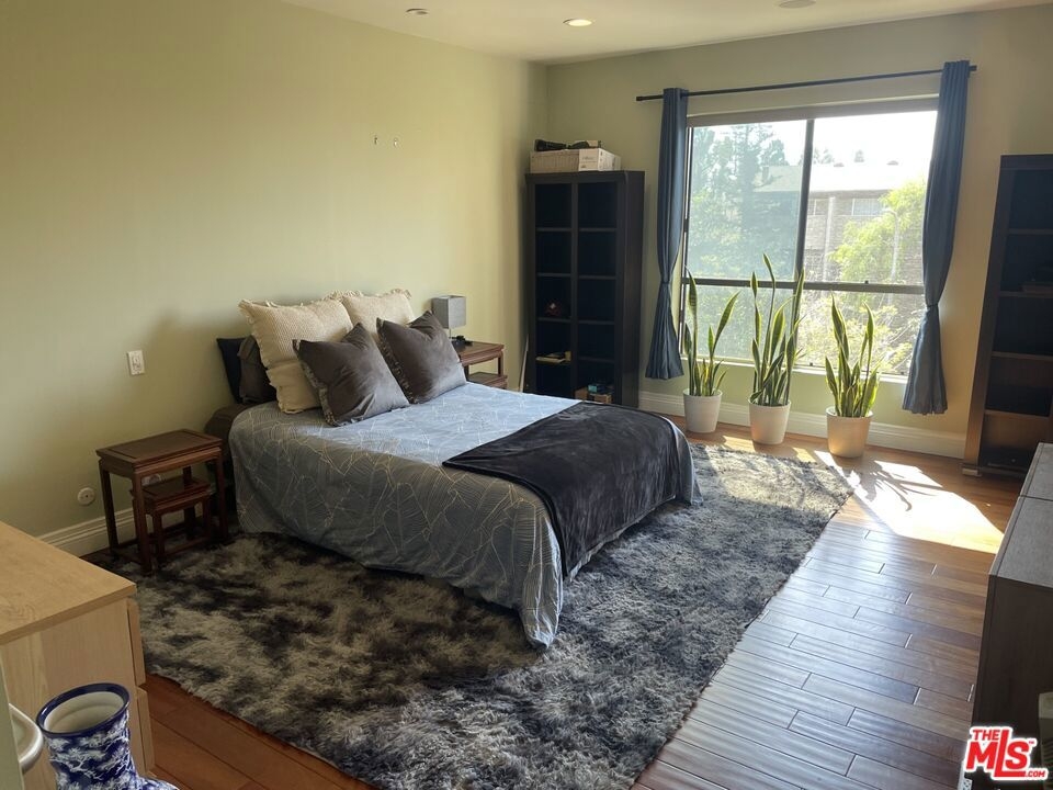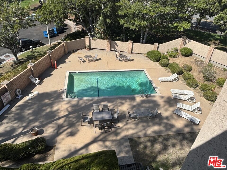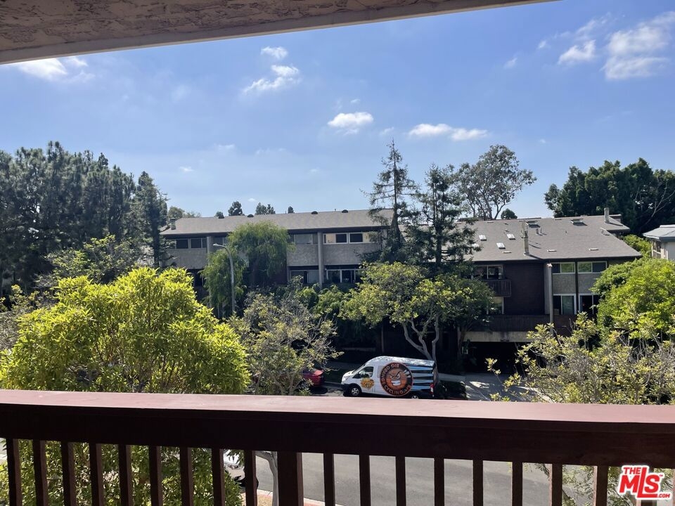 Spacious Top-Floor Corner Penthouse with Panoramic Views. This rare, extra large unit was originally built by the developer for his own use - offering exceptional space, light, and privacy. Step through the double-door entry into this inviting home filled with natural light and treetop views from every window. The living and dining areas feature beautiful hardwood floors and open to two large balconies with sweeping views from multiple directions. The spacious custom kitchen with tons of cabinets make it a chef's dream. The unique floor plan includes a bedroom with it's own private entrance into the complex hallway, offering flexibility for a guest suite, office, or extended family. Additional highlights include three private parking spaces, extra storage, and access to a sparkling community pool. Conveniently located near shopping, dining, transportation, and a nearby Culver City park with sport courts, fields, and play areas. All within the award-winning Culver City School District. Very easy to show.