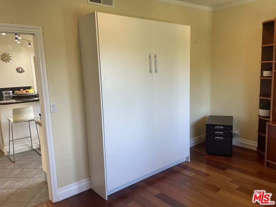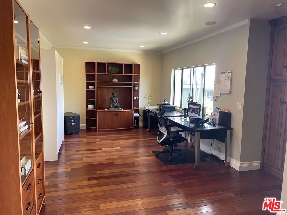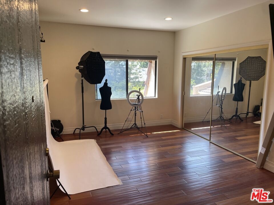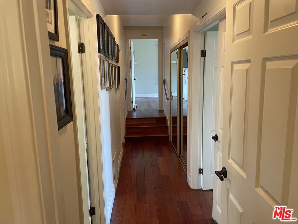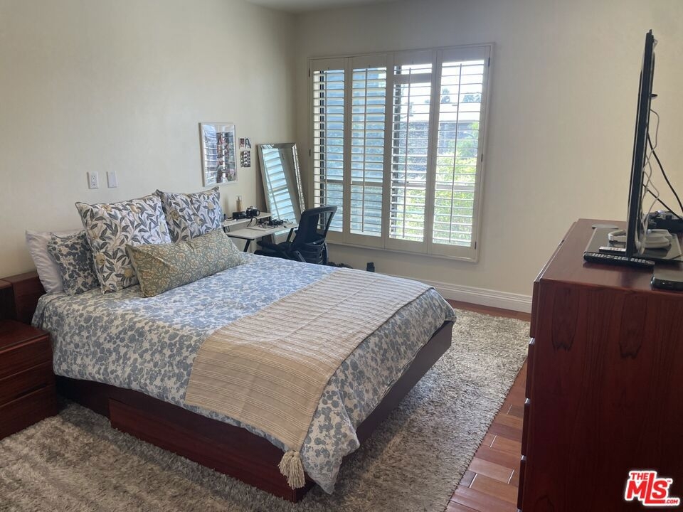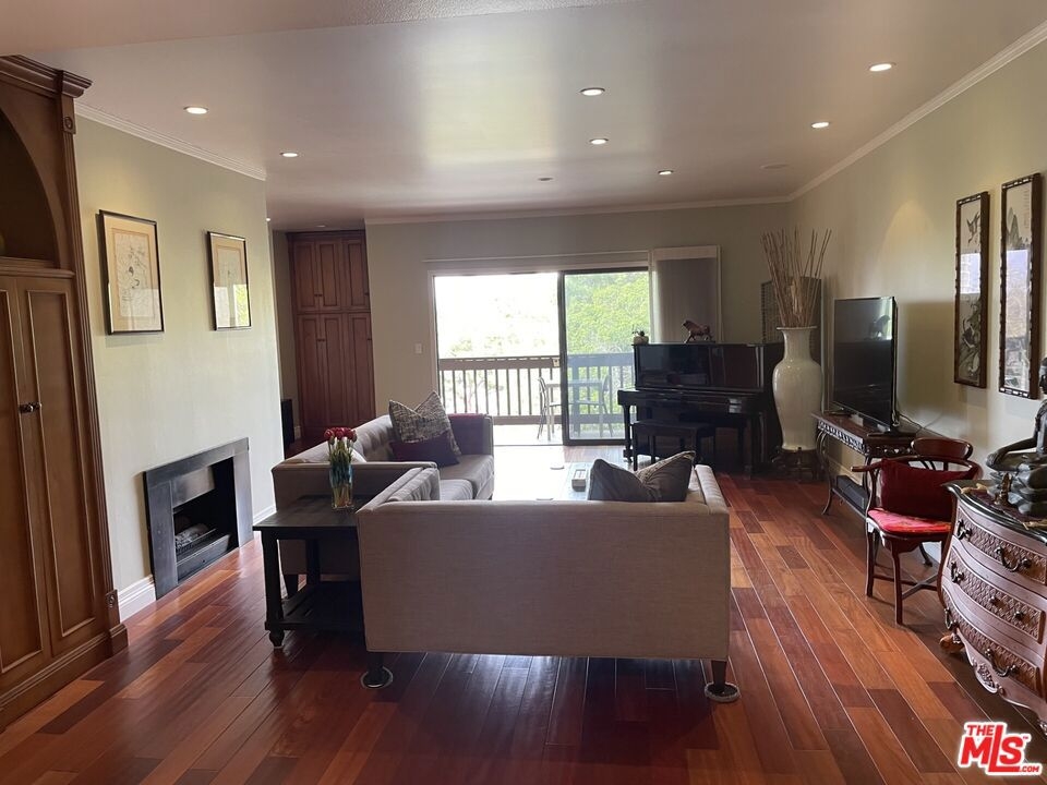 Spacious Top-Floor Corner Penthouse with Panoramic Views. This rare, extra large unit was originally built by the developer for his own use - offering exceptional space, light, and privacy. Step through the double-door entry into this inviting home filled with natural light and treetop views from every window. The living and dining areas feature beautiful hardwood floors and open to two large balconies with sweeping views from multiple directions. The spacious custom kitchen with tons of cabinets make it a chef's dream. The unique floor plan includes a bedroom with it's own private entrance into the complex hallway, offering flexibility for a guest suite, office, or extended family. Additional highlights include three private parking spaces, extra storage, and access to a sparkling community pool. Conveniently located near shopping, dining, transportation, and a nearby Culver City park with sport courts, fields, and play areas. All within the award-winning Culver City School District. Very easy to show.
