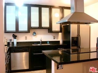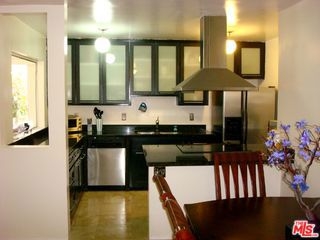 This completely remodeled top floor corner end unit has potential for a 2nd guest bedroom/bonus room. The double-door entry opens to an open and inviting floorplan featuring a spacious living room, dining area, and an exquisite contemporary kitchen boasting dark stained cabinets with glass insets, granite countertops, breakfast bar, and stainless steel appliances and venthood. The rear balcony has been enclosed to create additional space for a separate office niche. Enjoy a roomy master bedroom with plentiful closet space and a beautifully remodeled bathroom with jetted spa tub, floor-to-ceiling travertine tiles, and dual sink vanity with overhead recessed lighting. Additional highlights include smooth ceilings and hard-surfaced flooring throughout, window A/C unit, and close proximity to the elevator and laundry room. Small 62 unit complex with an inviting outdoor pool. Great location near the neighborhood park, malls and theaters, and abundant shopping and dining destinations.