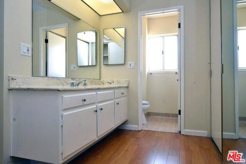 This top floor corner end unit in the desirable "French Quarter" complex is a unique find in Culver City. Through the double-door entry step into a roomy and welcoming living area highlighted with beautiful wood laminate flooring, a warm pastel color palette, and an adjacent outdoor balcony overlooking the inviting outdoor pool. Cooking is a delight in the appealing kitchen outfitted with a double oven, stainless steel dishwasher, plentiful cabinet space with built-in wine rack, and breakfast bar. Both bedrooms are spacious with the corner ensuite features abundant closets, built-in storage with sitting ledge, oversized vanity, and tiled bathroom. Additional highlights include smooth ceilings throughout, guest bathroom with skylight, and SxS parking near the elevator (#31 & #32). Located in the renowned Culver City School District and just 1.5 blocks from Fox Hills Park. An abundance of restaurants, shops, and grocery stores including Trader Joe's, Sprouts, and Whole Foods are nearby.