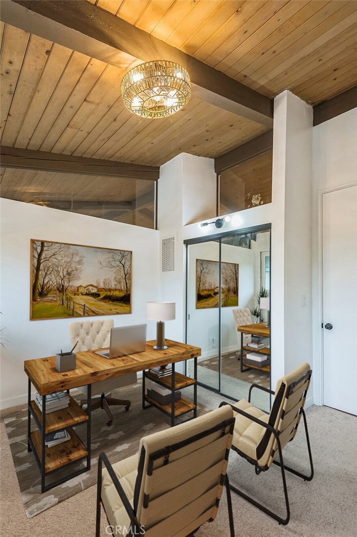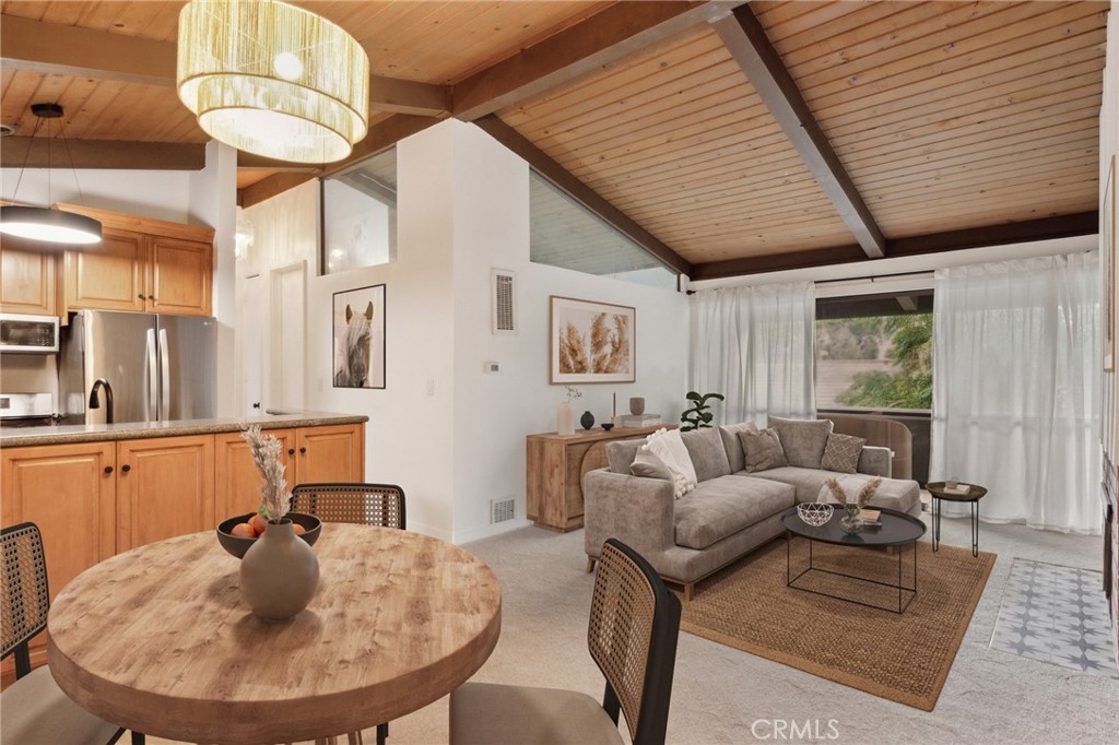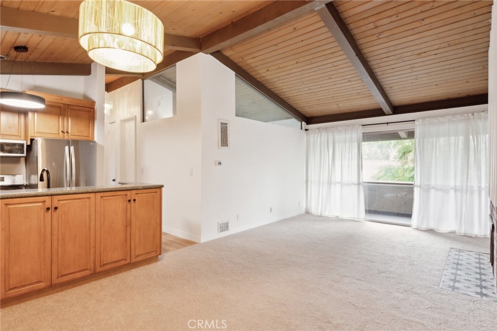 ***Photos show VIRTUAL STAGING*** Beautifully remodeled top floor Modern Farmhouse-style condo offers a serene retreat with tree-top views. Cathedral beamed ceilings, open concept living and dining room. Kitchen has plenty of cabinetry and a breakfast bar for casual dining. Balcony off the living room is perfect for relaxing, or al fresco dining. Two spacious bedrooms. Primary bedroom has en suite bath. New paint and flooring throughout, brand new double pane windows in both bedrooms, brand new mirrored closets, new light fixtures. Elevator nearby with direct access to garage and laundry. Situated on picturesque, park-like grounds, the community offers an array of amenities, including three pools, two spas, saunas, a gym, clubhouse, billiards, tennis court, a playground, multiple laundry facilities (one that is very close to the unit), EV charging stations, and Pacifica Montessori onsite. HOA includes utilities, EQ insurance, cable, and more! Excellent location in the Fox Hills neighborhood of Culver City steps away from Fox Hills Park and Westfield Mall. LAX and beaches are just minutes away. This condo combines modern living in a tranquil setting with exceptional amenities. This is the LA lifestyle you have been looking for. A must see!
