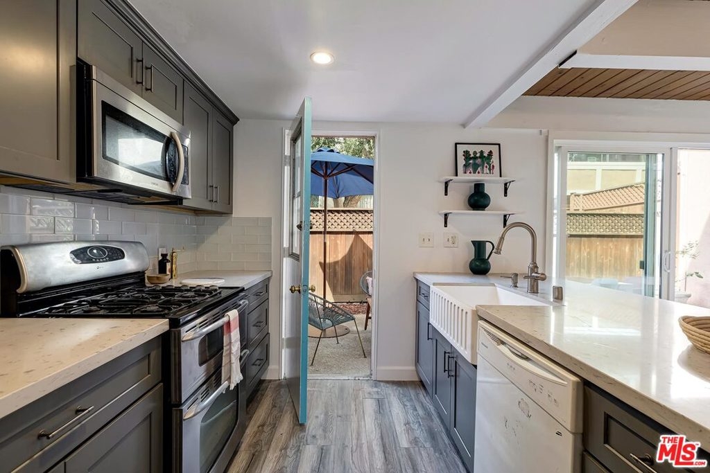Welcome to this beautiful and rare 3 bed 2 1/2 bath townhome in the highly-coveted Heather Village community in Culver City! Resort-like living with 3 community pools, a billiard room, clubhouse, exercise room, playground, sauna, 2 spas and a tennis court! Gated community with security. Peaceful, light, bright and open this townhome has hardwood floors, exposed beams, high-vaulted ceilings two ground level private patios and a fully remodeled cooks kitchen with quartz countertops, stainless steel appliances and a peninsula. CCUSD schools and services! Adjacent Pacifica Montessori school gives discount and priority to Heather Village residents. HOA covers water, gas, cable, trash. A stones through from one of Culver City's best kept secrets, Fox Hills Park, where there are tennis courts, jogging trails, basketball courts and a playground and fields. This one is a winner!