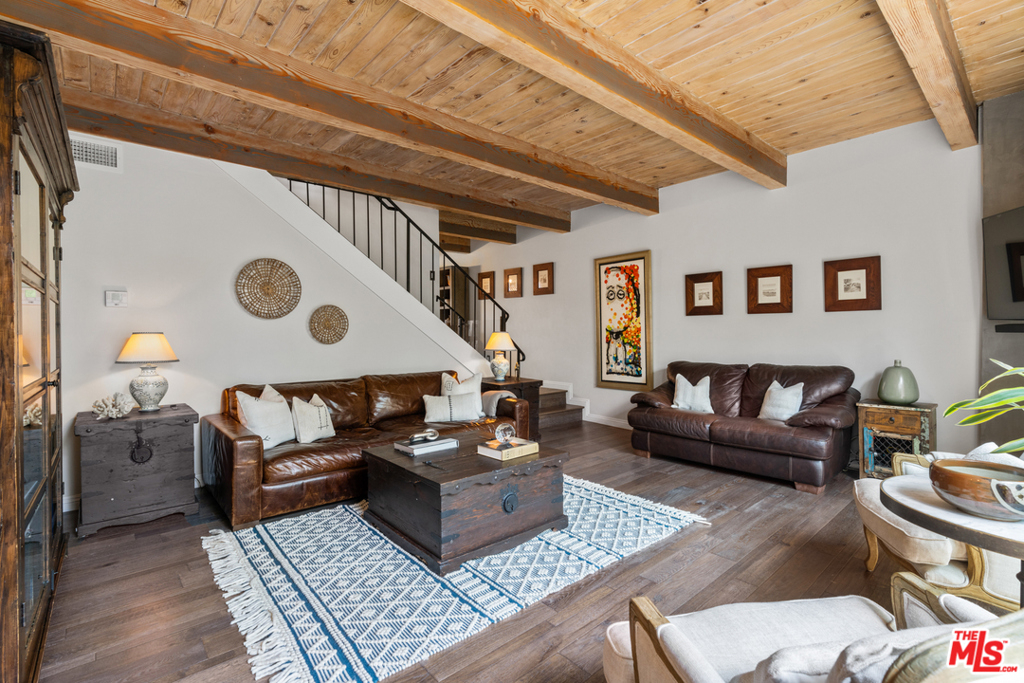 Step into this elegantly remodeled, distinguished and casually grand townhome where thoughtful design celebrates its simple luxury. You'll immediately feel at-home in this design friendly chef's kitchen. Dine in the warmth of the open space under the beamed ceiling with a view of the spacious patio creating an indoor/outdoor setting - perfect for entertaining. Upgraded features include double-paned windows and sliding doors throughout, hardwood floors, new custom closets, new hardware throughout, spacious outdoor living areas, bathrooms redesigned and upgraded - and so much more...! This community offers excellent amenities including a 3 pools, spa, and fitness center, gas, water, trash, tennis courts, sauna, security, cable TV and community center and more. Our sellers love entertaining here or sitting down with their family in the warm kitchen leading to the oversized back patio as well as this friendly community.