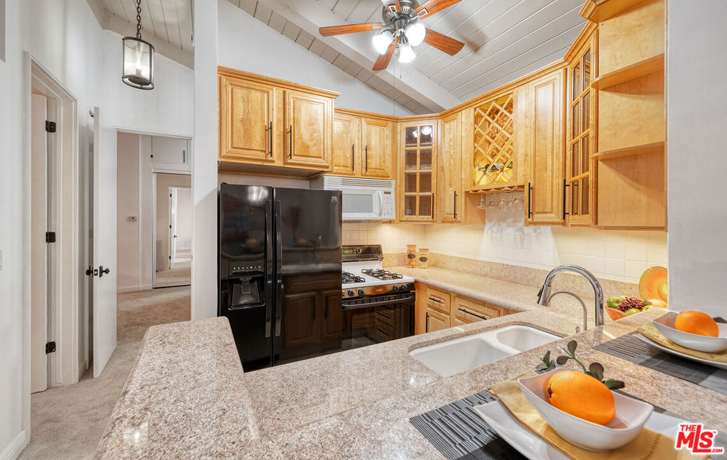 Very Private and Peaceful Top Floor + Cathedral Ceiling a la Mid Century Modern + Corner Unit + Beautifully upgraded condo w/ Tree Top Views + breakfast bar + balcony + 2 car parking (side by side style parking, 2 different locations)! The location of this condo is excellent. Far from the street and close to the parking, elevator and amenities. One of the parking spaces is on the roof top and there are no stairs to get to the unit, very convenient to bring groceries! As soon as you enter, you can feel the exceptional volume of the living room. Peaceful and serene settings surrounded by trees, you feel like you are in a tree house! Floor to ceiling sliding door frames the beautiful lush tree top view. Open concept living area designed to entertain large and intimate gatherings. Decorative fireplace w/ natural Earth Ledger Panels and matching accent under breakfast bar. Intimate outdoor balcony with full tree top view. Kitchen and breakfast bar is open to the living and dining room areas. Beautiful kitchen w/ maple custom cabinetry and granite countertops, wine and wine glass storage built into the kitchen cabinetry. Ceiling fans in the kitchen and living room. Spacious Principal bedroom w/ vaulted ceiling. Large closets and extra storage above the closet. Beautifully remodeled principal bathroom. Good size second bedroom with high ceiling and spacious closet + extra storage above the closet! Both bedrooms have the window AC. Entire unit has new carpet, new paint. HOA INCLUDES MANY UTILITIES: (incl. gas (Heating and cooking), water (hot and cold), sewer, trash, Good CABLE package w/HBO Max and Disney Plus + 1 Giga high speed internet, EQ insurance, on site manager, Patrol and resort like amenities! Resort like amenities: EV charging station on rooftop, 3 pools, 2 hot spas, saunas (wet & dry), gym, party rm, billiards rm/ping pong, tennis court, playground, Pacifica Montessori onsite, green belt and walkways. Award winning K-12 Culver City schools. Near Playa Vista, Silicon Beach, LAX, Beach, FWYs, Shops, Restaurants & great Park across: jogging path+exercise station, tennis & paddle tennis courts, basketball, volleyball, picnic area, & more. Must see place! 3D virtual tour coming soon.