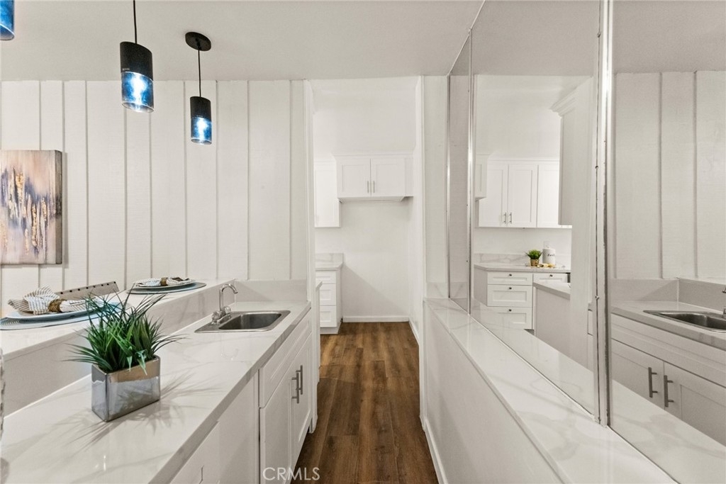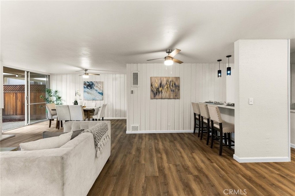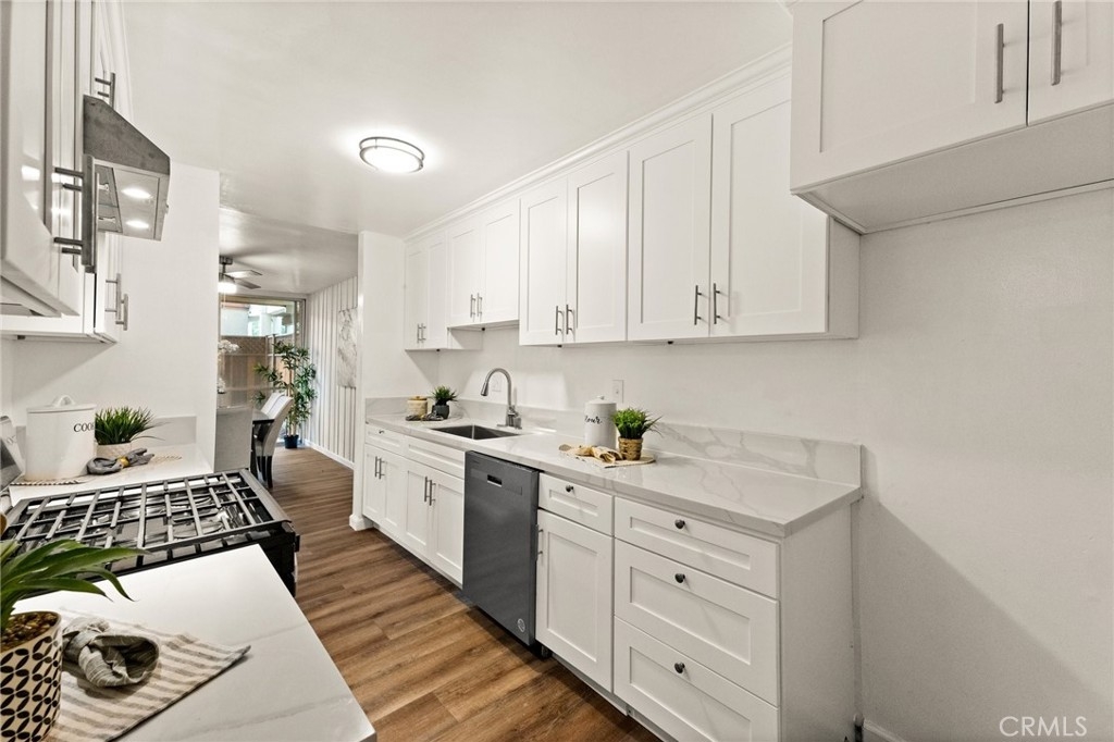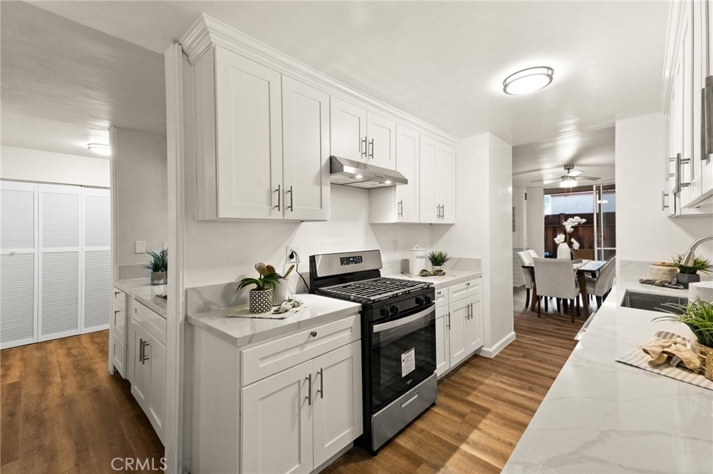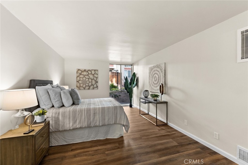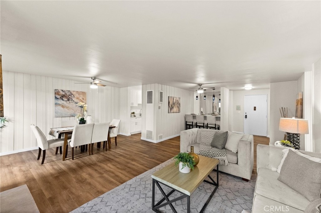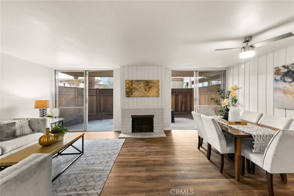 Price Reduction! -- Welcome to this stunning remodeled 2-bedroom, 2-bath corner condo, the largest 2-bed model in Heather Village. This 1,347 sq ft ground-floor unit features elegant luxury vinyl plank flooring that welcomes you into an open-concept living and dining area, highlighted by a charming gas fireplace; two expansive sliding doors open to a generous private patio—ideal for entertaining, relaxation, or pet enjoyment. Enjoy comfort year-round with two new modern ceiling fans for optimal climate control. The mirrored bar area, complete with a mini-sink and stylish lighting, doubles as an on-the-go breakfast bar. The upgraded kitchen is a chef's dream, featuring sleek quartz countertops, soft-close cabinets, and new Whirlpool appliances. A privacy door separates the common areas from the bedroom areas. The spacious primary bedroom offers a walk-in closet, a cozy seating area, an ensuite bathroom, and a second vanity for shared use. The community boasts fantastic amenities, including three pools, wet and dry spas, a tennis court, a children's playground, a Montessori school, a clubhouse, three charge-point EV charging stations, and a remodeled exercise room, all secured with 24-hour security. The HOA fee includes gas, cable, high-speed internet, water, and two covered parking spaces. Conveniently located near LAX, Playa Vista, Marina del Rey, Downtown Culver City, Fox Hills Park, and Westfield Mall, this condo is a perfect blend of comfort and accessibility.