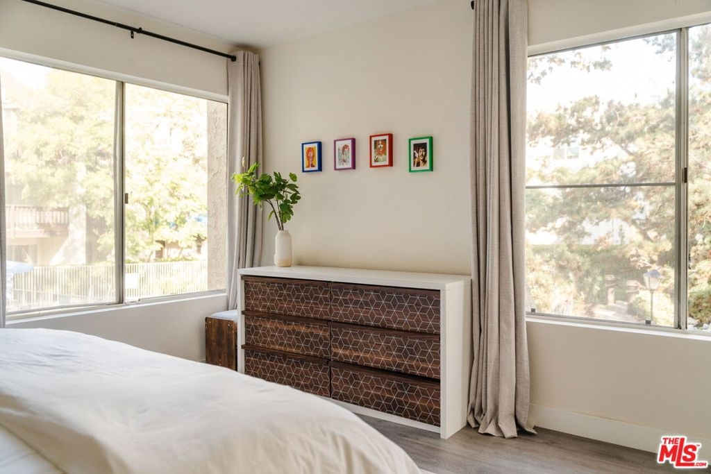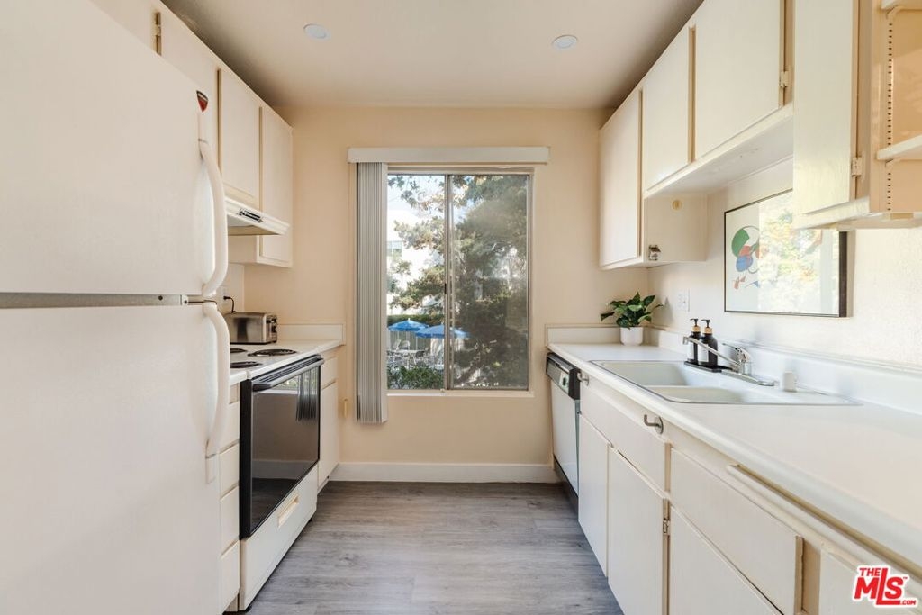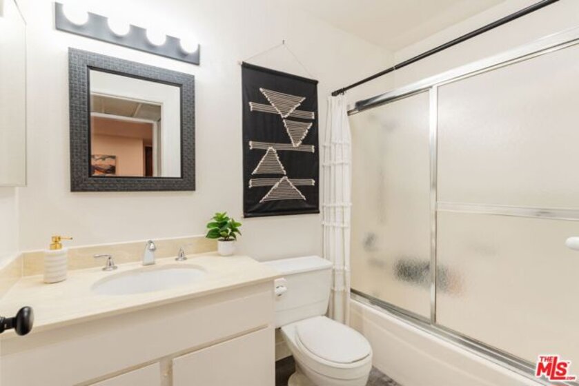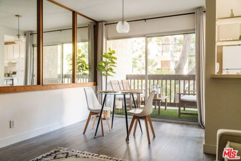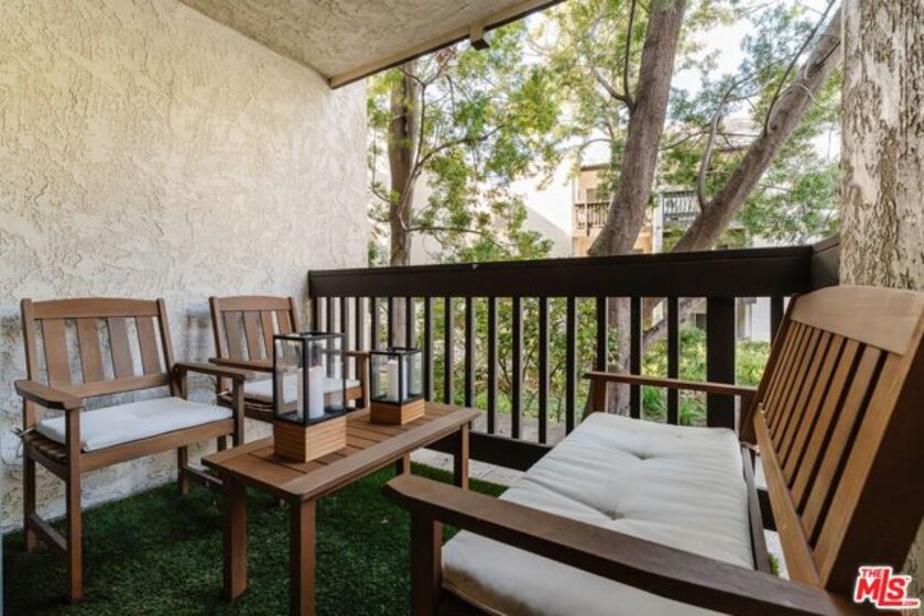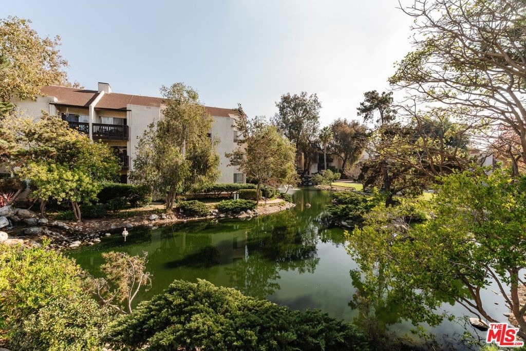 Experience natural serenity minutes from the heart of Culver City in this sophisticated residence, ideally positioned within the FHA approved guard-gated sanctuary of Lakeside Village. This rare first-floor corner unit offers a unique sense of privacy with only one common wall. The inviting open-concept living space is defined by modern recessed lighting, newer vinyl plank flooring and a dining area which flows seamlessly to a private balcony, an idyllic setting for morning coffee or al fresco dining. The sun drenched primary bedroom easily accommodates a king-size bed, an expansive walk-in closet, and two large windows with unobstructed views of the pool and peaceful sycamore trees. The refined bathroom features custom vanity lighting and a shower / tub combo with a glass shower door. Thoughtful modern enhancements include a new electrical panel, central heating and A/C, and a new garbage disposal. Outside the front door, the community offers a lush, park-like environment characterized by winding walking paths, serene lakes, and the gentle sound of waterfalls and streams. Residents enjoy resort-style amenities including three swimming pools (including year-round heated and saltwater options), two hot tubs, a fitness center with sauna, and a clubhouse designed for curated social gatherings. With one assigned covered parking space featuring custom storage solutions and ample guest parking, the home offers effortless functionality. HOA dues provide ultimate ease of living, covering water, gas, cable, internet, trash, and earthquake insurance. Perfectly located just minutes from the creative energy of Downtown Culver City, the upscale offerings at Erewhon and the Culver Steps, West LA College, top rated Culver City schools, Westfield Mall, and all of the exceptional dining and art spaces Culver City has to offer, this is a unique opportunity to experience a peaceful enclave in the heart of Los Angeles' most vibrant tech and arts hub.