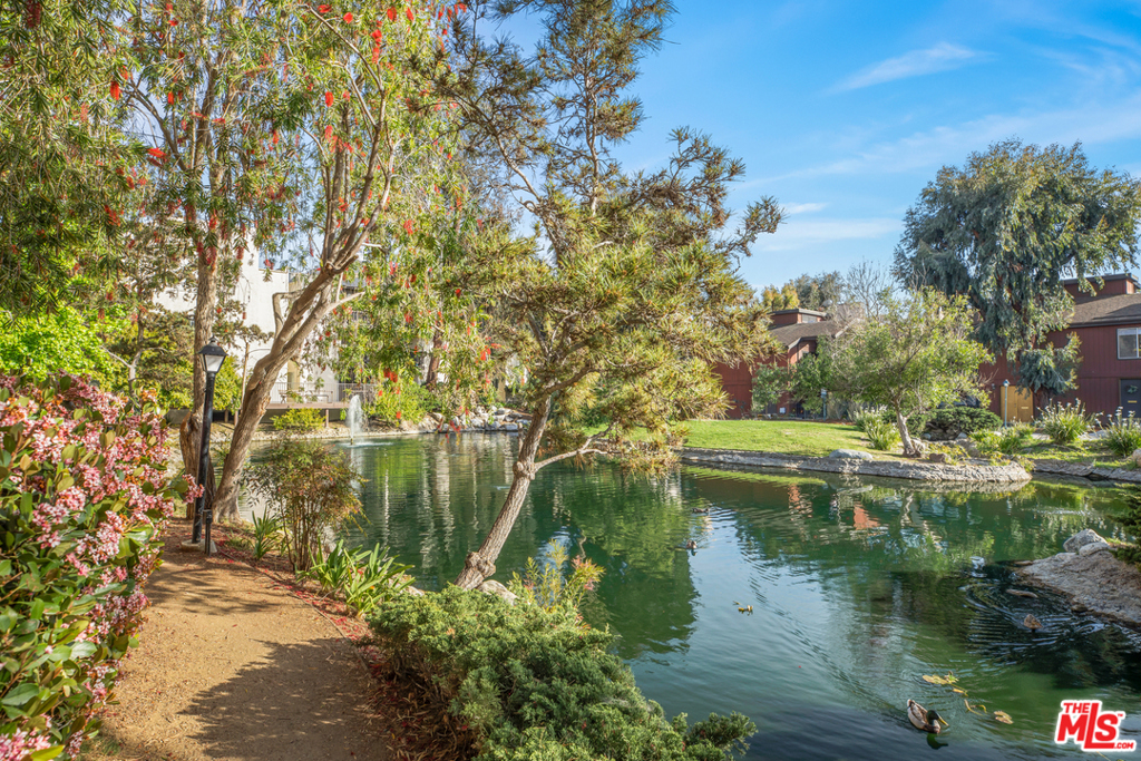 Lakeside Village is one of Culver City's most popular, centrally located gated complexes. It offers acres of landscaped grounds with beautiful trees and lush greenery. Enjoy a beautiful lake full of wildlife (ducks and turtles), babbling brooks and winding paths, a clubhouse, gym, 3 pools and 2 spas. This updated 2nd floor, corner unit with only one shared wall, offers brand new laminate floors, smooth ceilings and tree top and pool views. The entry leads to a an expansive living room with granite fireplace that opens to the dining area and very private balcony w/tree top views. The kitchen offers granite countertops, stainless steel refrigerator and dishwasher and lots of counter and storage space. The spacious bedroom has a private corner location with lots of natural light and a walk-in closet. Luxuriate in the updated bath with granite counters and a combination tub/shower. Enjoy your local Starbucks, shopping and restaurants all 1 block away in addition to a fabulous Farmer's Market on Tuesdays in downtown Culver City along with fine dining, live theatres and much more. Enjoy the local bike path that will take you to the beach or east to downtown Culver City. Fireplace is decorative. Some photos are of virtual staging. See docs for floor plan. OFFERS DUE TUESDAY APRIL 20TH @ 3PM.