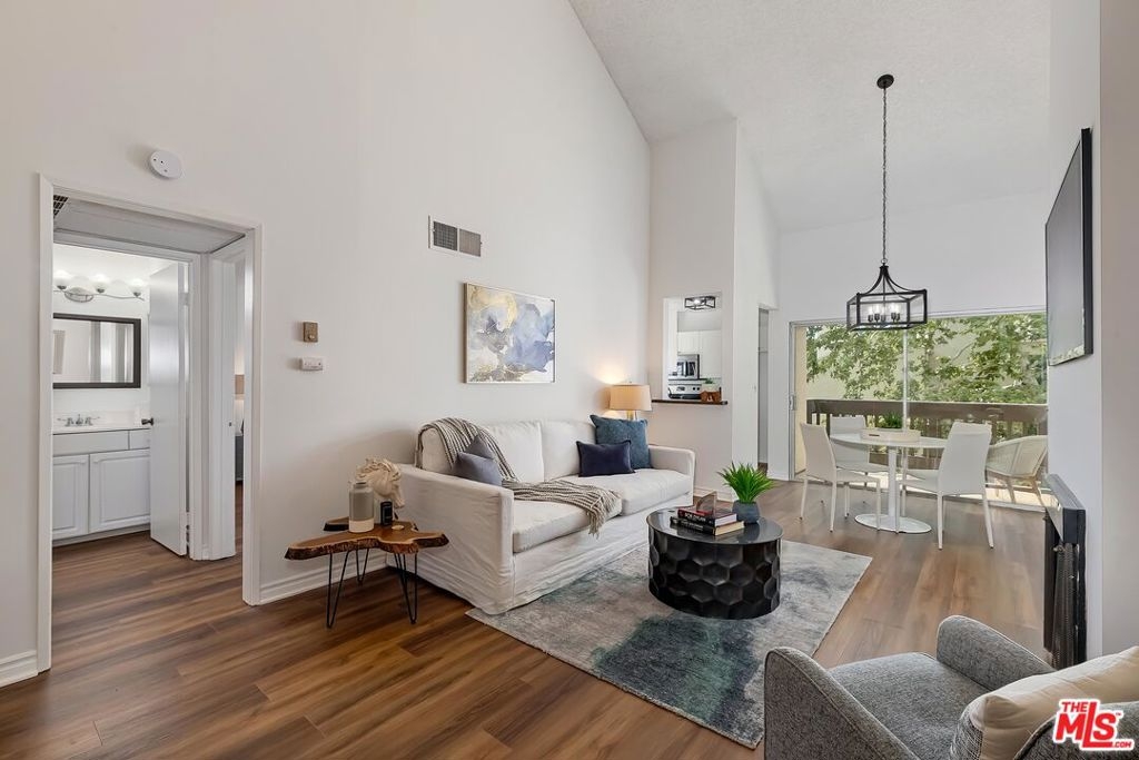 Gorgeous 3rd-floor condo with vaulted ceiling and tree-top views in Culver City. This top floor unit has new laminate-wood flooring throughout, fresh paint, fireplace, and opens to private balcony overlooking a creek and the pool. The dining room with vaulted ceiling opens through a sliding glass door to the balcony with the soothing sound of the creek below. The large master suite has a large walk-in closet and an updated bathroom with a tub/shower. Central air & heat, with community laundry on the same floor. The Lakeside Village is a gated community that offers onsite management, security, 3 pools, 2 jacuzzies, 1 gym, 1 gazebo/BBQ area, children playground, clubhouse & lake, all surrounded by well-maintained lush landscaping. The low HOA Dues include Basic Cable and Internet Service, Gas, Water, 24hr Security & Amazing Grounds! Located near shops & restaurants and everything in downtown Culver City, and only a few miles away from the 405 and 10 freeways. Next to West LA college amenities and not far to the new Light Rail Expo Line station and new Apple & Amazon offices. Culver City Schools & Farragut Elementary!