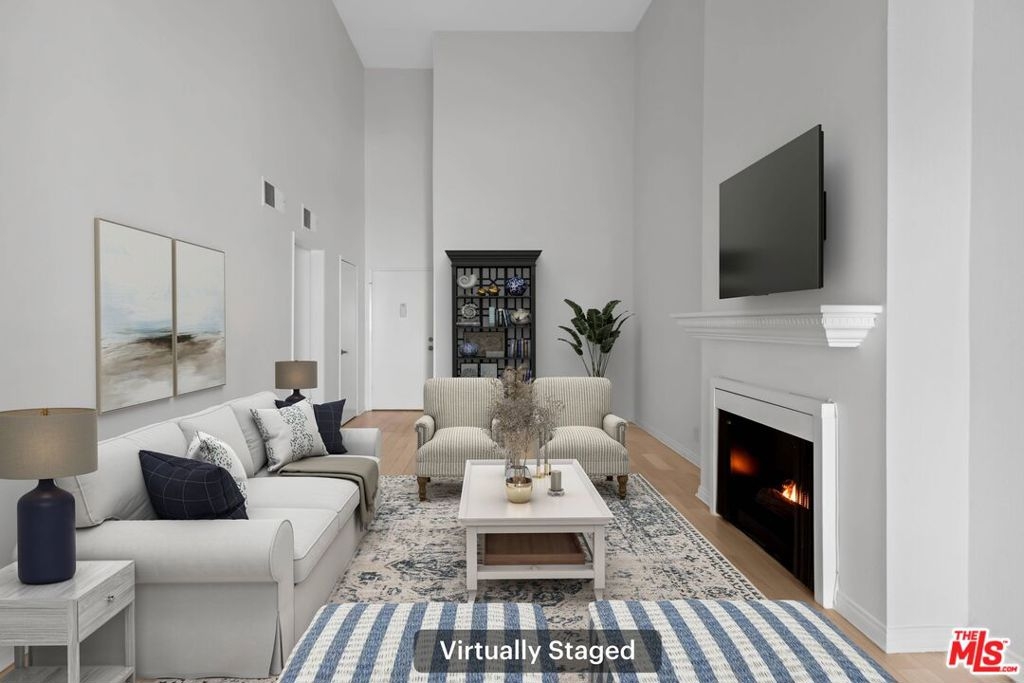 Spectacular Top Floor Unit in Culver City's highly sought after Lakeside Village. Soaring 20 ft cathedral ceilings in the living and dining room, featuring a beautiful gas fireplace. Two bedroom + 1 1/2 bath. Freshly painted, vacant and move in condition. Balcony is perfect for morning coffee or late afternoon drinks. This light and airy unit is what your buyers are waiting for. Central heat and air. Master bedroom has a large walk in closet and recessed light. All rooms have tree top views. This unit has been remodeled to perfection. Recessed lighting throughout, Newly refinished maple hardwood floors and no common walls with other units. Kitchen Remodeled and upgraded with Granite counter tops, stainless steel appliances includes, newer, stove/oven, dishwasher, sink, and french door refrigerator with bottom freezer. Master Bathroom has newer ceramic tub, travertine surround and floor and newer cabinet, sink and lighting. Second bathroom has newer cabinet, sink, faucet, lighting and travertine floors. Underground parking for two cars plus a large storage bin. Lakeside Village is situated in a Park like setting with hundreds of trees, and a beautiful tranquil lake. Lots of walking paths. There are streams, wildlife, waterfalls, and lush greenery at every turn all within a 24 hour guard gated community. This resort style community offers a large clubhouse, two gym/fitness rooms, men's and women's saunas, a conference room, a playground, barbeque area, three swimming pools and two hot tubs, plus on site management. The HOA covers gas, water, trash, cable, internet, exterior maintenance, fire and EQ Insurance. Lakeside is located in the heart of Culver City and walking distance to grocery stores, restaurants, shopping and transportation. Culver City Schools. Two blocks to the Ballona Creek bike path to the beach and about 1 mile to downtown Culver City. Only a few miles to the 405 and 10 Freeways. Located in the highly sought after Farragut School zone.EV charging stations are being installed on site.