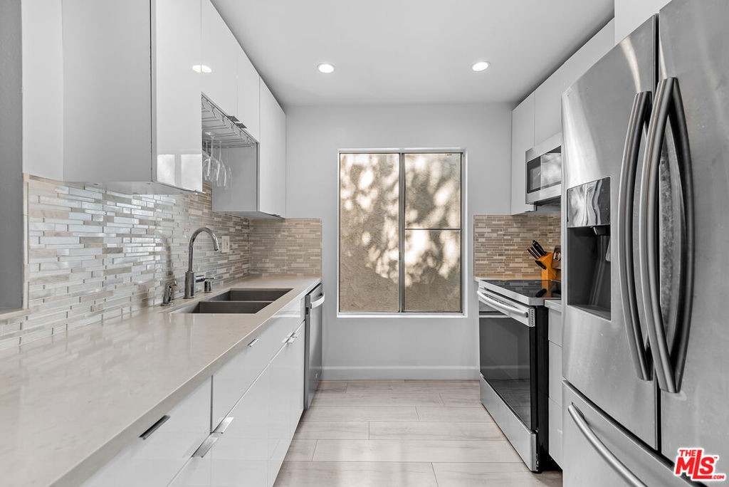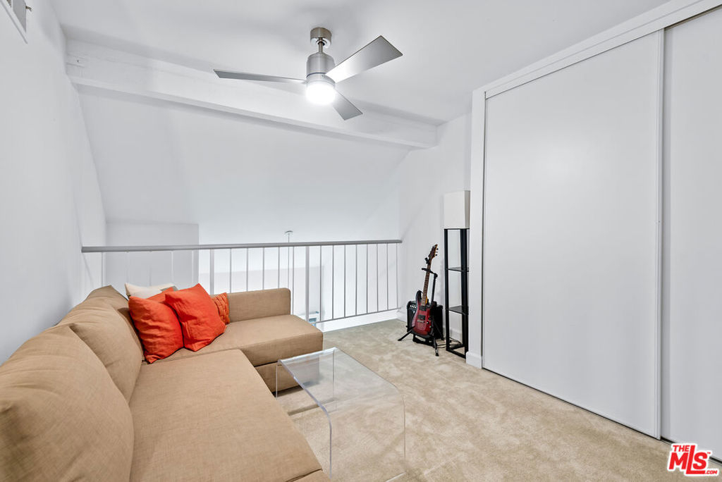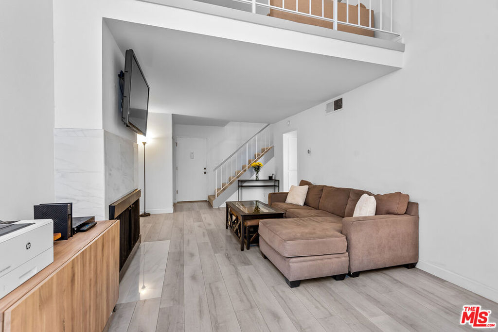 Bright, beautiful top-floor 1-bedroom plus loft condo nestled in the heart of Culver City. This is a rare, highly sought-after floor plan in the desirable Lakeside Village complex, which boasts a tranquil lake, scenic walking paths, and picturesque, lush greenery within a secure gated community. Recently renovated with contemporary finishes, this unit features vaulted ceilings, abundant natural light, and central AC/heating. The open-concept, airy living area centers around a marble fireplace and flows seamlessly into the dining space, which opens to a modern kitchen with stainless steel appliances and sleek white cabinetry. A serene balcony offers treetop views, making it the perfect spot to enjoy your morning coffee and peaceful sunsets. The spacious bedroom features a generous walk-in closet and an oversized window that floods the room with natural light. Ascend to the second level to find a spacious loft with a full closet, ideal for use as an office or second bedroom. Noteworthy attributes include ample closet space, garage storage, two parking spaces, and plentiful guest parking. This resort-style community offers three pools, two hot tubs, BBQs, a playground, a gym, saunas, a clubhouse, on-site management, and 24-hour security. The HOA covers gas, water, trash, cable/internet, and grounds maintenance. A hidden oasis positioned in a prime location, Lakeside Village is within walking distance to downtown Culver City's restaurants and shops, Ballona Creek bike/running paths, Baldwin Hills Overlook, Westfield Mall, parks, and award-winning Culver City schools. Located minutes from Platform and Ivy Station, and a short drive or bike ride to LAX, Venice, Santa Monica, and the ocean.