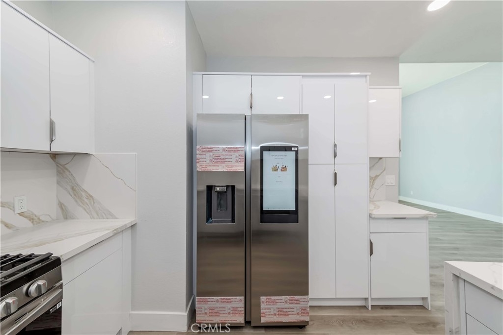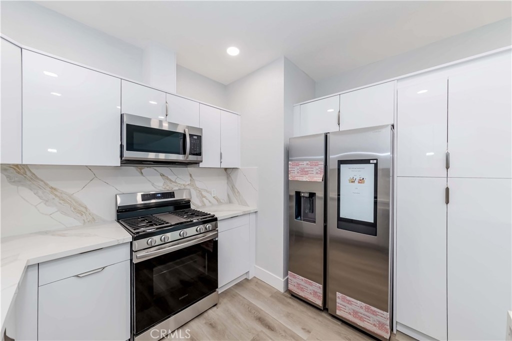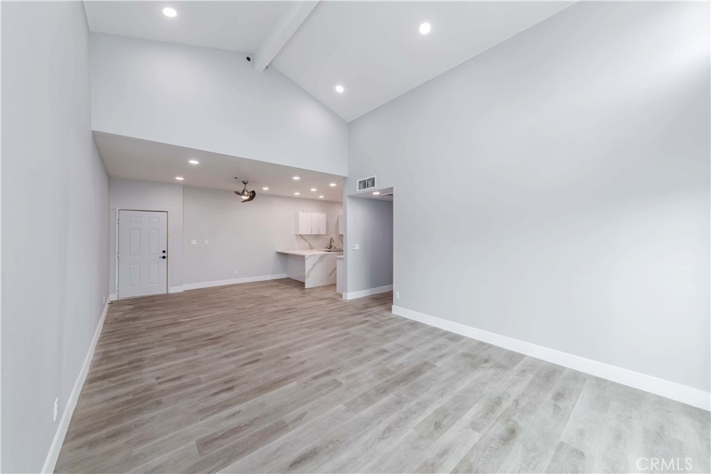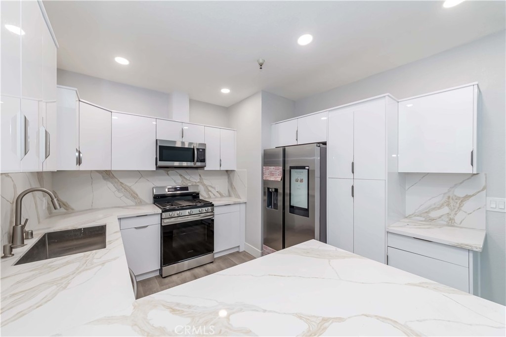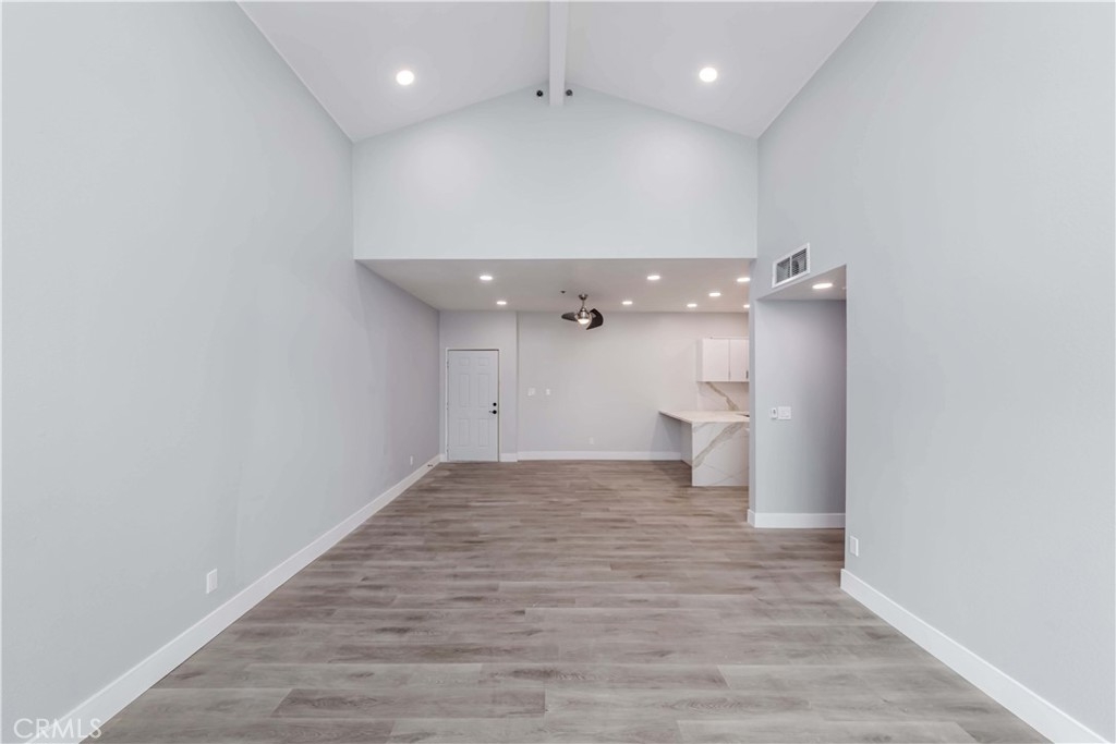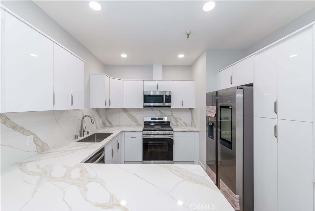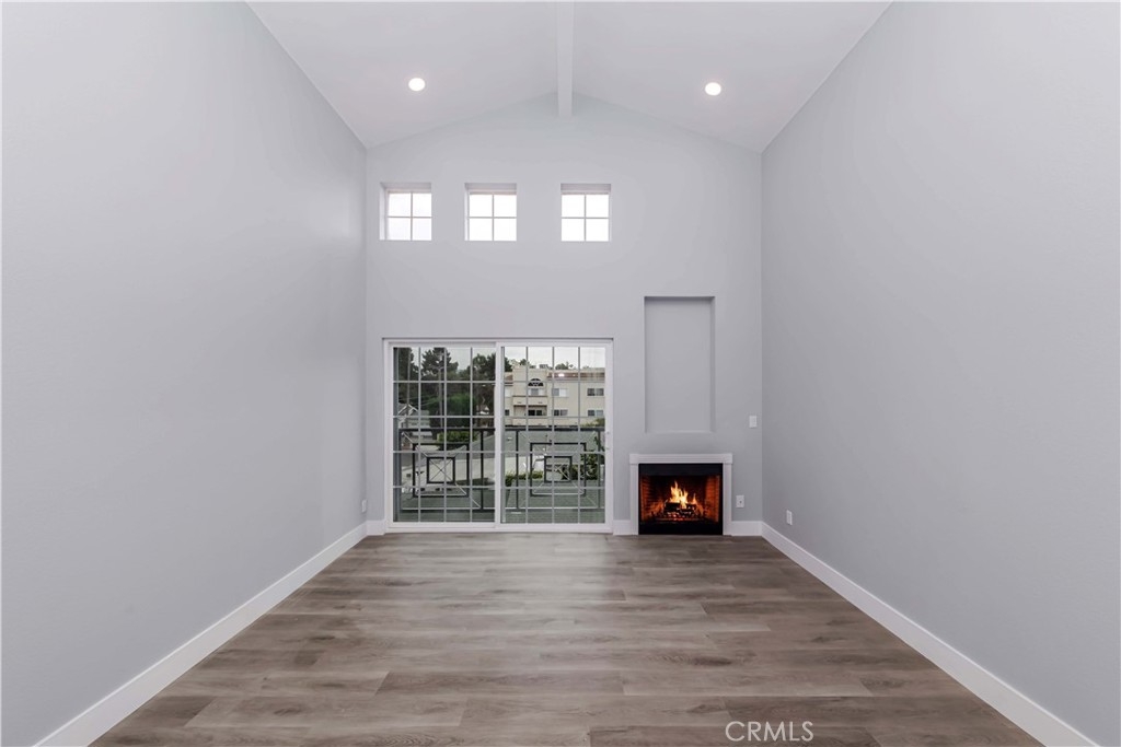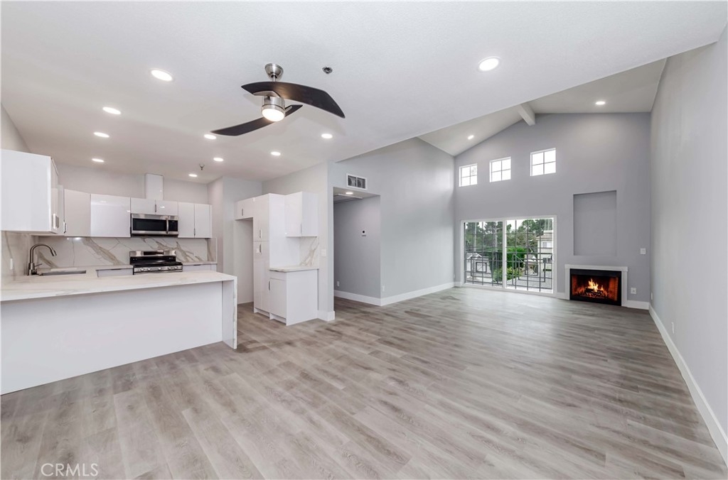 Welcome to this beautifully remodeled condominium located near silicon beach with over 20 foot ceilings in the living area and primary bedroom. The condo is approximately 1,109 square feet and features 2 bedrooms and 2 full bathrooms. The unit is on the top 3rd floor vaulted ceiling. The open floor plan showcases a newly remodeled modern kitchen with high-gloss acrylic white finish cabinets with calacatta gold quartz. The island has waterfall quartz. New stainless-steel Samsung appliances: dishwasher, microwave, stove, and smart touchscreen refrigerator. The bathrooms have been updated with modern acrylic vanities and fixtures, toto toilet, lighted mirror, low noise fan and light, and shower enclosures. waterproof vinyl plank flooring throughout, a new ceiling fan, new 3 way closet, recessed lighting throughout, and a new central AC and heater system. Additional amenities include 2 basement parking spaces and a spacious top-floor terrace with panoramic neighborhood views. Exterior enhancements feature new sliding doors and windows, along with freshly painted interiors. Conveniently located with easy access to major freeways and close to shopping, dining, and entertainment options, and minute from the beach !!!