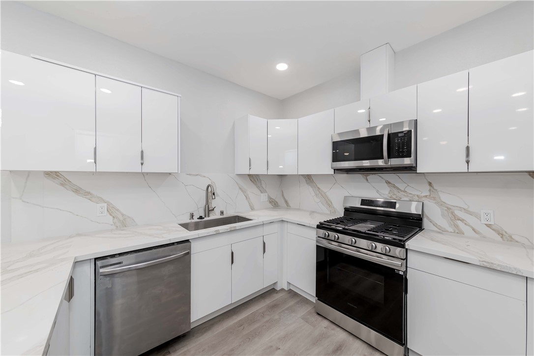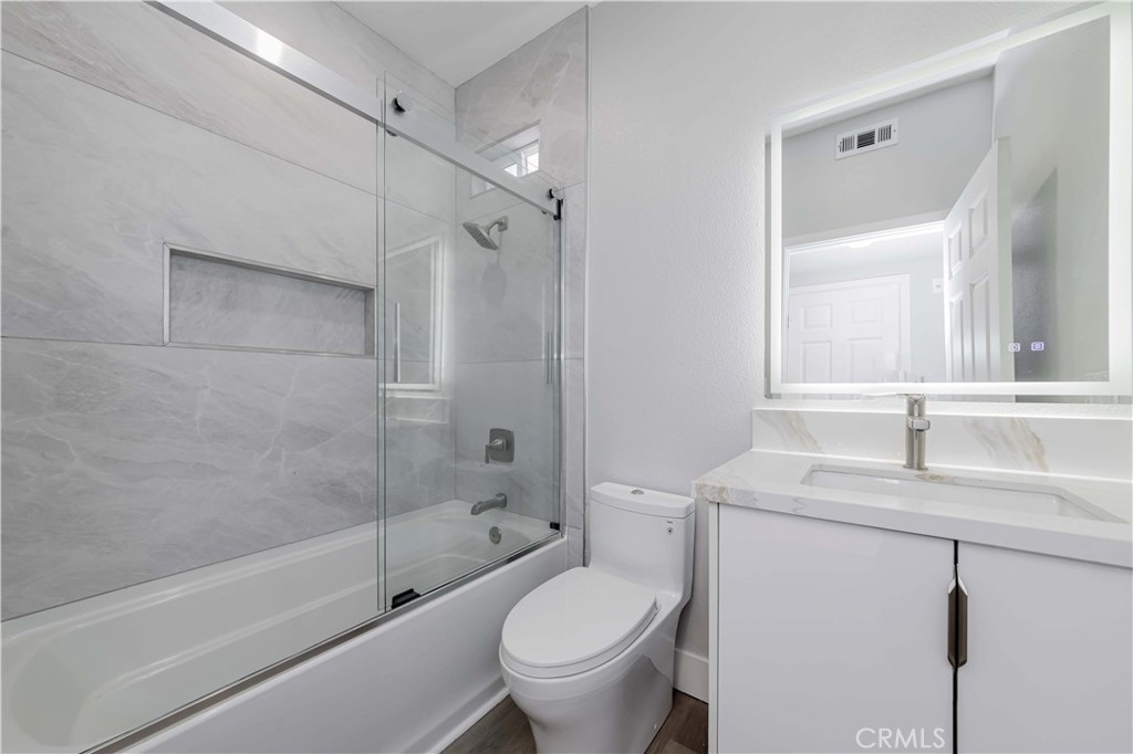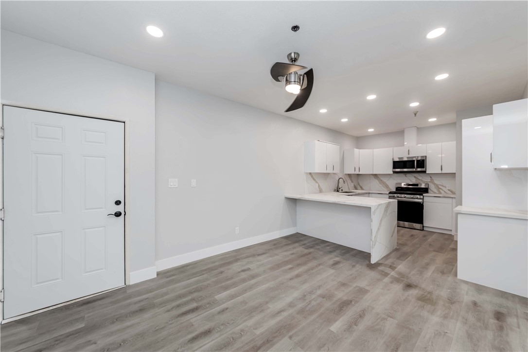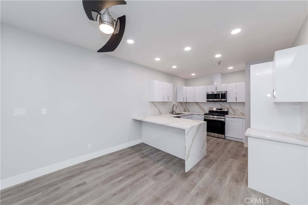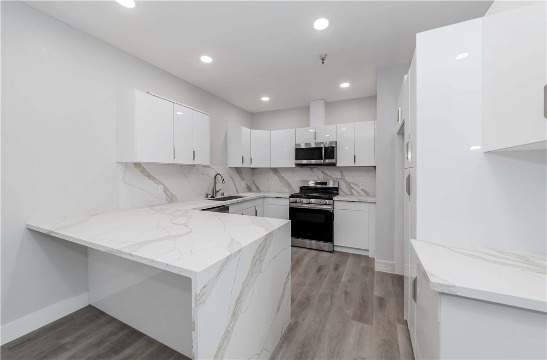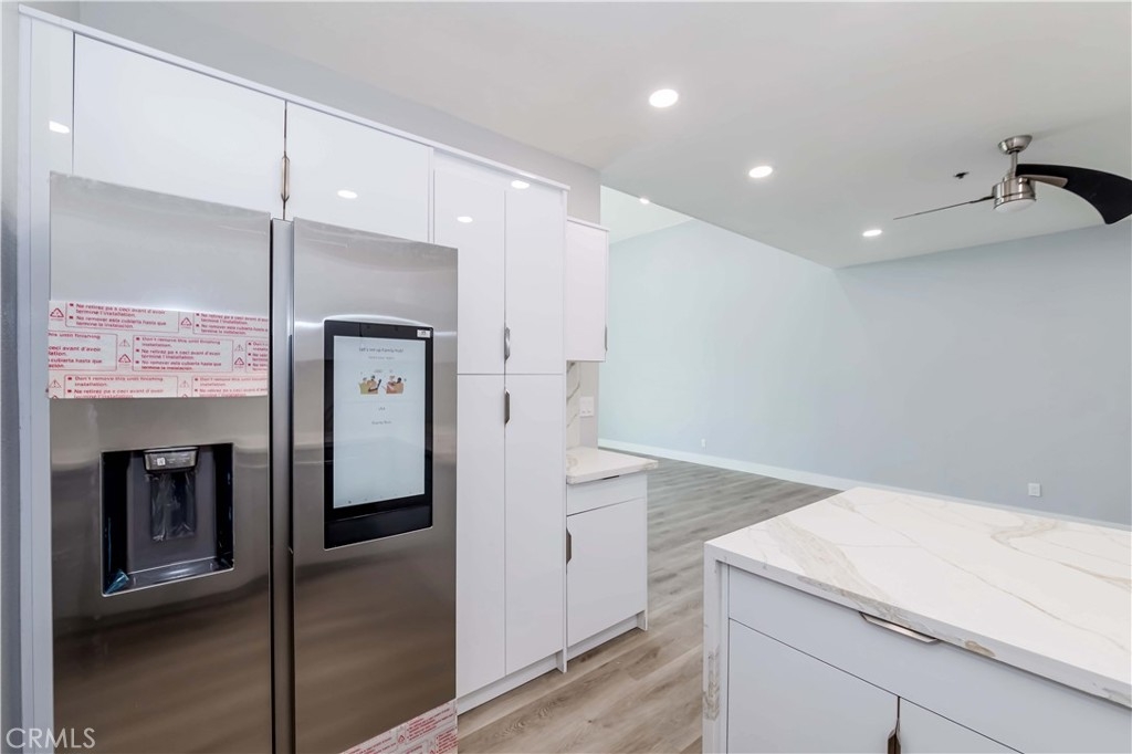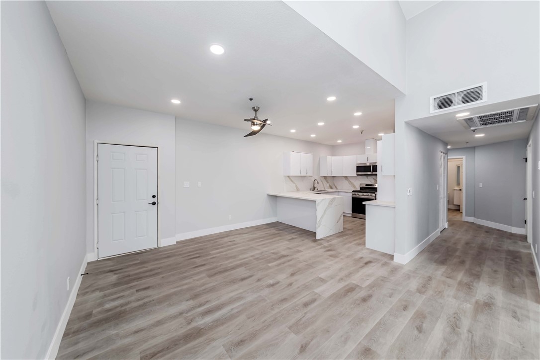 Welcome to this beautifully remodeled condominium located near silicon beach with over 20 foot ceilings in the living area and primary bedroom. The condo is approximately 1,109 square feet and features 2 bedrooms and 2 full bathrooms. The unit is on the top 3rd floor vaulted ceiling. The open floor plan showcases a newly remodeled modern kitchen with high-gloss acrylic white finish cabinets with calacatta gold quartz. The island has waterfall quartz. New stainless-steel Samsung appliances: dishwasher, microwave, stove, and smart touchscreen refrigerator. The bathrooms have been updated with modern acrylic vanities and fixtures, toto toilet, lighted mirror, low noise fan and light, and shower enclosures. waterproof vinyl plank flooring throughout, a new ceiling fan, new 3 way closet, recessed lighting throughout, and a new central AC and heater system. Additional amenities include 2 basement parking spaces and a spacious top-floor terrace with panoramic neighborhood views. Exterior enhancements feature new sliding doors and windows, along with freshly painted interiors. Conveniently located with easy access to major freeways and close to shopping, dining, and entertainment options, and minute from the beach !!!