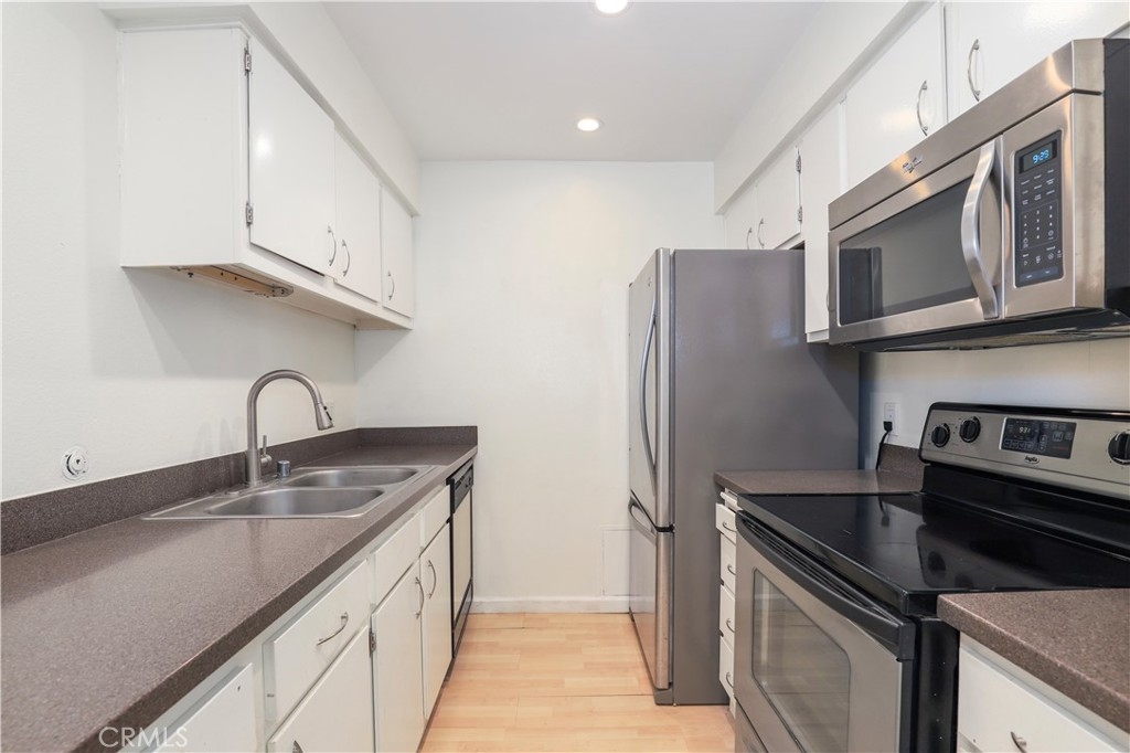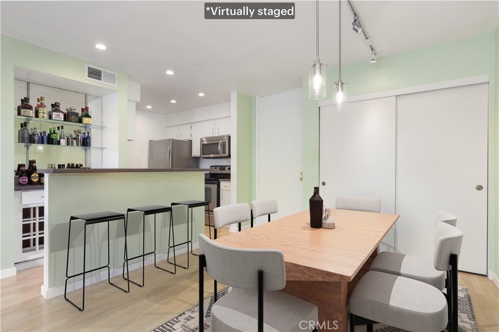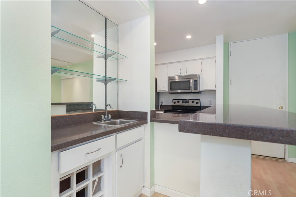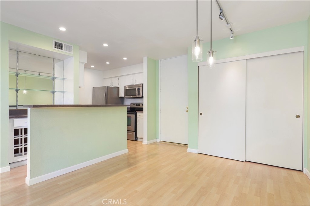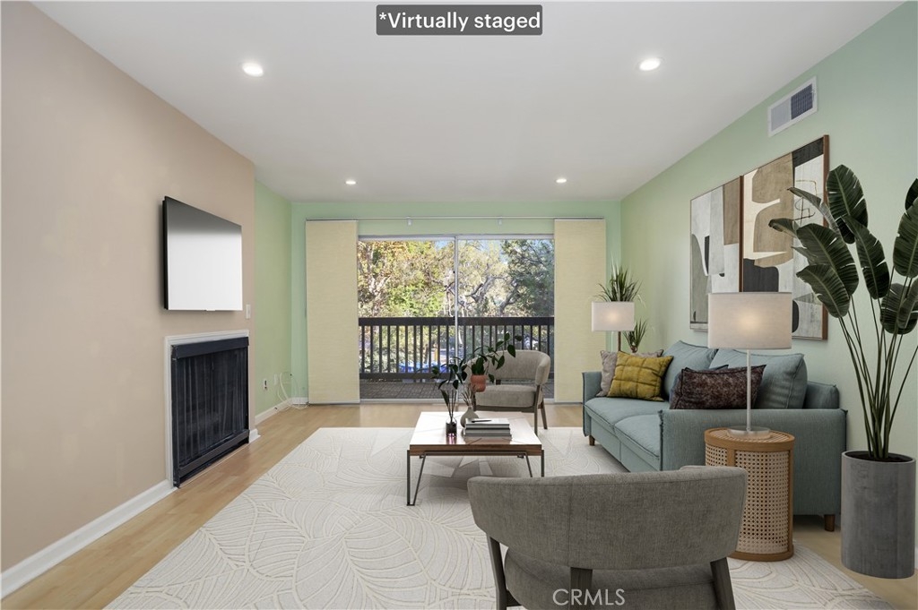 Proud to introduce this inviting one-bedroom, one-bathroom condo unit located in the desirable Raintree community. With 735 square feet of living space, this modern condo offers both comfort and style. The open floor concept seamlessly connects the dining room and living room, adorned with recessed lights, creating a spacious and bright ambiance. From here, enter onto the roomy balcony, a perfect spot for enjoying the outdoors and entertaining guests. The galley-style kitchen consists of stainless steel refrigerator and stove. Additionally, there's a convenient wet bar area complete with a wine rack and extended counter space. Standout features of this unit include the decorative fireplace and enjoy year-round comfort with a central air and heat system! The spacious bedroom is a peaceful retreat, complete with a walk-in closet and access to the balcony through sliding doors. Convenience is further enhanced with two parking spots - one covered and one uncovered. Living in the Raintree community means you'll have access to a plethora of amenities, including a heated pool, hot tub, clubhouse, nature walking paths, large lake, fitness center, 24-hour gate-controlled security, and a volleyball court. In addition to all the community amenities, the HOA fee includes these utilities- water, sewer, trash, gas for the fireplace, and premium cable tv/internet Spectrum package. You are in the heart of Culver City and very close to Downtown Culver City, Sony Studios, Baldwin Hills Scenic Overlook, Westfield Mall, and plenty of other wonderful attractions!