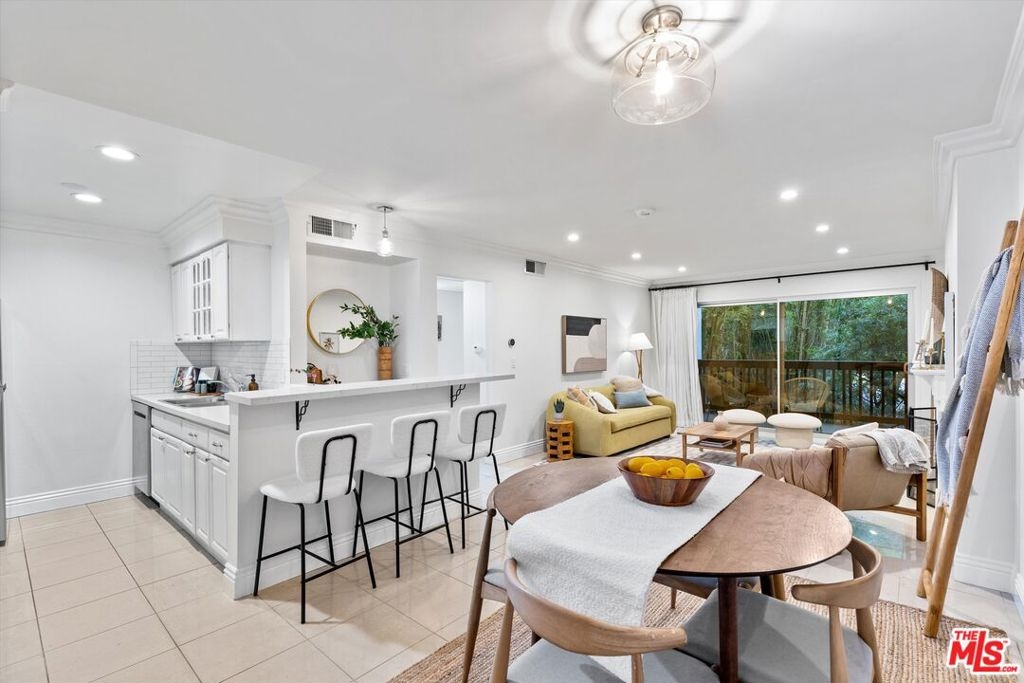 Updated condo in the highly desirable Raintree Complex, which is famous for being the former MGM Studios backlot! Attractive, freshly painted 1 bedroom unit is located above the ground level. Kitchen has quartz countertops, subway tile backsplash, and white cabinets with newer hardware along with stainless steel Samsung appliances, including dishwasher. Spacious great room with dining area and adjacent bar, which provides extra counter space as well as wall closet for extra storage. Open floor plan with tile flooring, crown moldings, ample recessed lighting, and fireplace opens to large balcony. Unit is equipped with central heat and air and Nest thermostat. Good size bedroom has walk in closet with built-ins. Bathroom has separate built-in vanity area with quartz countertops. Large shower has been updated with attractive tiles. Two parking spaces plus plenty of guest parking. 24 hour guard gated complex has pool, spa, gym, volleyball court, recreation room, and beautiful, park-like grounds that include a lake and lush trees and greenery. Nearest gated community to Downtown Culver City and located to close proximity to Sony Studios, numerous restaurants, shops, and theaters.