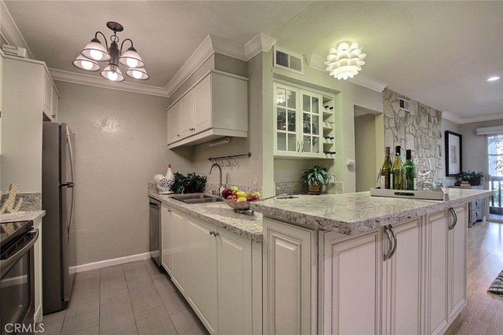 Updated large 2 bedroom 2 bathroom condo in the highly rated Raintree community. The condo has recent upgrades that include hardwood floors all throughout the unit, a beautiful ceiling with crown molding, recessed lighting, classic lighting fixtures including Tiffany style ceiling light, high-end Hunter Douglas shutters, vertical blinds, modern IKEA kitchen cabinets with soft close cabinet hinges, newer kitchen applications. glass door cabinet with wine rack/wet bar with beautiful stone countertops. The two large bedrooms have a lot of closet spaces with direct access to the covered balcony. The central AC unit is just 4 and a half years old. Two side by side parking spaces are located on the first floor with prime location close the elevator.The complex has access to many different amenities such as a heated pool, spa, fitness center, lake, and clubhouse. The front gate has 24 hour security with guards. The community is close to all the activities in Culver City and the city has great schools. The HOA also covers water, trash, fire place gas and basic cable. A must see! https://my.matterport.com/show/?m=NedHsmHZmm2&brand=0