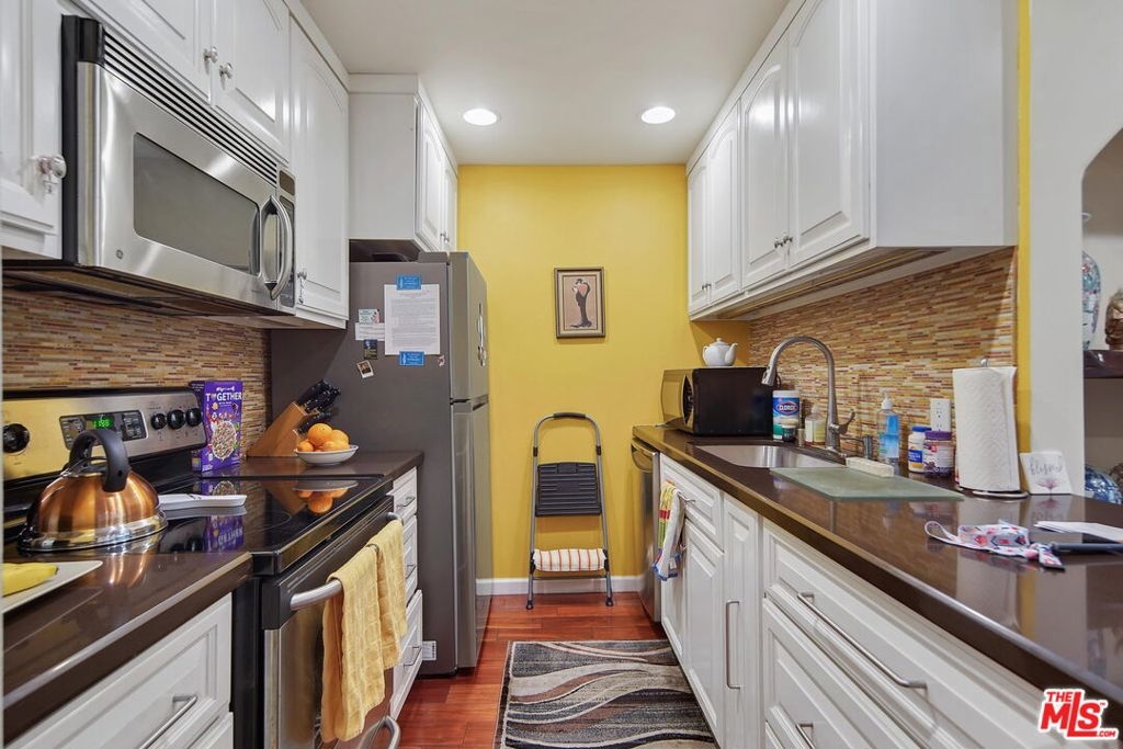 Gorgeous, fully updated and remodeled two bedroom condo in Raintree. Living room has rich, hardwood flooring, recessed lighting and custom fireplace. Galley kitchen with all built-ins. This floor plan has two suites on either side of the living room. Deluxe master bath with large, custom shower. Prime interior location with lush landscape just outside the windowfeels like a vacation! One of Culver City's most popular condo complexes with large lake, acres of open park-like grounds, multiple heated pools, spa, fitness center with sauna, multiple rec buildings and full time guards with 24-hour gated security access. Two tennis courts, volleyball court and scenic walking paths throughout the grounds. HOA fees include water, gas, basic cable and EQ insurance. Laundry rooms on every floor. Gas fireplaces and central A/C. Farragut Elementary School. Just minutes from Downtown Culver City, Sony Studios, and a quick drive to Santa Monica, Venice and Playa Vista. Walking distance to the Ballona Creek bike path. Friendly complex for people and pets!!