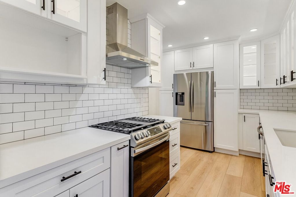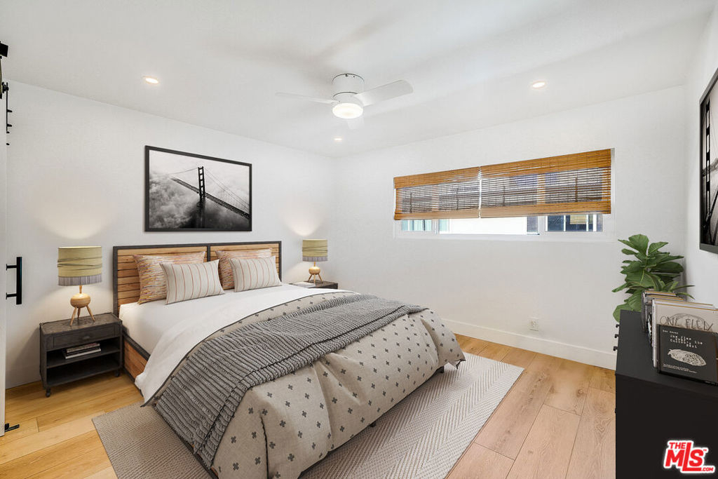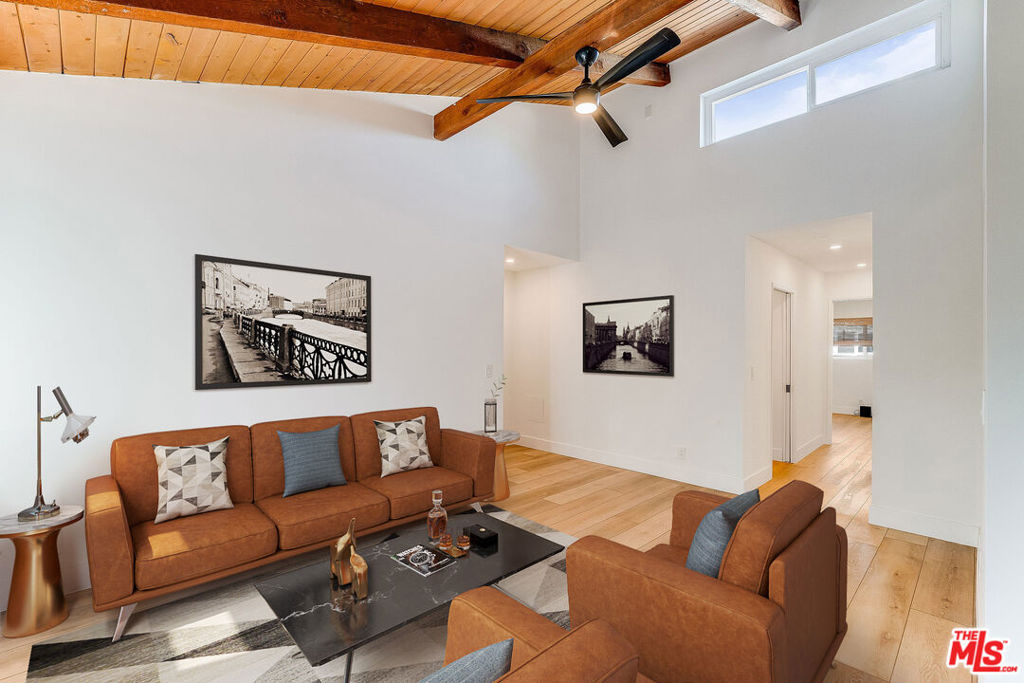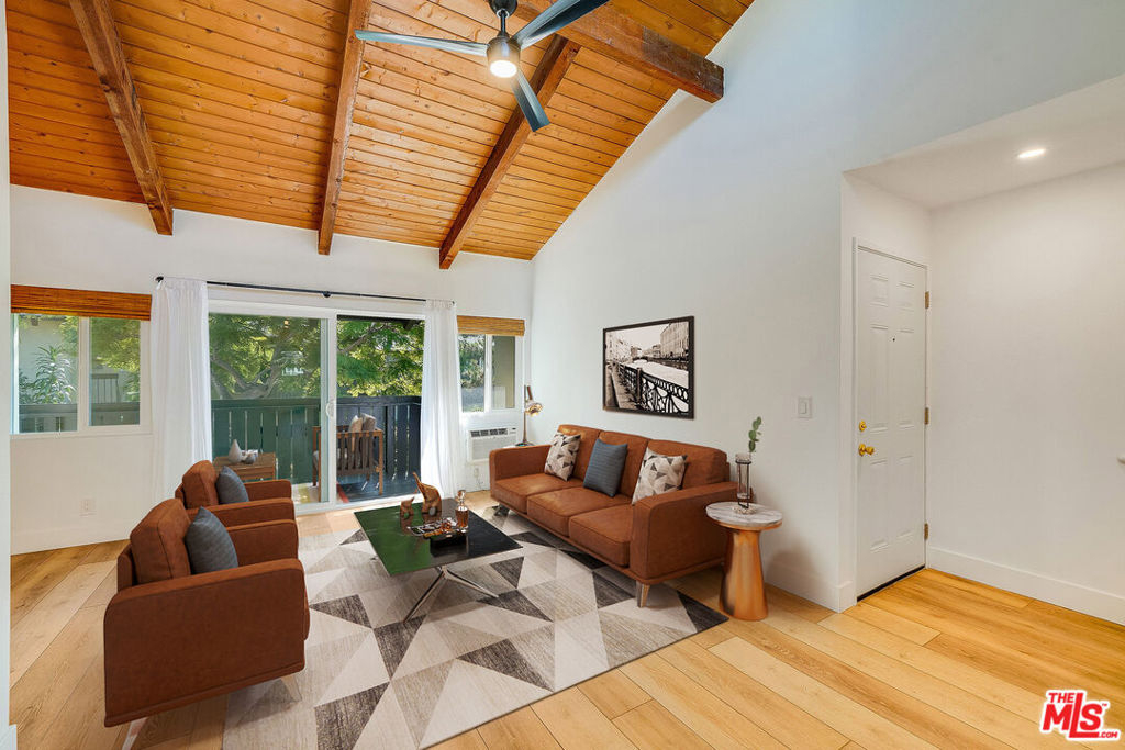 Welcome to this newly updated home located in the highly sought-after Tara Hill community of Culver City. This 2 bedroom, 1 bathroom condo on the top floor offers 852 square feet of stylish living space with a host of contemporary upgrades. Inside there are soaring beamed ceilings and brand new flooring throughout. The open floor plan connects the living room, dining area, and kitchen that has new cabinets and countertops and illuminated cupboards with brand new Samsung stainless steel appliances. New Subway tile in the kitchen and bathroom. Both bedrooms have custom closets, providing ample storage for your wardrobe and personal items. Ceiling fans in each bedroom and the living room keep the atmosphere comfortable year-round. A private balcony with a closet for additional storage. This condo comes with two covered parking spaces. The Tara Hill complex offers many resort-like amenities, including two pool areas and a spa, an on-site gym, and sauna. There are two community laundry rooms, a clubhouse, picnic areas with bbq grills, and a jungle gym with a slide for the kids, and pet friendly areas to walk your dog. The highly ranked Culver City Unified School District (CCUSD) gives families great educational options with grades K-12. Located in the heart of Culver City, this condo is minutes away from many entertainment options and trendy restaurants, shops, parks, and the Ballona Creek Bike Path which extends to the beach. Commuting is a breeze with easy access to major highways and public transportation. HOA covers: water, gas, refuse (trash/recycling), basic cable & internet, landscaping maintenance, maintenance of pools/jacuzzi/gym, and earthquake insurance.