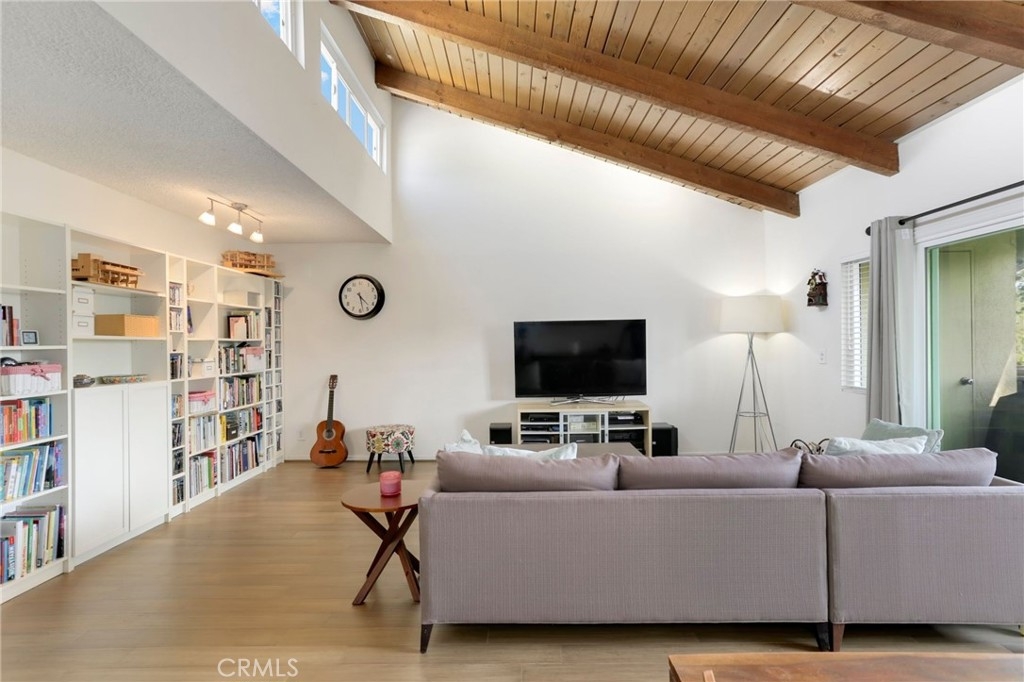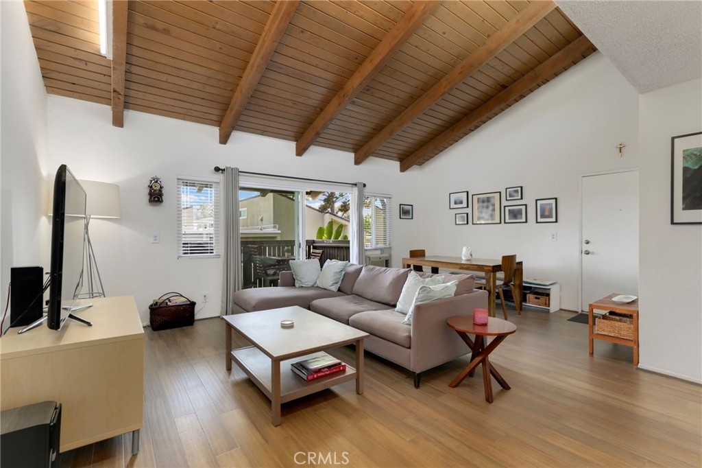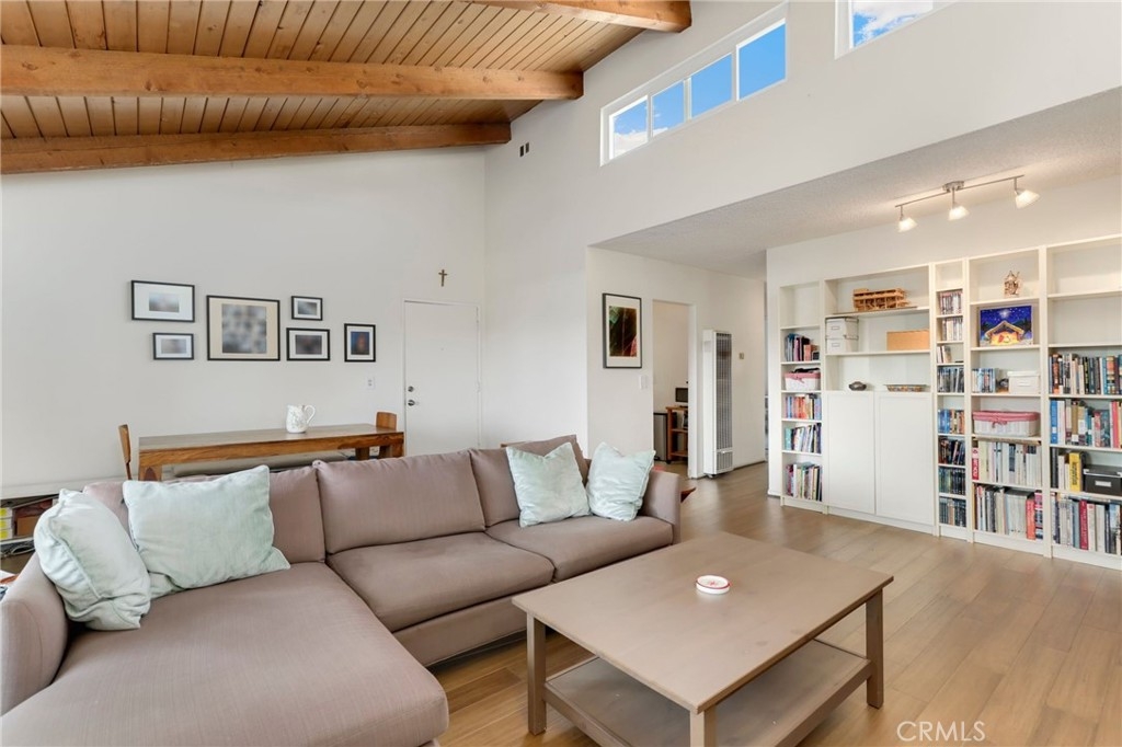 Welcome to this stunning top floor end unit in a peaceful location in the heart of Culver City. This beautiful condo features lots of natural sunlight, offering panoramic views & enhanced privacy due to its prime location. Upon entering, you are greeted by vaulted wood ceilings with north-facing clerestory windows, creating an open and airy atmosphere. The open floor plan features new hardwood bamboo floors. The kitchen is equipped with modern appliances & ample storage space. Imagine preparing BBQ on the patio grill or enjoying your morning coffee on your private balcony with open, unobstructed tree-top views. On 4th of July you will be treated with the best views of the Culver City fireworks from your patio! The large patio also includes extra storage space. The primary bedroom boasts an updated ensuite bathroom. The second bedroom is equally inviting, perfect for guests, children, or a home office. Both bedrooms have new carpet. This condo unit comes with updated dual glazed windows throughout and extra wide tandem parking spaces. There is 24-hour security, 2 swimming pools, spa, gym and beautifully maintained common areas with lush landscaping. This property is within the excellent Culver City school district. Additionally, there’s easy access to all shopping, dining & entertainment that Culver City has to offer. Whether it's a quick stroll to the nearby shops or convenient access to public transportation, everything is within walking distance. Don't miss out on this remarkable opportunity to own the perfect blend of comfort, convenience & security in this unique and exceptional property.