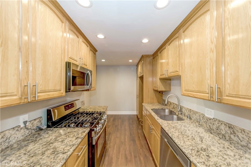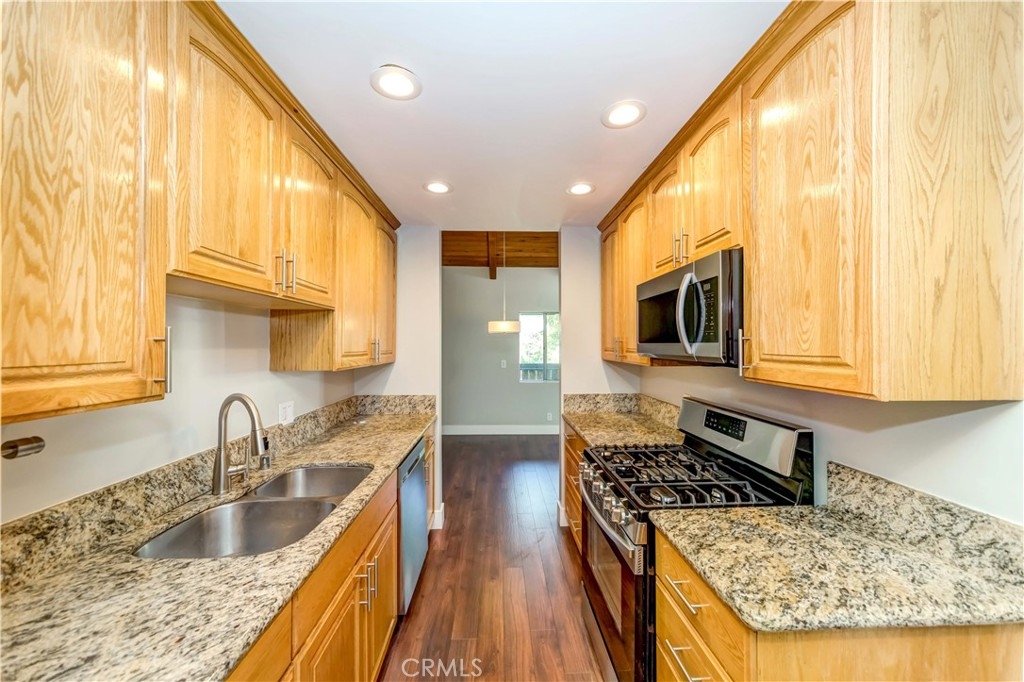 Welcome to this inviting & quiet top floor 2-bedroom 1-bath unit, with new interior paint, updated flooring throughout the unit. The Kitchen has brand-new stainless-steel stove, microwave, and dishwasher. Resort-style, luxurious complex features 24 hr. guarded gate, gym room, 2 pools, saunas, spas, playground, clubhouse, and more. HOA include cable TV, Internet, gas (heat & stove), water & on site manager. Plus, in the Award winning Culver City/Farragut School District & close to downtown Culver, shopping & great hiking trails!