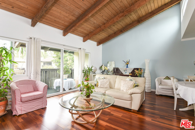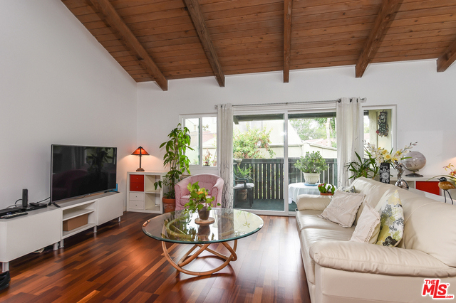 Fabulous top floor, CORNER unit! Prime location within the complex close to the play area. Gorgeous Brazilian cherry hardwood floors throughout glow from the skylights of the vaulted wood-beamed ceiling. The updated kitchen has been remodeled with tile flooring and solid surface countertops, with a large walk-in pantry any chef would appreciate. Both bathrooms have been updated with beautiful gray and white marble tile floors that complement the accent walls in each bedroom. Floor to ceiling mirrored closet doors flood the master suite with sunlight. Newer dual paned windows throughout. Parking is tandem and below the unit. Tara Hill is one of a few 24-hour security guard controlled access communities in Culver City with lush beautifully maintained grounds. This is a beautiful complex -- this is a beautiful unit -- blink and this one's gone! Close to shopping, transporation, Silicon Beach and downtown LA.
