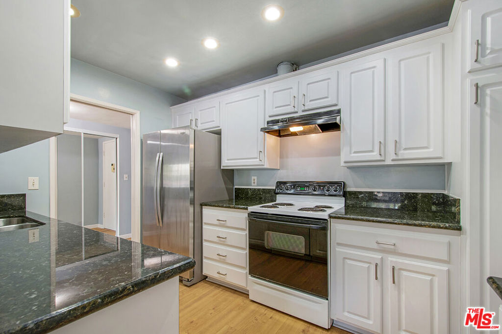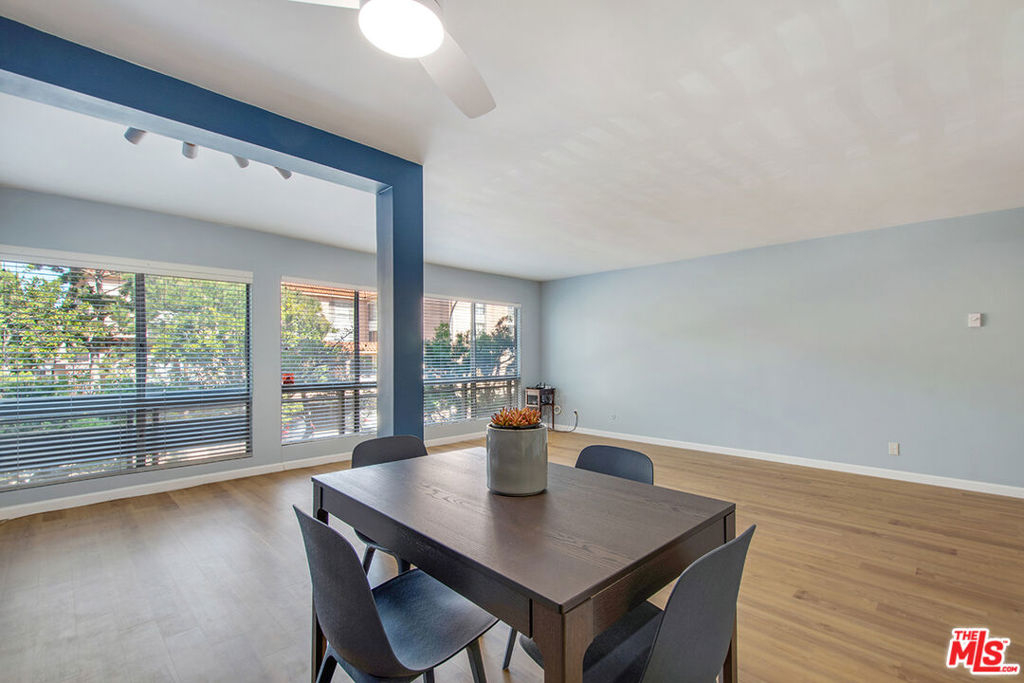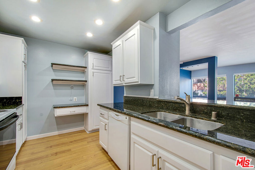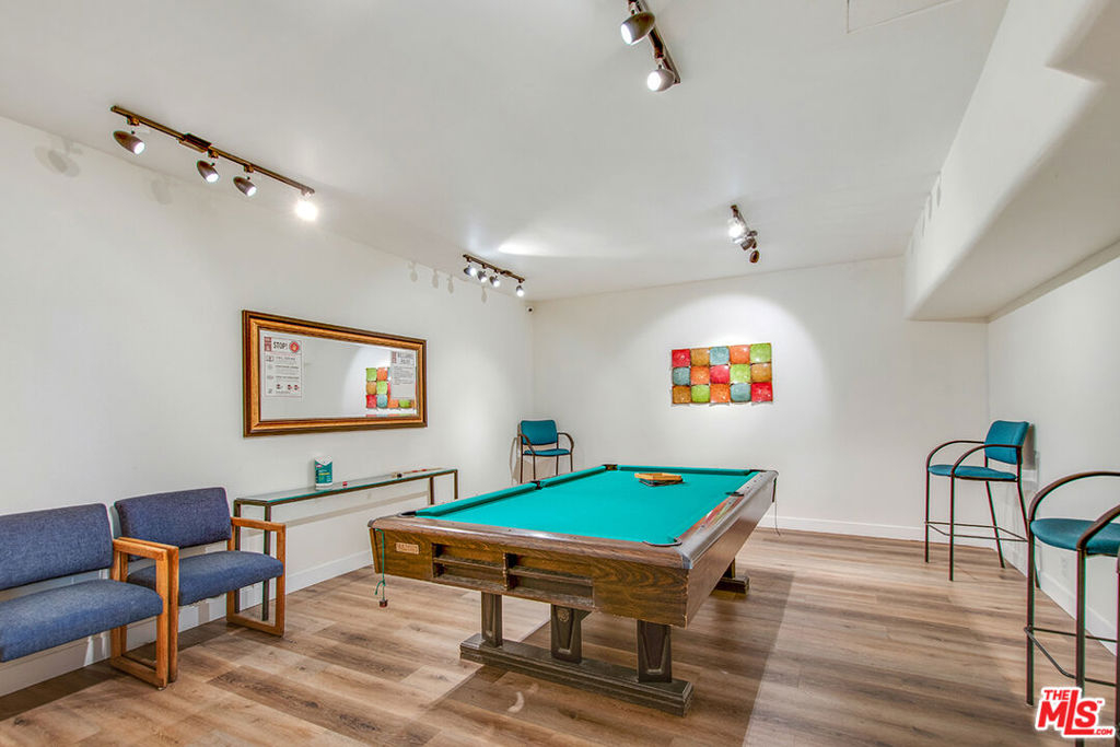 Extra large 2nd floor 2 bedroom 2 bath remodeled open spacious larger than most unit w/large picture windows that allow natural light to flood through wood blinds and into an open floor plan living room, dining area. This unit features an enlarged living area because the patio was converted to a bonus space w/a permit providing a perfect bonus or office space (see permits in document section of the MLS) this extra work area is separate but also allows for expansion of the dining area if needed. The owner also reimagined the cabinets, closets & shelving throughout the unit to maximize storage and use of space. When you enter the unit there is a large entry closet w/ample storage space; you walk directly into a sprawling living room w/ a smooth ceiling; additional shelves & cabinets are custom built and add storage space while also providing a creative division between the dining area & the bright remodeled contemporary kitchen w/recessed LED lighting and shaker cabinets, ample granite counter space & added shelving over a floating desk & drawer; 4-burner electric stove & oven, GE dishwasher, pantry cupboard & utility cupboard. Bedrooms are on a private side of the unit w/a spacious guest bedroom w/custom closet system; across the hall is a bath w/large shower & toilet w/bidet; at the end of the hall is the primary suite with a large walk-in closet w/ fully built-out closet organization system; en suite full primary bath w/a new light fixture over the sink, ceiling bathroom heater & bathtub & shower; laminate wood floors are throughout the unit; radiant heat no a/c. HOA dues include: Internet, basic cable, earthquake insurance, water, sewer and trash; one assigned parking space (#62); Community amenities include: Large sparkling swimming pool & whirlpool in ample deck area off the large community room w/lounge area & plenty of space for entertaining plus a full kitchen including refrigerator, microwave, 4-burner stove & oven, stainless steel double sink; separate billiards game room; fully equipped gym, sauna & two restrooms; 2nd community patio patio has seating for 12+ at outdoor dining tables & chairs near outdoor BBQ for community use; secured entry w/large entry lobby for each building; on-site building manager in office located in spacious main entry to the complex; Near this unit is one of four large laundry rooms & a community storage room; there is also space for parking bikes near the garage entry. The location of this corner unit offers privacy as it is at the end of the walkway w/a neighbor on one side only & a large landing at the front door that is elevated at the 2nd floor level & facing an open green ivy covered courtyard. The Camelot building complex is designed as an open air complex has no closed hallways; it is comprised of five smaller buildings w/separate laundry & storage for each building; walkways feel like community paths and create natural breezeways for residents to enjoy. Additional highlights include being in the Culver City School District. You will enjoy this pedestrian friendly community w/a complex directly across from the 10-acre Fox Hills Park which has a lengthy perimeter jogging/exercise path, tennis and paddle tennis courts, small playground, plenty of green grassy lawn, Basketball courts, and more; also just minutes from Westfield mall and Playa Vista, beaches, Downtown Culver City, and numerous retail and dining destinations.