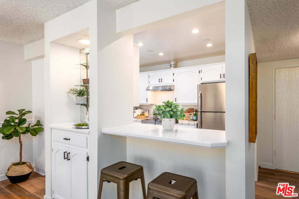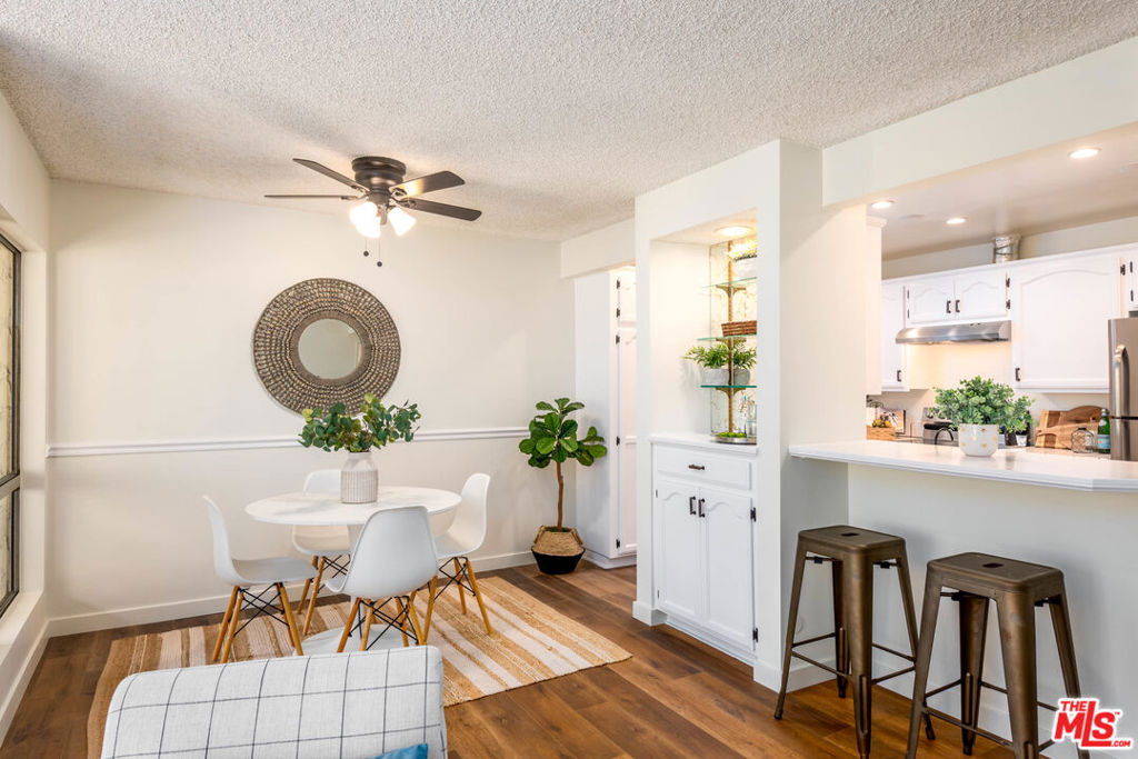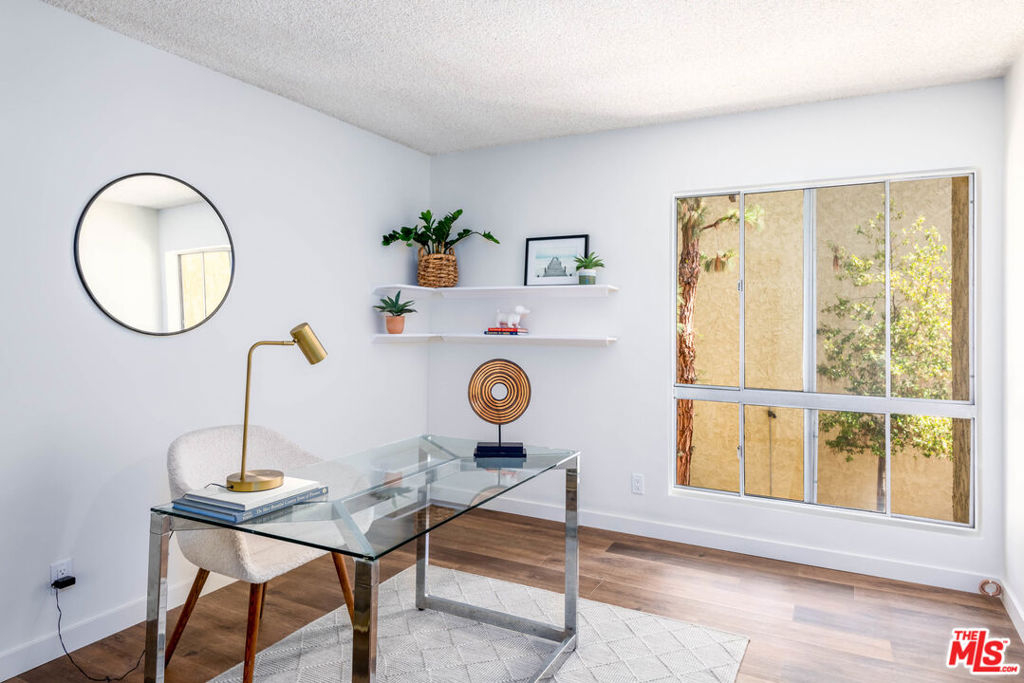 Located in the Hacienda-style Camelot complex with its open breezeways and resort-style amenities, this peaceful corner end unit overlooking the interior courtyard is a wonderful place to call home. Upon entering you are welcomed by a chic open living space highlighted by beautiful white oak vinyl flooring and a large wall of windows that frame the delightful views. Enjoy preparing meals in the bright and open kitchen with a breakfast counter, new stainless steel range, and abundant cabinets with contemporary hardware. Adjacent the kitchen is a dining area and charming balcony to relax and enjoy the outdoors. Additional highlights include a new electrical panel, sizeable bedroom/office, Ensuite with walk in closet, and tiled bathrooms with new glass shower doors. One assigned subterranean parking space conveniently located near the elevator (#179), plus a second space owners are leasing from another homeowner until March 2022 with an option to extend (#150). Ideal location across from 10-acre Fox Hills Park, and just minutes to Playa Vista, LAX, beaches, Downtown Culver City, and numerous retail and dining destinations.