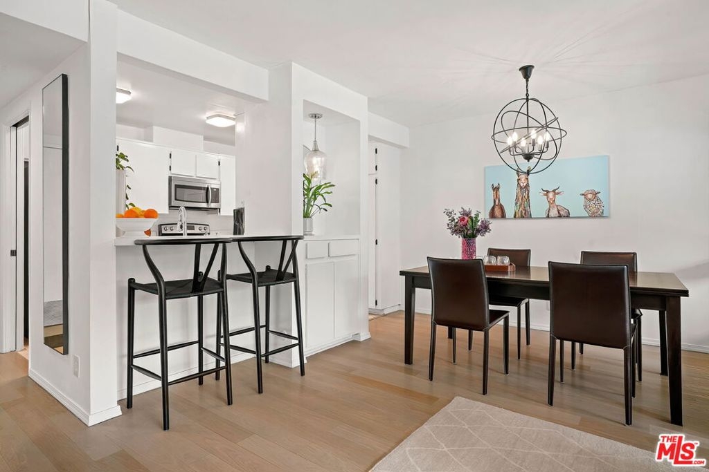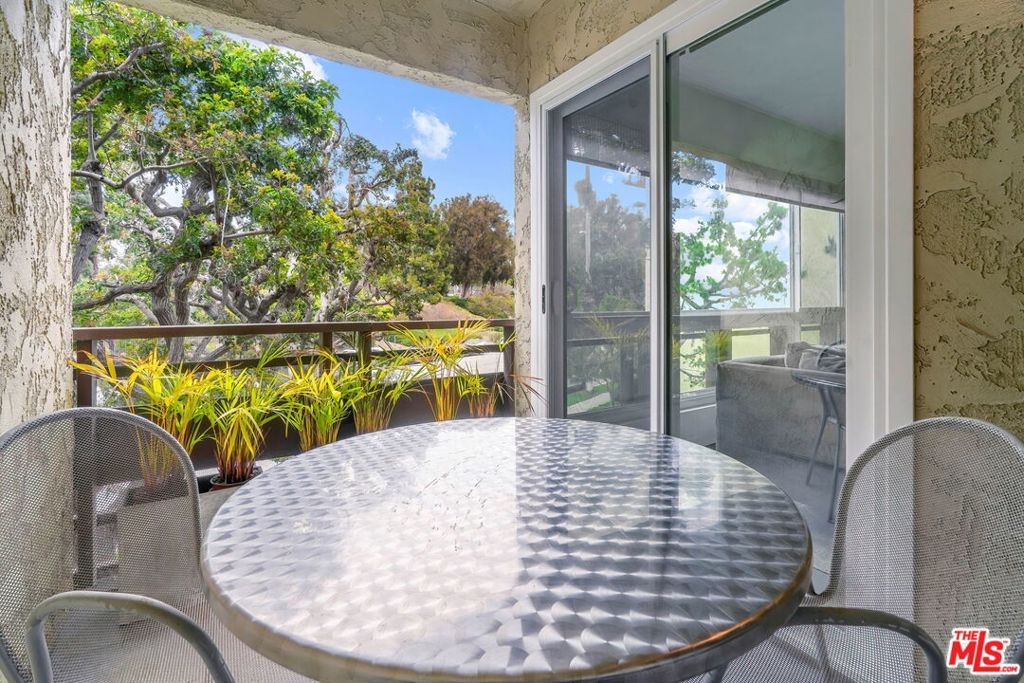 Bright and airy updated two bedroom, two bath condo with serene tree top and park views in the sought after Camelot complex. Enter to an intuitive open flow living space, with chicly refinished hardwood floors. This corner unit is optimally situated within the complex and only has one common wall (dining room), the newly installed wall-to-wall dual-pane windows soak the unit with natural light and overlook Fox Hills Park. Covered balcony off the living space provides the perfect spot for dining al fresco, enjoying a morning coffee, or working from home. Large primary suite with walk-in closet and secondary bedroom also boasts excellent storage. The interior has been thoughtfully maintained with newer stainless steel appliances, and faucets, and newer carpeting in the bedrooms. The Fox Hills location offers a true feeling of community, and the building has many amenities; swimming pool, spa, gym, sauna, rec room and multiple BBQ areas for resident use. Additionally there are TWO side-by-side parking spaces allocated. Close to everything that Culver City has to offer!