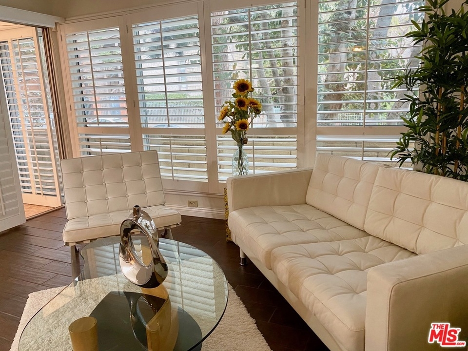 Beautiful, Spacious, Bright, Airy, Corner unit, Open concept 1 bed+1 bath + DEN + LARGE Balcony Condo! This is a first floor unit that is elevated from street level that you have Tree top view from living room and bedroom. Beautiful remodeled kitchen w/ custom cabinets and granite counter tops. Large living area w/ gorgeous tile flooring that looks like wood. Breakfast bar and dry bar w/ wine rack. Perfect DEN/OFFICE are off the living room w/ beautiful patterned tile floors. Large bedroom that flows to a large balcony w/ same beautiful tile flooring as the Den. Large bathroom w/ separate shower and tub. Beautiful Custom Plantation Shutters thru out the condo. Windows/ Sliding doors upgrade to beautiful white double pane windows. HOA INCLUDES: INTERNET, water (hot and cold), sewer, trash, basic Cable. Great amenities: pools, hot spa, sauna, gym, party room, billiards room, BBQ areas, putting green. Award winning K-12 schools. Near Playa Vista, Silicon Beach, LAX, Beach, FWYs, Shops, Restaurants & Wonderful Park across : jogging path w/ exercise stations, tennis and paddle tennis court, basketball, volleyball, playground, large grassy area! See 3D tour!