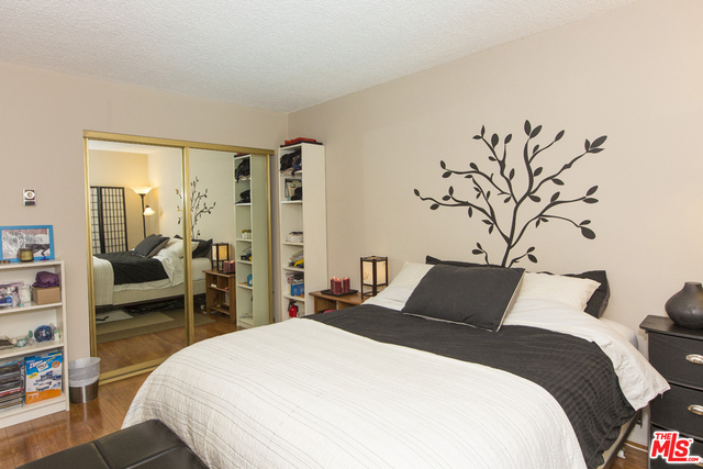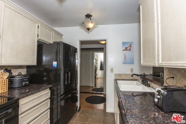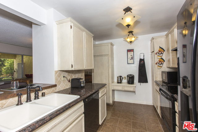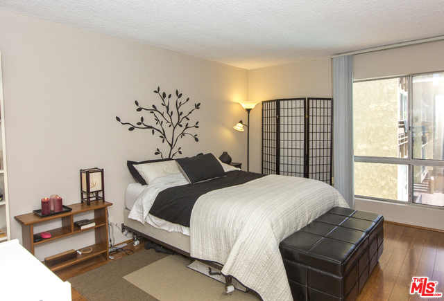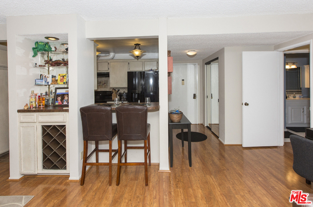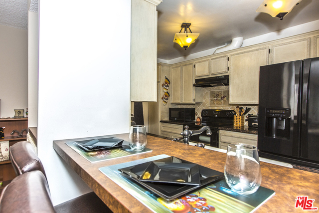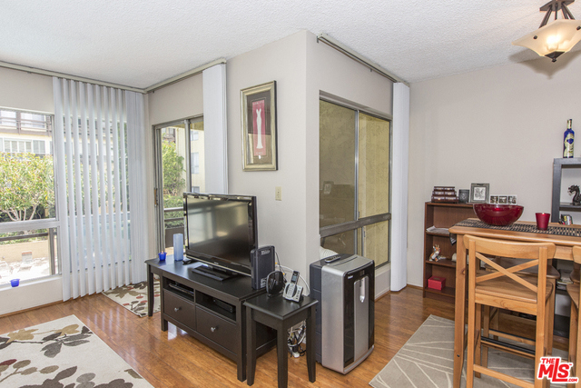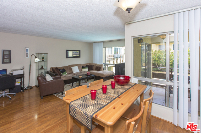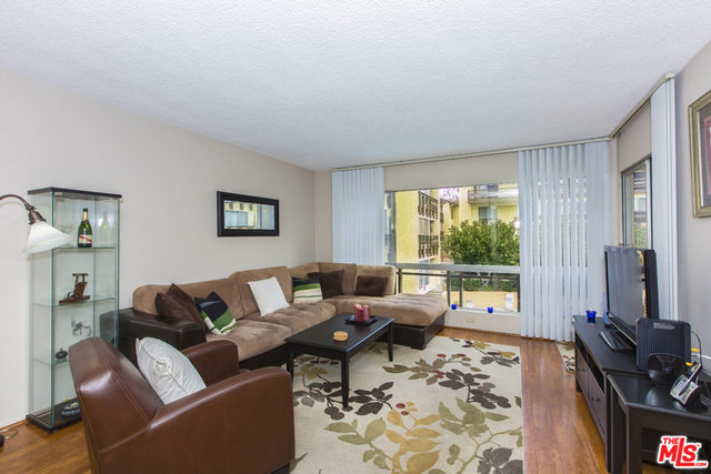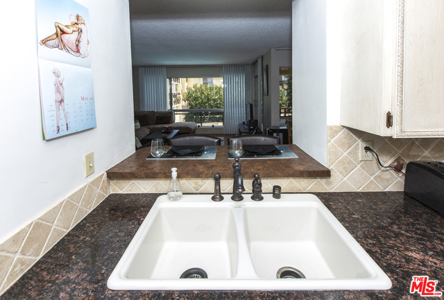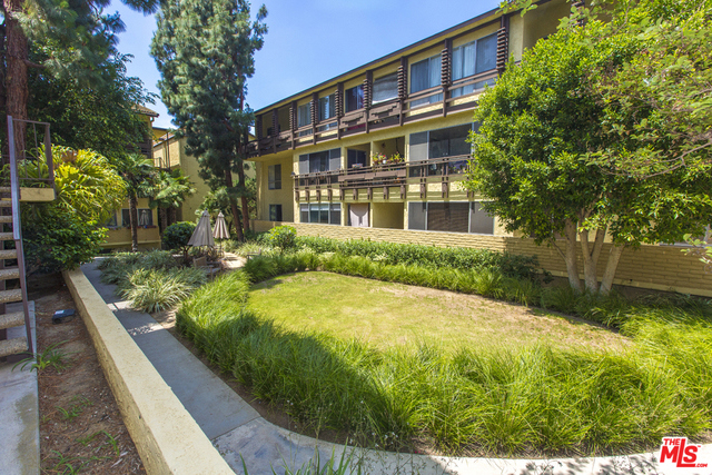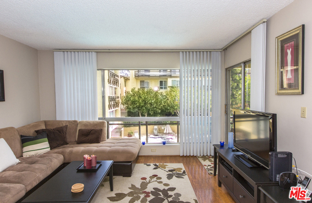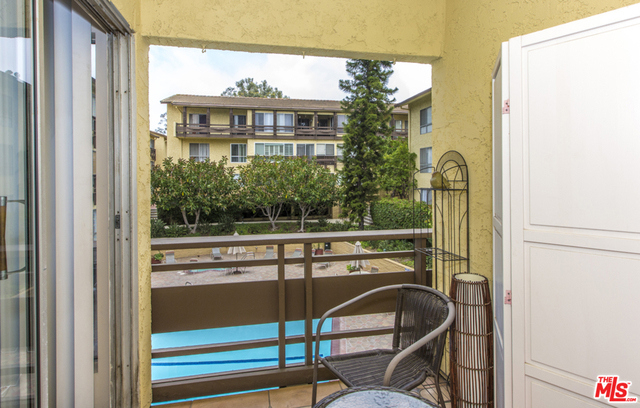 Located in the Hacienda-style Camelot complex with its graceful archways, open breezeways, and resort-style amenities, this corner end unit overlooking the inviting outdoor pool is wonderful place to call home. Enter into an expansive living room featuring elegant wood laminate floors, separate dining area, and a large wall of windows framing the picturesque views. The galley kitchen is outfitted with stylish cabinets, bullnosed granite counters, decorative travertine backsplash, Kohler sink with bronze hardware, sleek black appliances, and tiled flooring. There's also an eat-at bar that opens to the living room. The corner master suite is private and comfortable and features a beautiful remodeled bathroom with wonderful tilework and modern fixtures. Additional highlights include an outdoor balcony, gated parking by the elevator (space #213) and controlled access. Popular tree-lined neighborhood 1 block from the park and just minutes from a myriad of shopping and dining destinations.