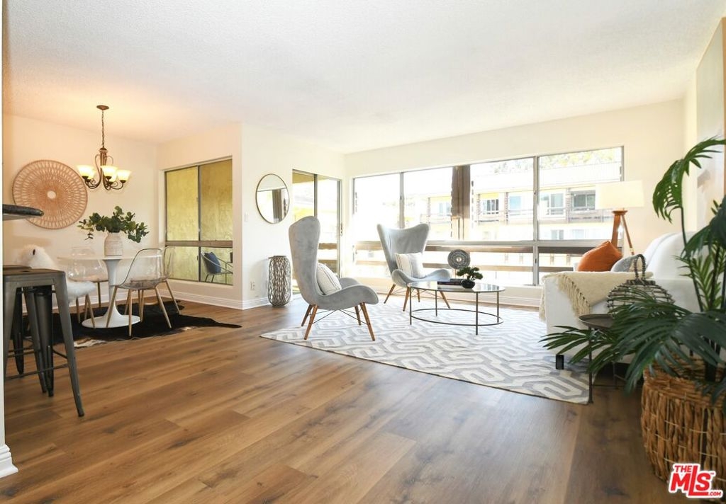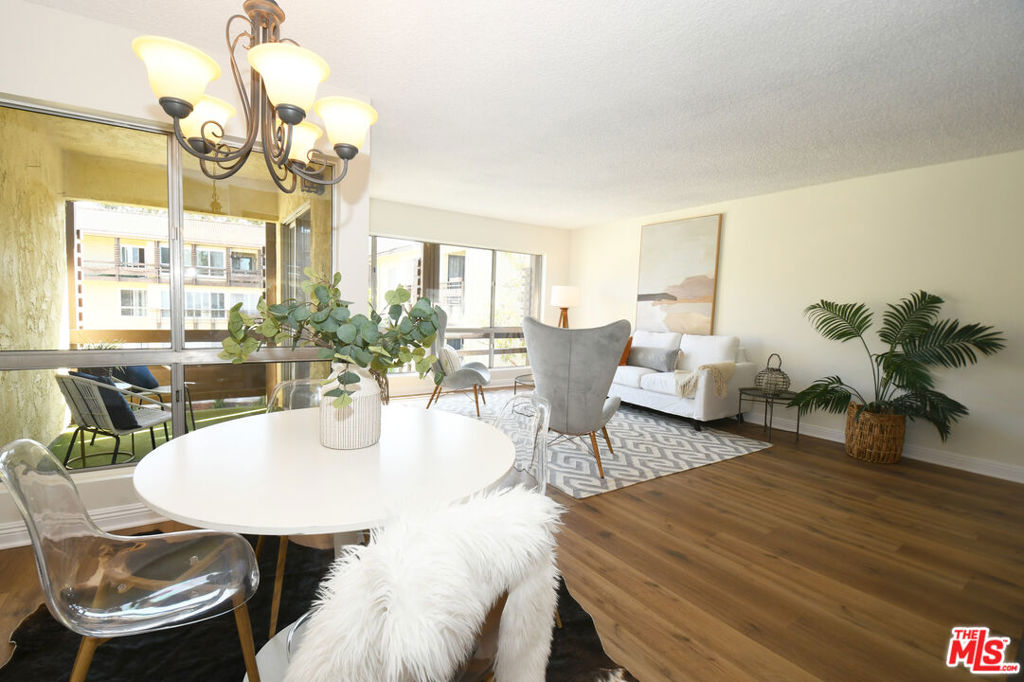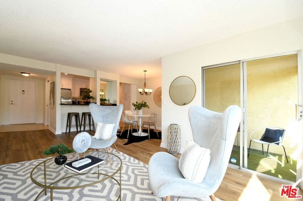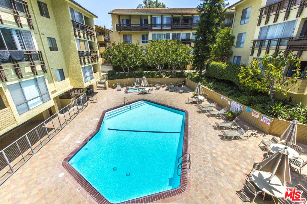 Enjoy resort-style living in this premier top floor unit with two spacious balconies overlooking the central pool area. From the outside breezeway step inside a chic and airy living space boasting new wide-plank vinyl flooring and large picture windows that frame the exceptional views. Preparing meals in the bright and open contemporary kitchen is a delight with tile flooring, granite counters, stylish hardware, stainless steel appliances, and breakfast bar. Adjacent the kitchen is a dining area and charming outdoor balcony to relax and enjoy the outdoors. Down the hallway is a guest bedroom and bathroom, generous-size primary suite with walk-in closet, and second expansive balcony shared by both bedrooms. Additional highlights include easy access to the elevator, complex amenities, and parking. Renowned Culver City School District with 10-acre Fox Hills Park across the street. Just minutes from Playa Vista, beaches, Downtown Culver City, and numerous retail and dining destinations.
