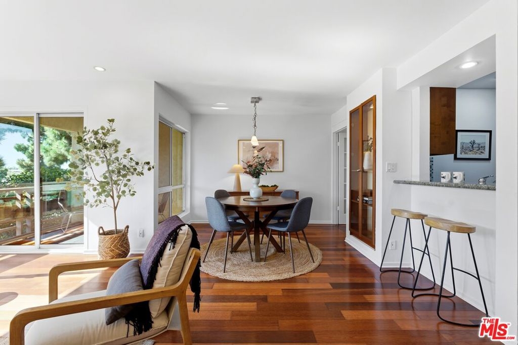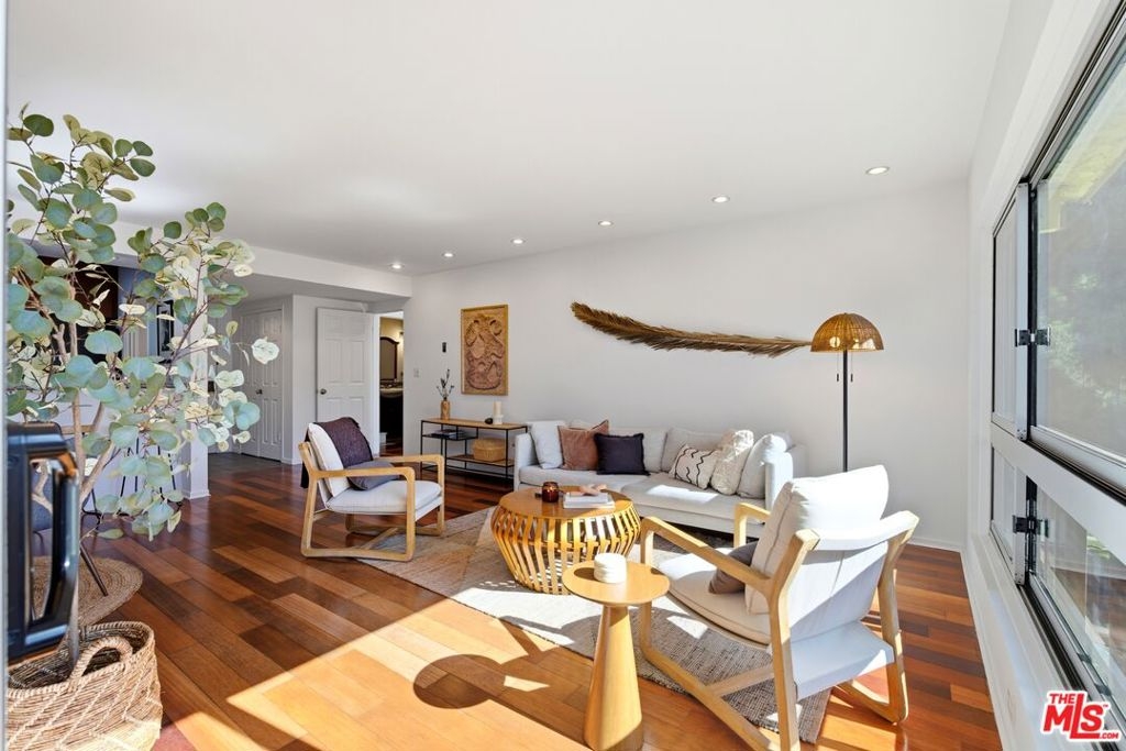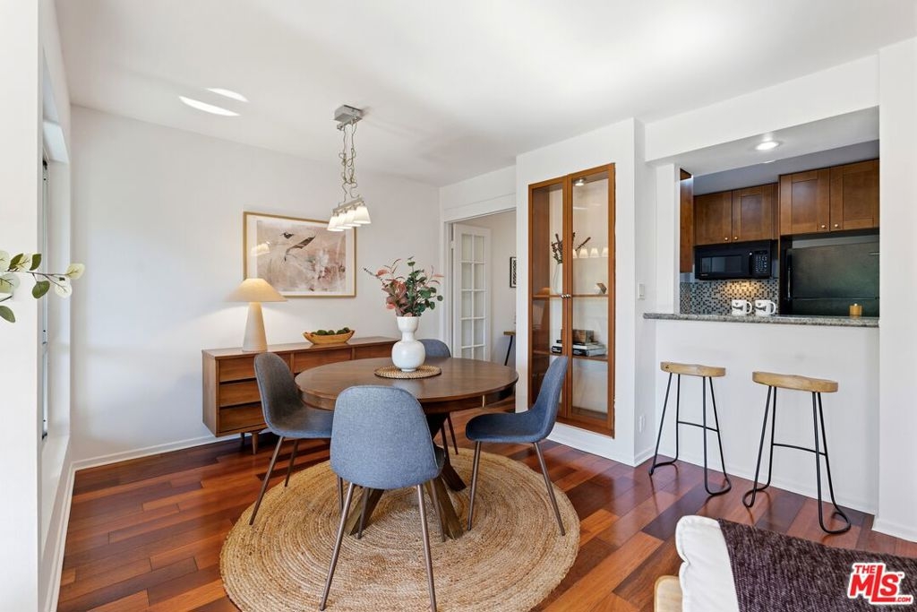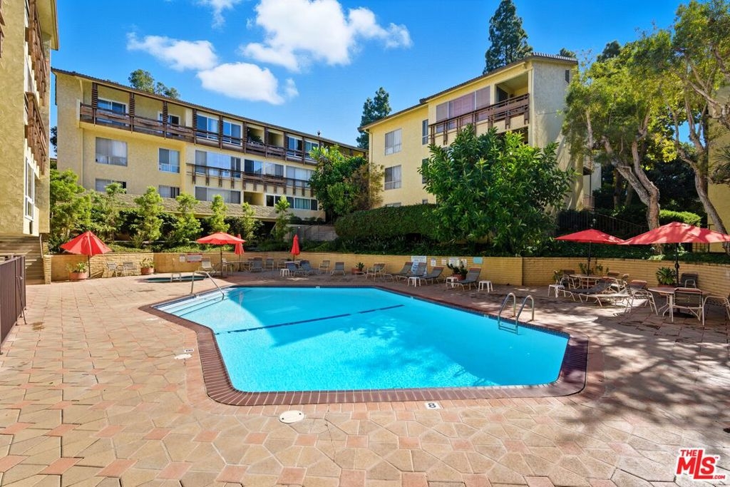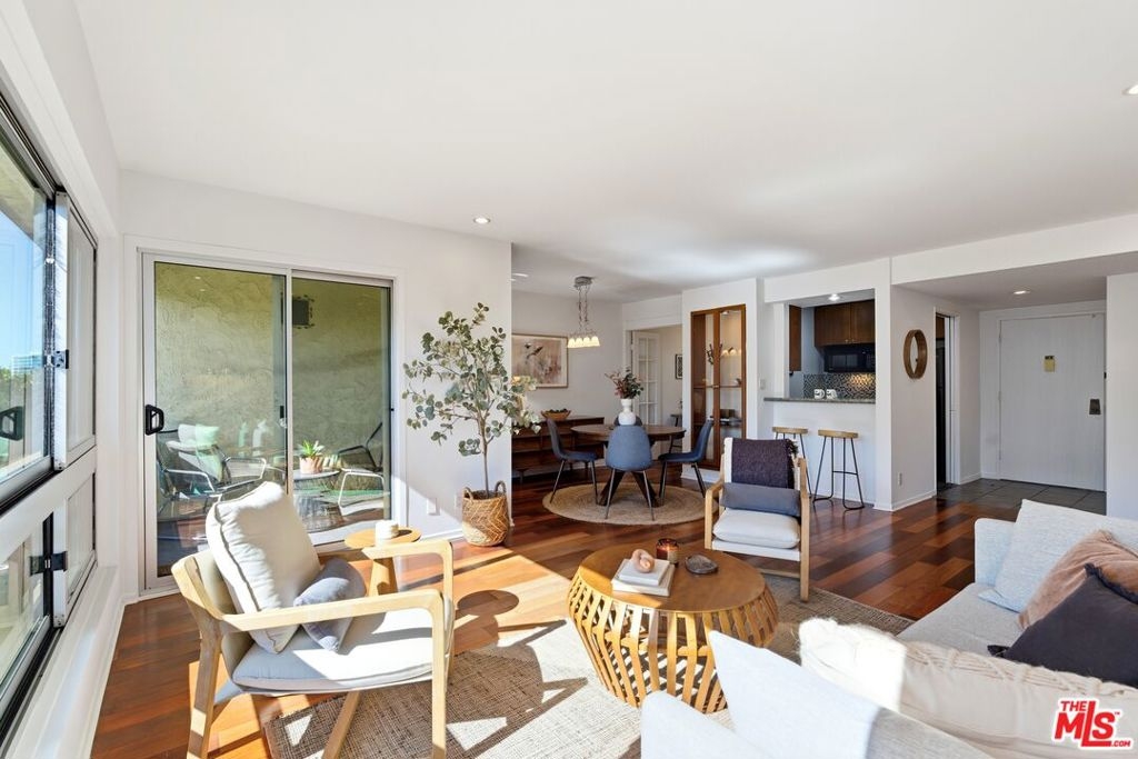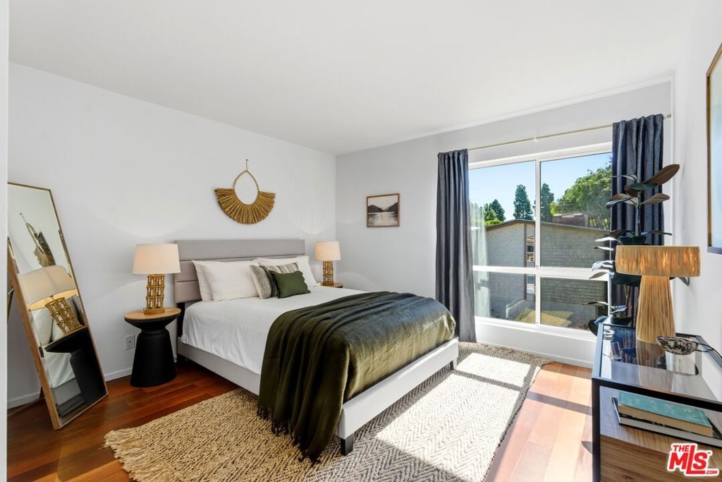 Welcome to this bright and airy top-floor retreat in Culver City's coveted Fox Hills neighborhood. Set within the Camelot community celebrated for its open-air design, charming courtyards, elegant arches, and open walkways, this one-bedroom home offers an atmosphere of light, space, and tranquility. Inside, expansive windows showcase lush treetop views and fill the living area with natural light. The covered balcony is a quiet extension of the living space, perfect for morning coffee or an evening unwinds. The kitchen, anchored by a breakfast bar, flows easily into the living area and connects to an adaptable bonus space that can serve as a home office, reading lounge, or creative studio. The bedroom is generously sized with a large walk-in closet, while the bathroom offers both a separate tub and shower. Additional features include fresh paint, updated dual-pane windows (Fleetwood in the living room), and warm wood flooring throughout. Also included is one assigned parking space and private storage. Residents of Camelot enjoy resort-style amenities: pool, spa, fitness center, clubhouse, sauna, billiards room, and multiple laundry areas. Low HOA dues include internet, cable, water, sewer, trash, and earthquake insurance. Across the street, Fox Hills Park offers 10 full acres of green space complete with playgrounds, tennis and paddle tennis courts, walking trails, basketball and volleyball courts, and open grassy fields. Just minutes away from vibrant dining, shopping, and entertainment venues with quick access to major freeways this residence delivers the ideal balance of modern comfort and urban convenience, perfect for first-time buyers, professionals, or anyone seeking to enjoy the best of Culver City living.