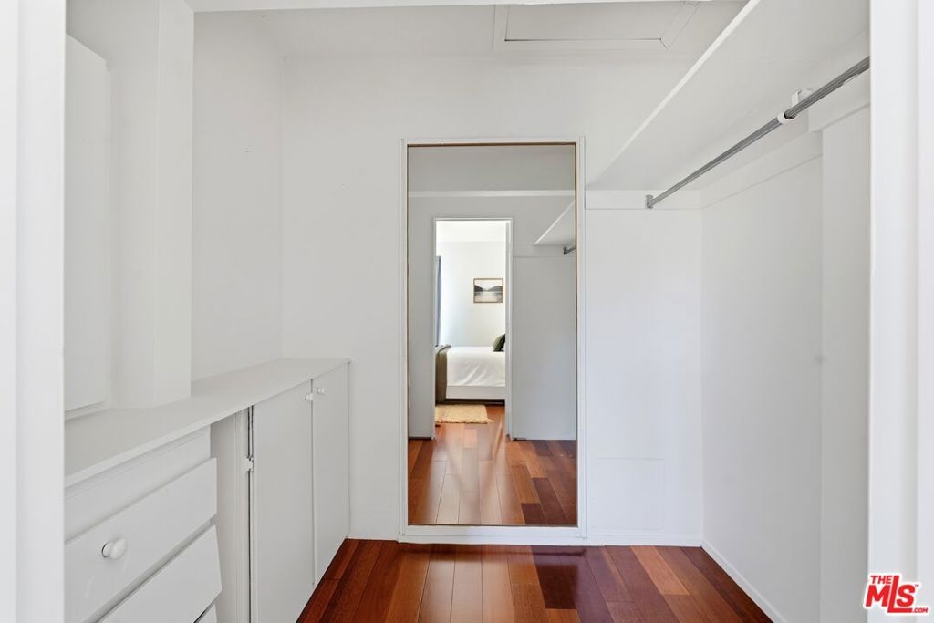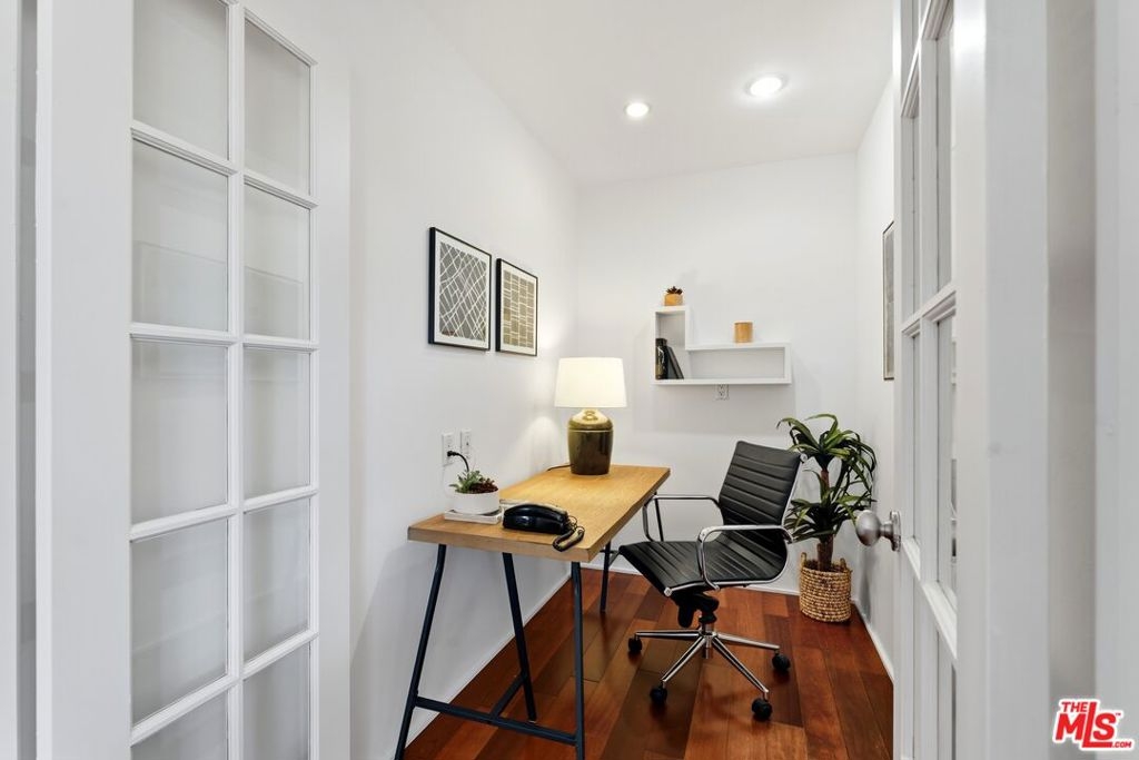 Welcome to this bright and airy top-floor retreat in Culver City's coveted Fox Hills neighborhood. Set within the Camelot community celebrated for its open-air design, charming courtyards, elegant arches, and open walkways, this one-bedroom home offers an atmosphere of light, space, and tranquility. Inside, expansive windows showcase lush treetop views and fill the living area with natural light. The covered balcony is a quiet extension of the living space, perfect for morning coffee or an evening unwinds. The kitchen, anchored by a breakfast bar, flows easily into the living area and connects to an adaptable bonus space that can serve as a home office, reading lounge, or creative studio. The bedroom is generously sized with a large walk-in closet, while the bathroom offers both a separate tub and shower. Additional features include fresh paint, updated dual-pane windows (Fleetwood in the living room), and warm wood flooring throughout. Also included is one assigned parking space and private storage. Residents of Camelot enjoy resort-style amenities: pool, spa, fitness center, clubhouse, sauna, billiards room, and multiple laundry areas. Low HOA dues include internet, cable, water, sewer, trash, and earthquake insurance. Across the street, Fox Hills Park offers 10 full acres of green space complete with playgrounds, tennis and paddle tennis courts, walking trails, basketball and volleyball courts, and open grassy fields. Just minutes away from vibrant dining, shopping, and entertainment venues with quick access to major freeways this residence delivers the ideal balance of modern comfort and urban convenience, perfect for first-time buyers, professionals, or anyone seeking to enjoy the best of Culver City living.