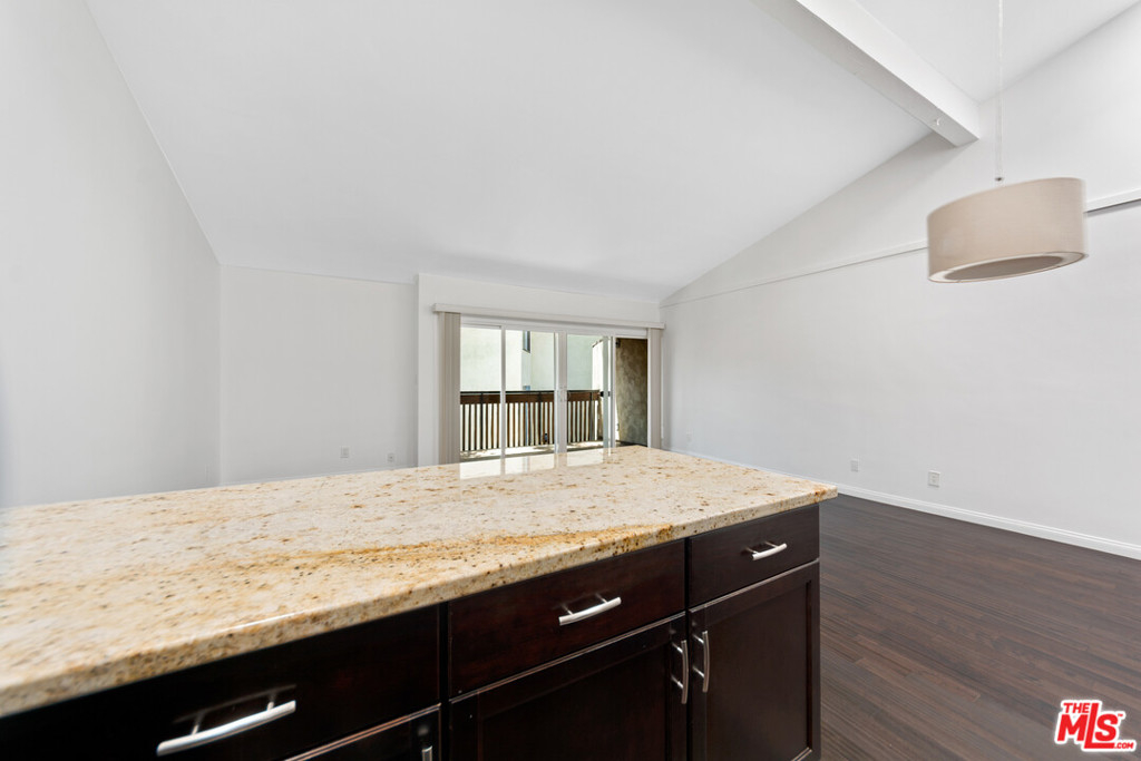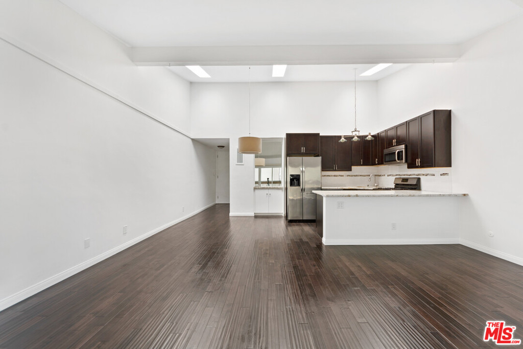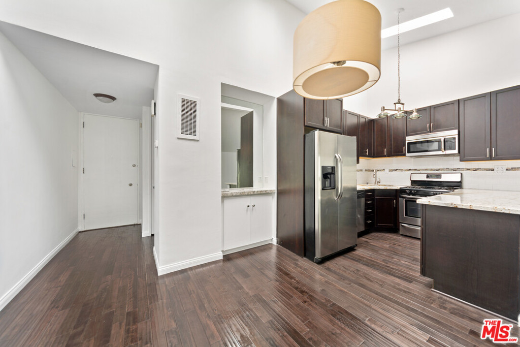 Chic Sophisticated Top Floor Unit. One common wall. Newly Remodeled Kitchen & Bathroom. Dark Wood Floors, Cathedral Ceilings with Skylights, Open Floor Plan, Crown Molding & Baseboards Throughout. Kitchen Features Stylish Cabinets, Granite Counter Tops & Back splash With Glass Tiled Accents. Dining Area Plus Breakfast Bar. Good Size Bedroom with Professionally Organized Closets. 26 Unit Complex, Close to Westfield Mall, Shopping Center & Freeways. Dues covers: unit's water use, trash removal, landscaping, pool maintenance, common area lighting