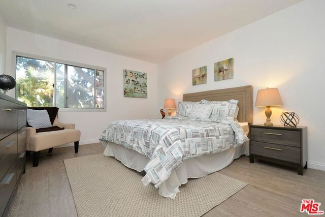 This newly renovated west-facing top floor condo with serene treetop views from every room is in a class all its own. Enter into a bright and open living space boasting contemporary wide-planked wood laminate flooring, recessed lighting, and a large wall of recently installed double-pane windows and sliding glass doors framing the picturesque views. The fully-equipped galley kitchen opens to both the living and dining areas and is outfitted with granite countertops, new sink and fixtures, shaker cabinets, and modern lighting. The master ensuite is roomy, private, and well-appointed with a floor-to-ceiling tiled tub/shower, large vanity area, elegant lighting and fixtures, and a generous-size walk-in closet that can be customized to the buyer's specifications. 2 tandem gated parking spaces included (#421), and the amenity-rich complex offers an inviting outdoor pool, saunas, fitness center, controlled access, and clubhouse with on-site manager. An exceptional, move-in ready property.