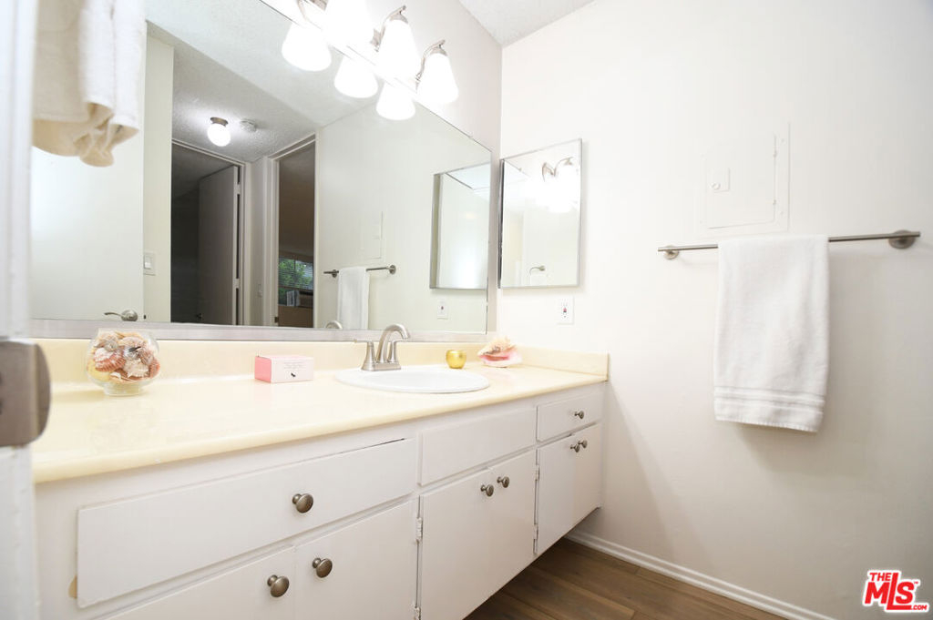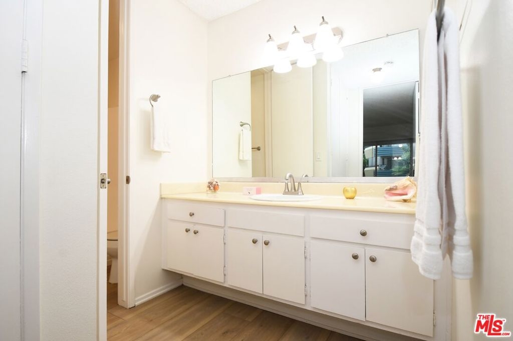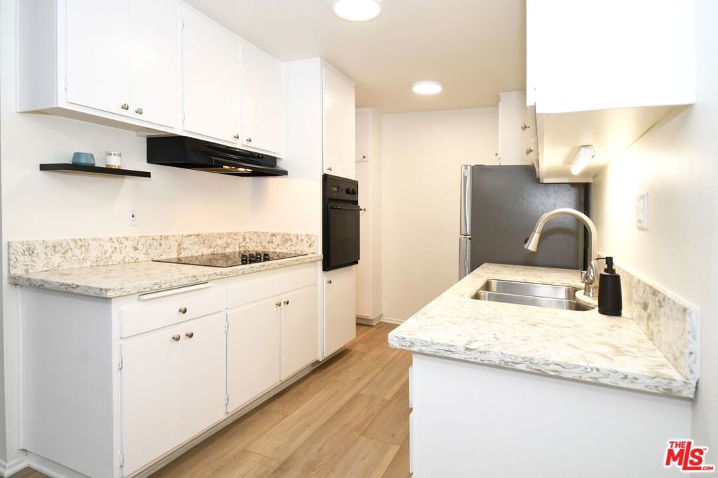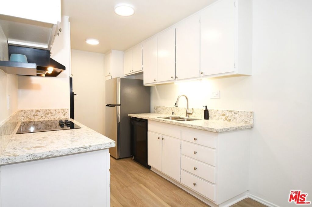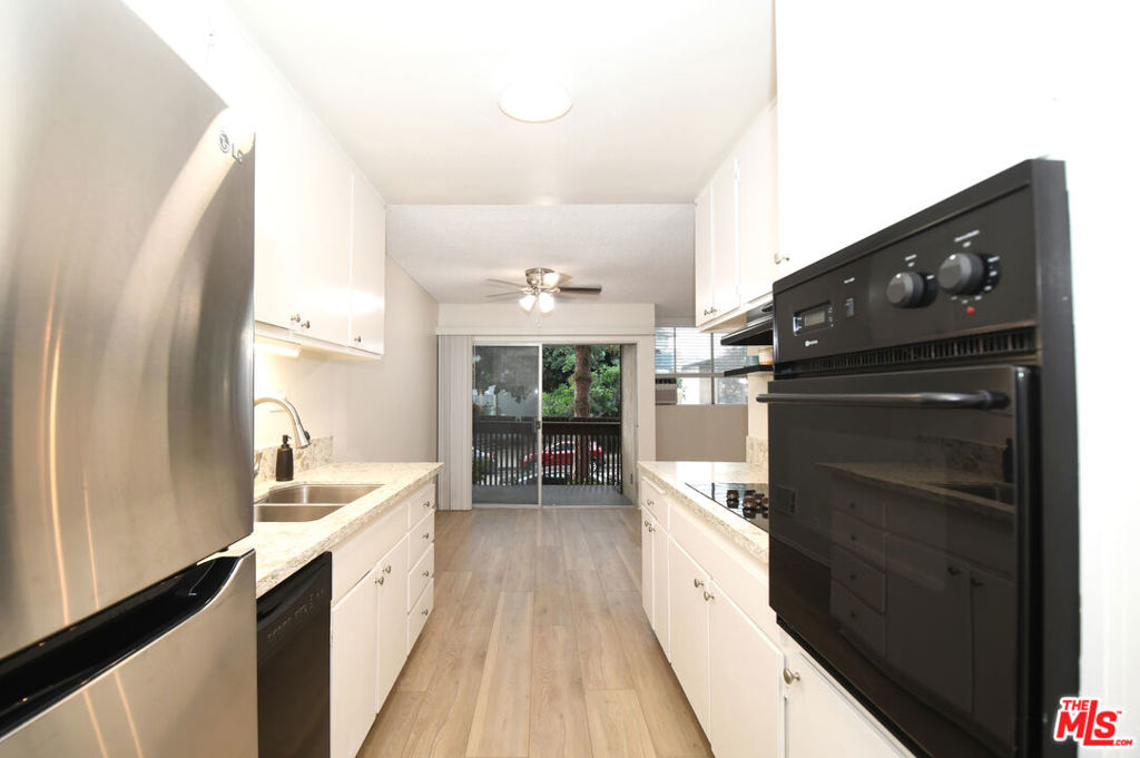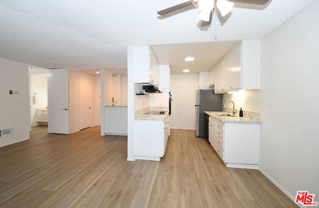 Exceptional buy for an updated, move-in ready property in the popular "Pines" complex. Upon entry you are welcomed by an open and inviting floorplan featuring large picture windows, sliding doors that lead to a private balcony, and elegant new wide-plank "floating" vinyl flooring throughout. Enjoy preparing meals in the galley kitchen with quartz countertops, stainless steel sink and fridge, and ceramic glass cooktop. The comfortable ensuite features a large vanity area, separate tub/shower, and sizable walk-in closet. Other highlights include a window A/C unit, contemporary fixtures, and 2 gated parking spaces. Complex features controlled access, lush manicured grounds with meandering pathways, onsite manager, nightly patrolled security, gym, package lockers, and fabulous outdoor pool and sundeck. Near the Culver City Mall, tech industries including TikTok, and a few blocks from 10-acre Fox Hills Park with an encompassing fitness trail, sports courts, grassy fields, and picnic areas.