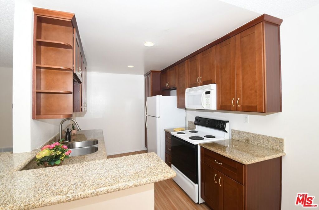 Excellent value in Culver City for a conveniently located 1st floor property in the resort-style "Pines" complex. Upon entry you are welcomed by an open living space highlighted with wood laminate flooring, large windows, and sliding glass doors that open to a covered balcony. The fully-equipped kitchen outfitted with maple shaker cabinets and granite countertops opens to a sizable dining with space to add an office niche...perfect for working from home or entertaining. The comfortable Ensuite offers a tiled bathroom, vanity area with large mirror, and generous-size double-sided walk-in closet. As a bonus, the property also has 2 assigned gated tandem parking spaces (#417). Complex features controlled access, lush manicured grounds with meandering pathways, onsite staff, nightly patrolled security, fitness center, package lockers, and fabulous outdoor pool and sundeck. Just 2 blocks from 10-acre Fox Hills Park and a plethora of eateries, coffee shops, grocery stores, and retail nearby.