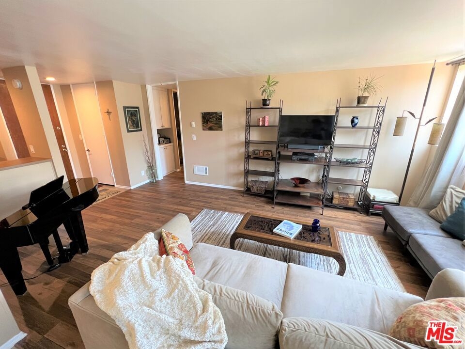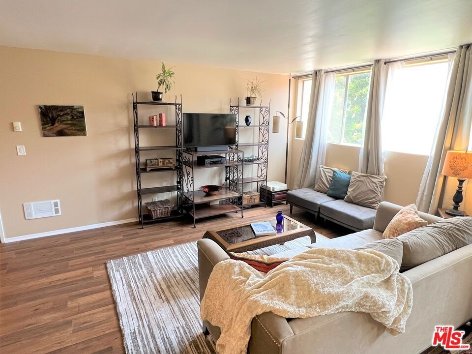 This value-priced corner end unit in the popular Pines complex features no shared walls and peaceful interior courtyard views from every room. Upon entry, take in the delightful living space featuring new wood laminate flooring and large picture windows in the living room, galley kitchen with maple cabinets and quartz countertops, and dining area that open to a charming balcony. Down the hallway are two comfortable bedroom with generous closets, 3/4 guest bathroom, and private primary suite with new quartz vanity, walk-in closet, and window AC unit. Additional highlights include smooth ceilings, close proximity to the elevator, and gated tandem parking (space #155). Complex offers lush grounds, inviting outdoor pool, fitness center, saunas, and clubhouse with game room and package lockers. Nearby is Fox Hills Park, Westfield Mall, Trader Joe's, Sprouts, Starbucks, Culver City Creative (C3), and many more shopping, dining, and entertainment destinations. A fantastic buy in Culver City!
