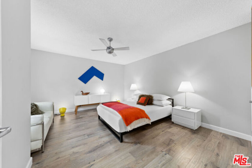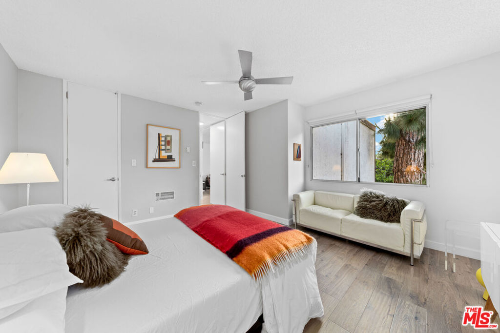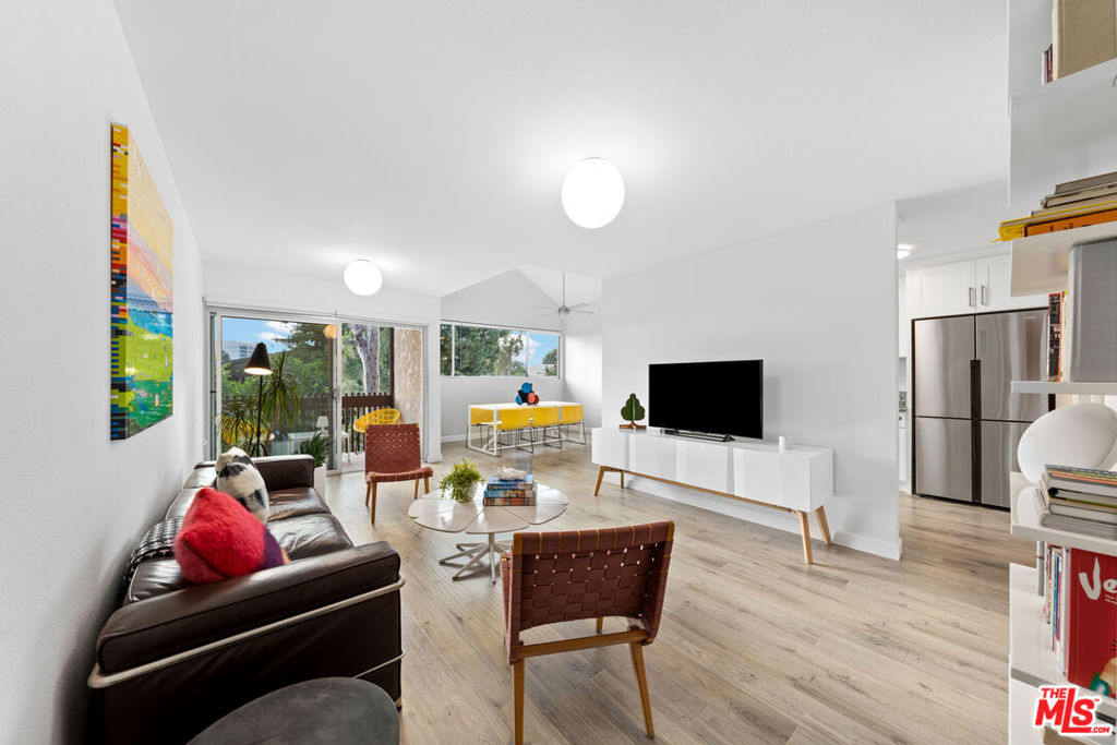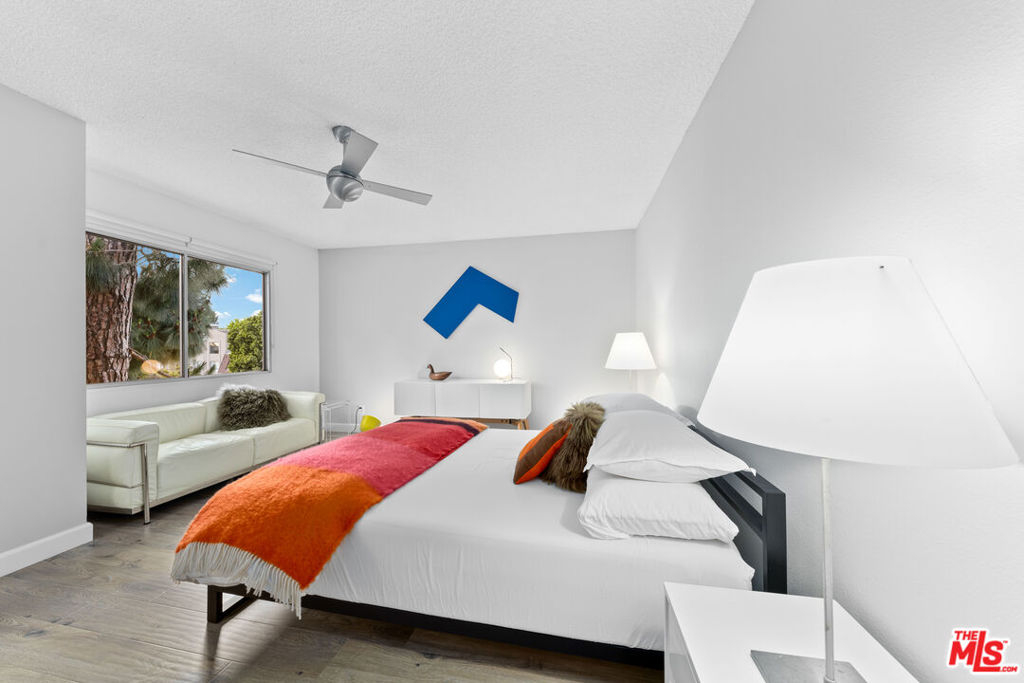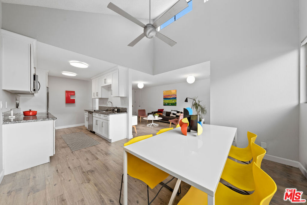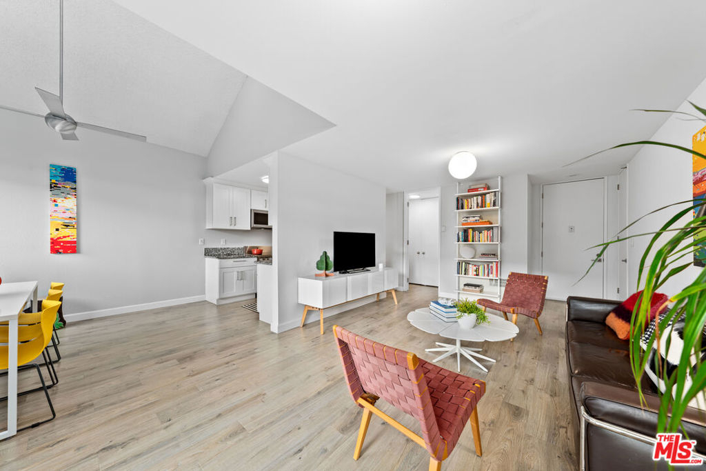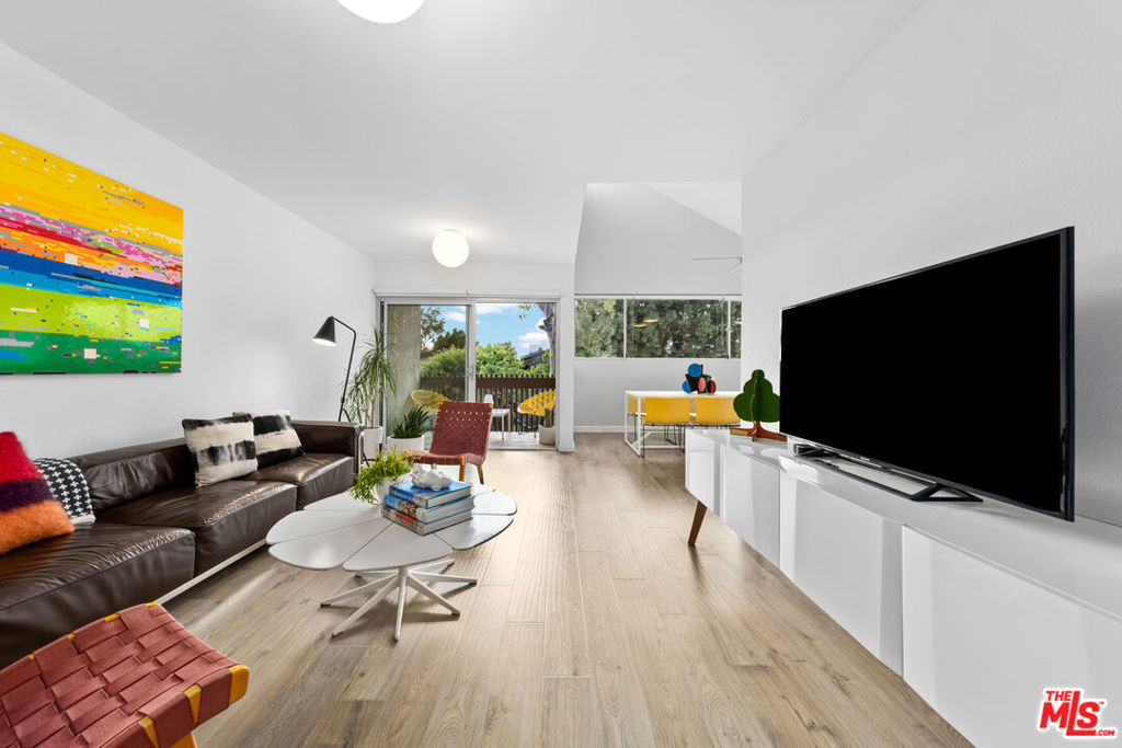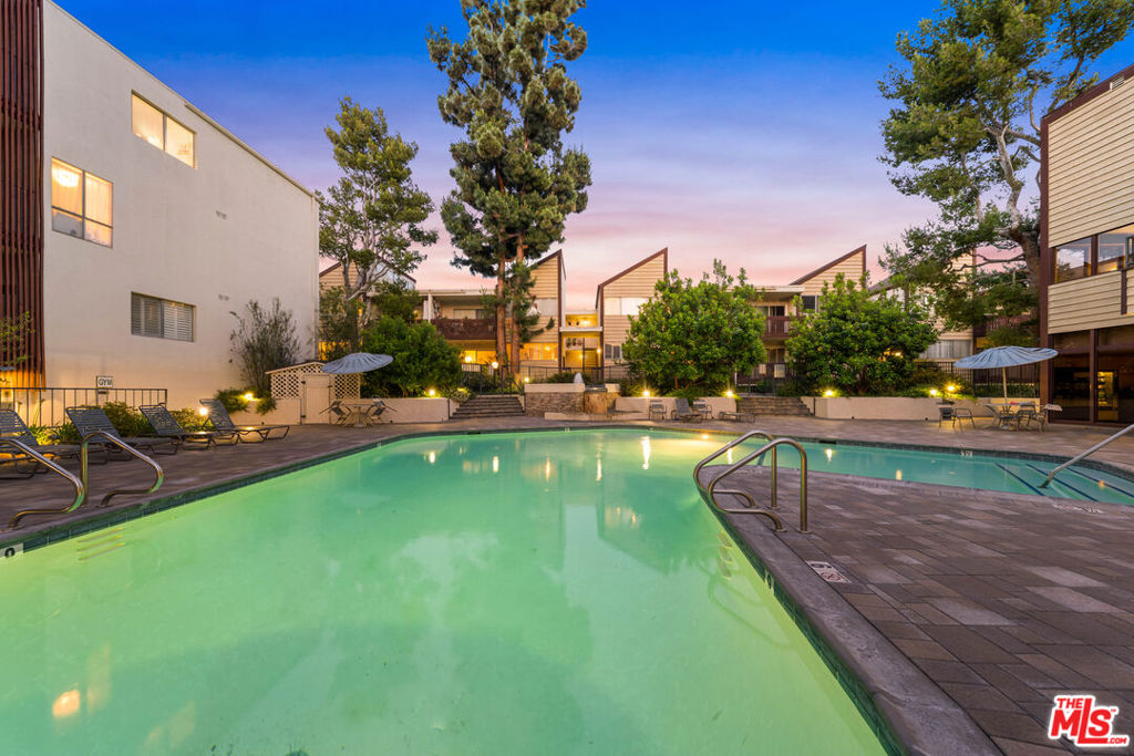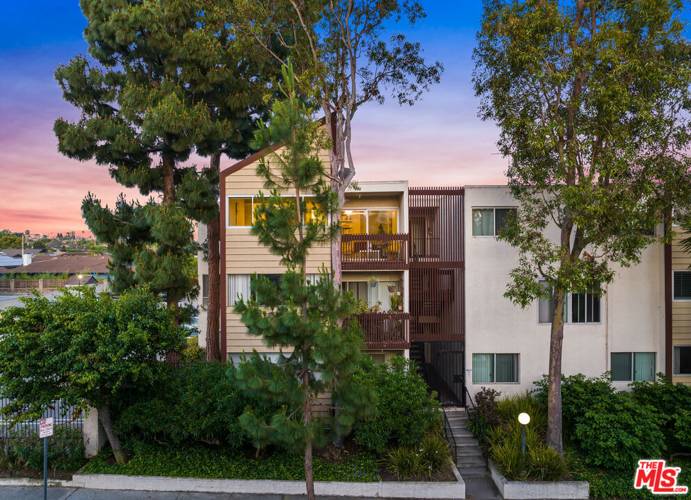 SOHO sophistication in coveted Culver City! Millennials, hipsters, techies, fashionistas & chic urban dwellers, will rejoice in this rare and remarkable top floor corner view unit with only one shared wall in the premier Pines complex featuring resort like amenities in a centralized location close to malls, LAX, trails, and parks. Enveloped by mature Eucalyptus and Pine trees yet bathed in natural light, the designer done floor plan features a spacious living room with a balcony that opens to a gourmet galley kitchen highlighted by a stainless 30" Bertazzoni electric range, Haier refrigerator, dishwasher, gleaming granite counters and crisp white cabinetry. Double height ceilings give exceptional volume and scale to the dining area anchored by a Modern Fan ceiling fixture, while a comfortable private bedroom with an ample walk-in closet is sure to impress. Gleaming gray wood laminate floors, Artemide Dioscuri lighting, new dual pane windows, and a new bathroom vanity complete the picture while water, trash, a heated pool, sauna, fitness room, recreation room, and EQ insurance are included in the HOA dues. Community laundry room across from the unit is the next best thing to in-unit laundry! Uniquely found 2 parking spaces (one assigned uncovered space and one covered space with a storage locker), Culver City schools and services, a pet friendly building policy with no weight/size limits, and almost $1.5mm in HOA reserves add to the appeal. A tremendous treat for the buyer with discerning taste!