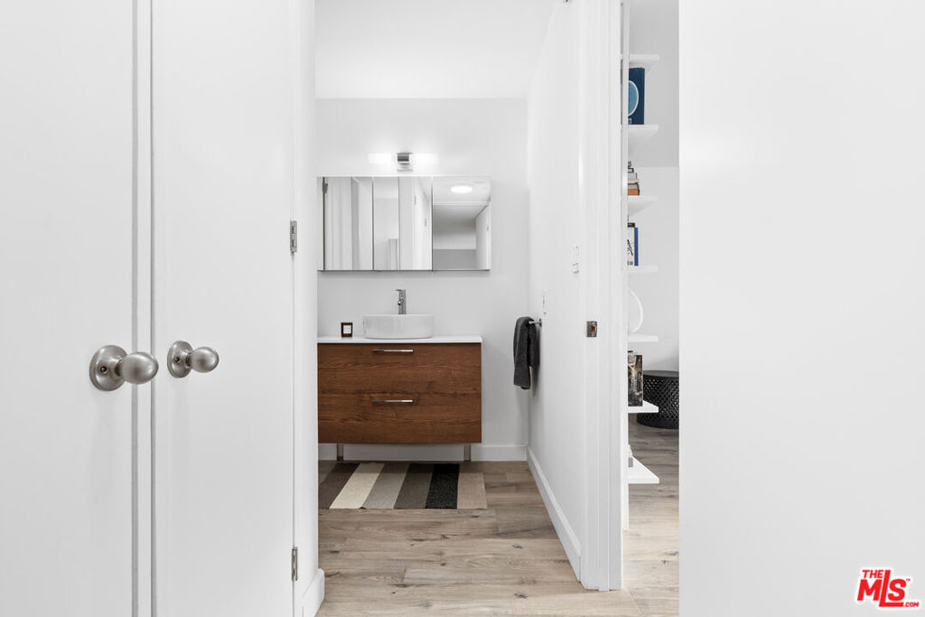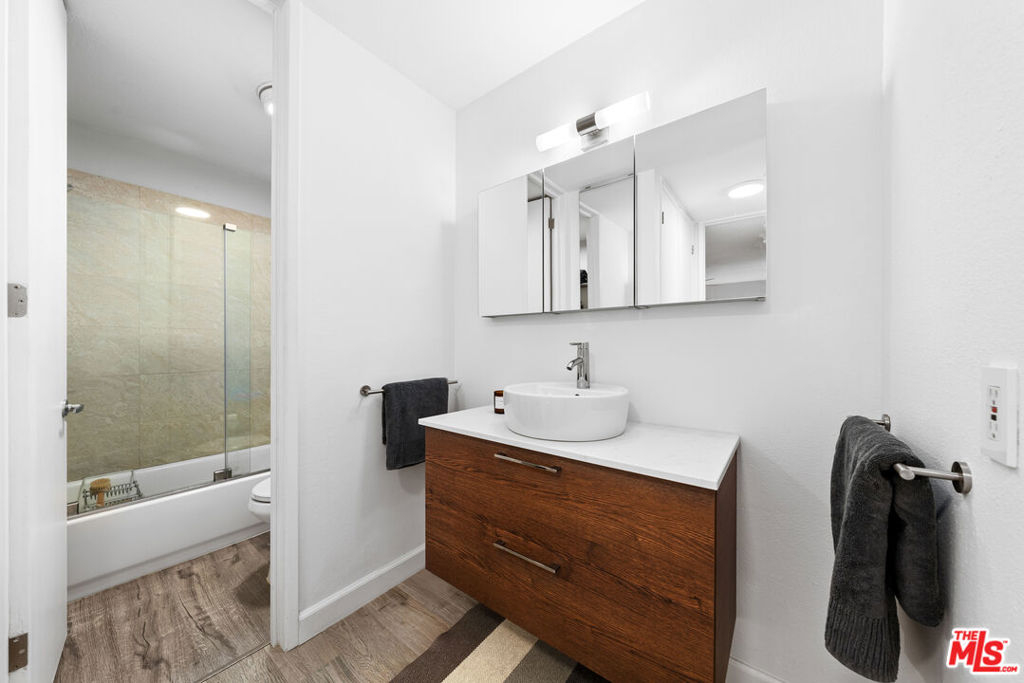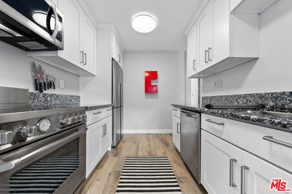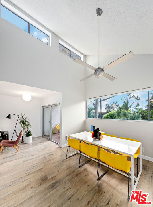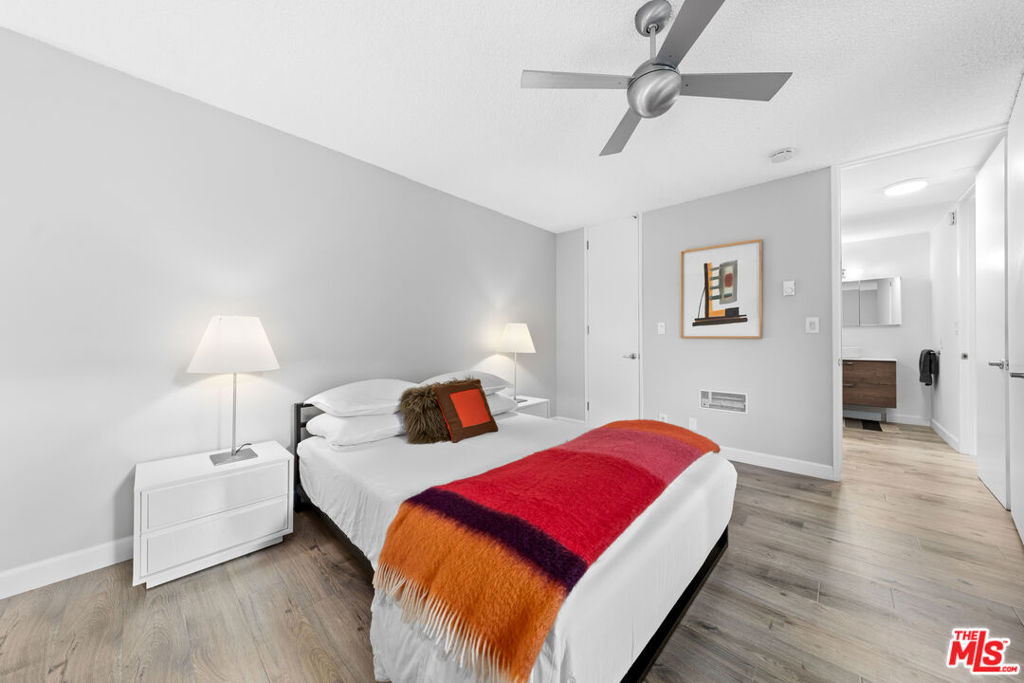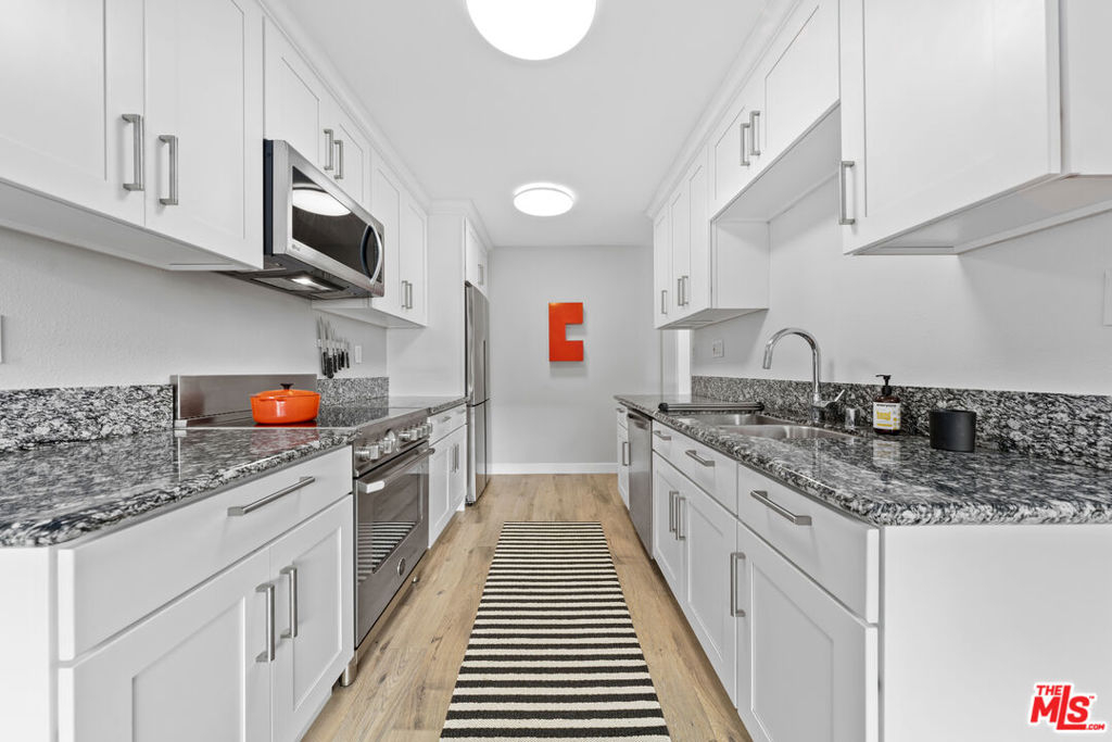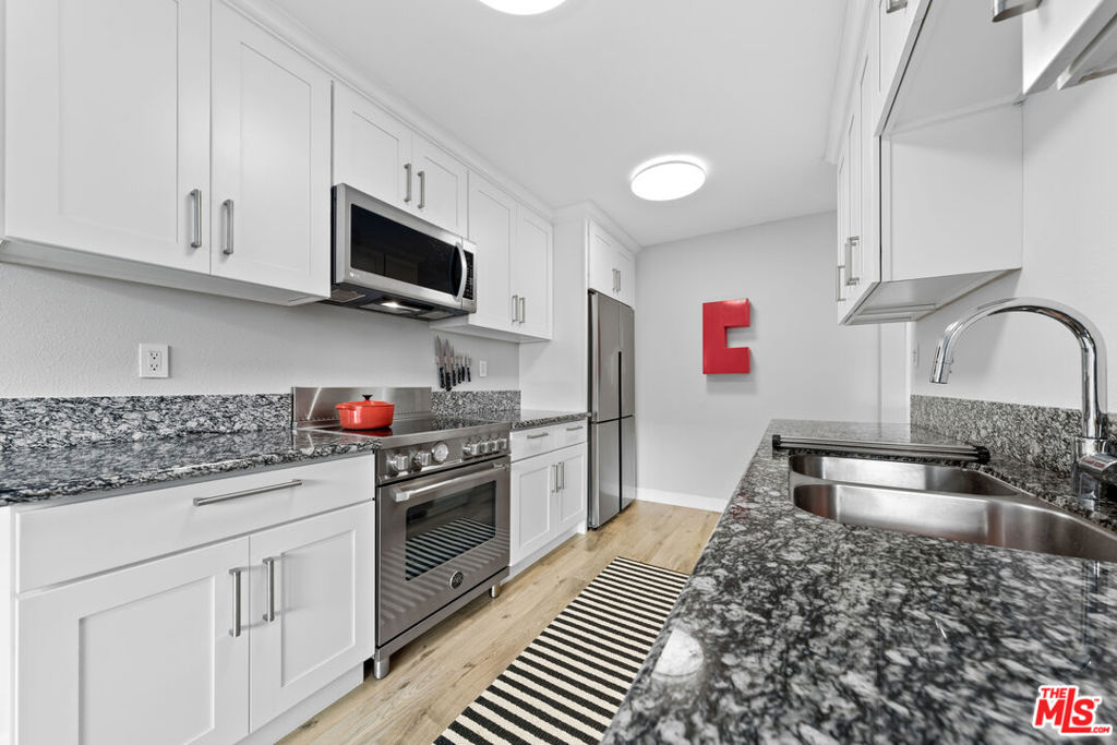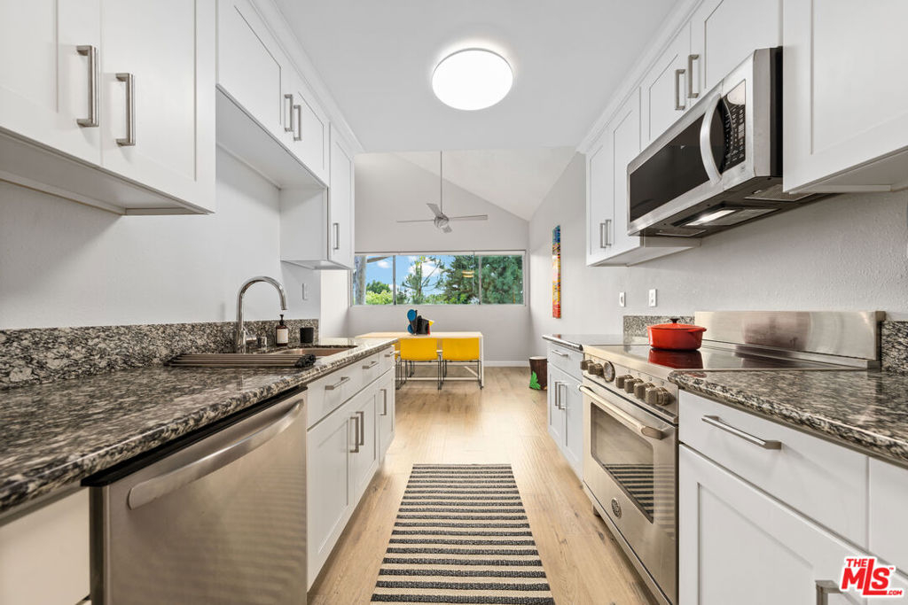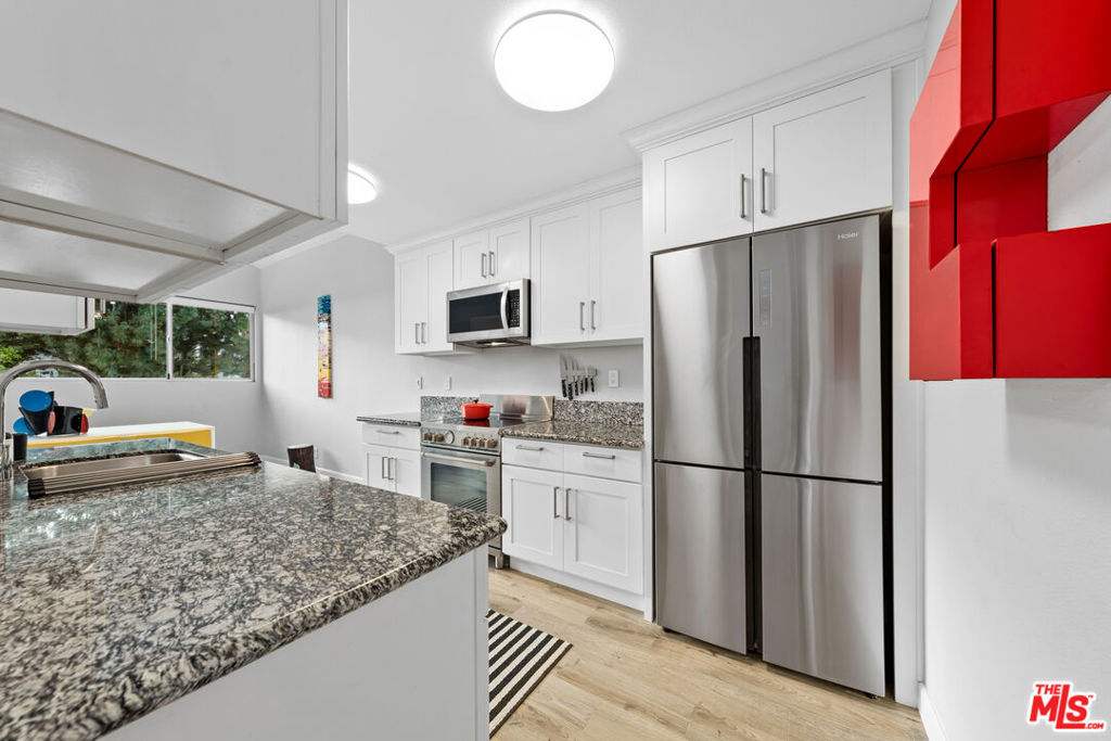 SOHO sophistication in coveted Culver City! Millennials, hipsters, techies, fashionistas & chic urban dwellers, will rejoice in this rare and remarkable top floor corner view unit with only one shared wall in the premier Pines complex featuring resort like amenities in a centralized location close to malls, LAX, trails, and parks. Enveloped by mature Eucalyptus and Pine trees yet bathed in natural light, the designer done floor plan features a spacious living room with a balcony that opens to a gourmet galley kitchen highlighted by a stainless 30" Bertazzoni electric range, Haier refrigerator, dishwasher, gleaming granite counters and crisp white cabinetry. Double height ceilings give exceptional volume and scale to the dining area anchored by a Modern Fan ceiling fixture, while a comfortable private bedroom with an ample walk-in closet is sure to impress. Gleaming gray wood laminate floors, Artemide Dioscuri lighting, new dual pane windows, and a new bathroom vanity complete the picture while water, trash, a heated pool, sauna, fitness room, recreation room, and EQ insurance are included in the HOA dues. Community laundry room across from the unit is the next best thing to in-unit laundry! Uniquely found 2 parking spaces (one assigned uncovered space and one covered space with a storage locker), Culver City schools and services, a pet friendly building policy with no weight/size limits, and almost $1.5mm in HOA reserves add to the appeal. A tremendous treat for the buyer with discerning taste!
