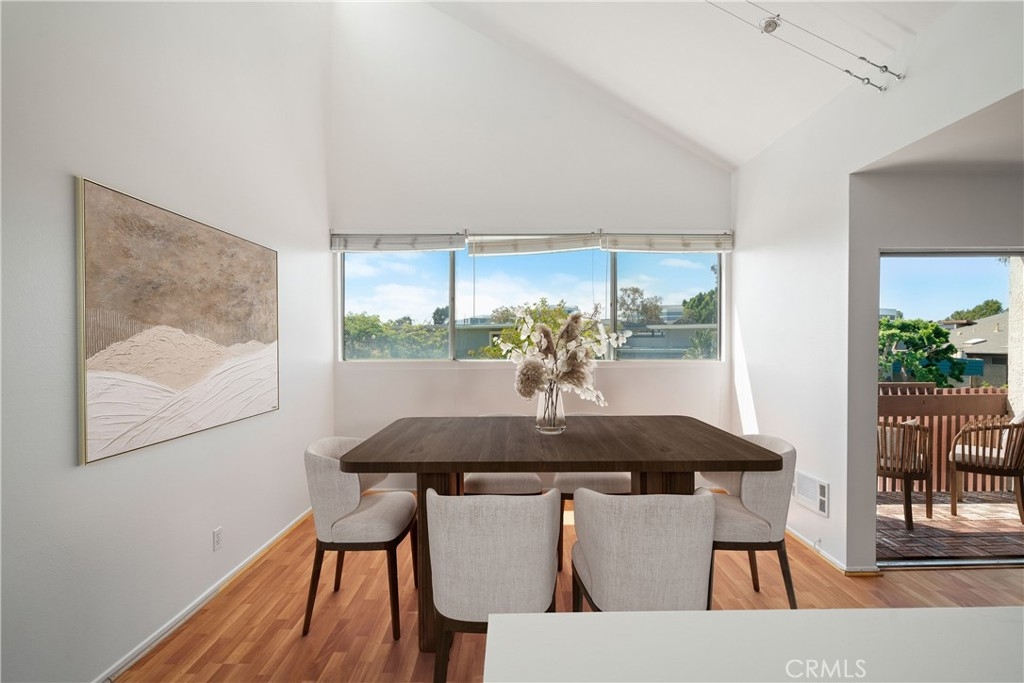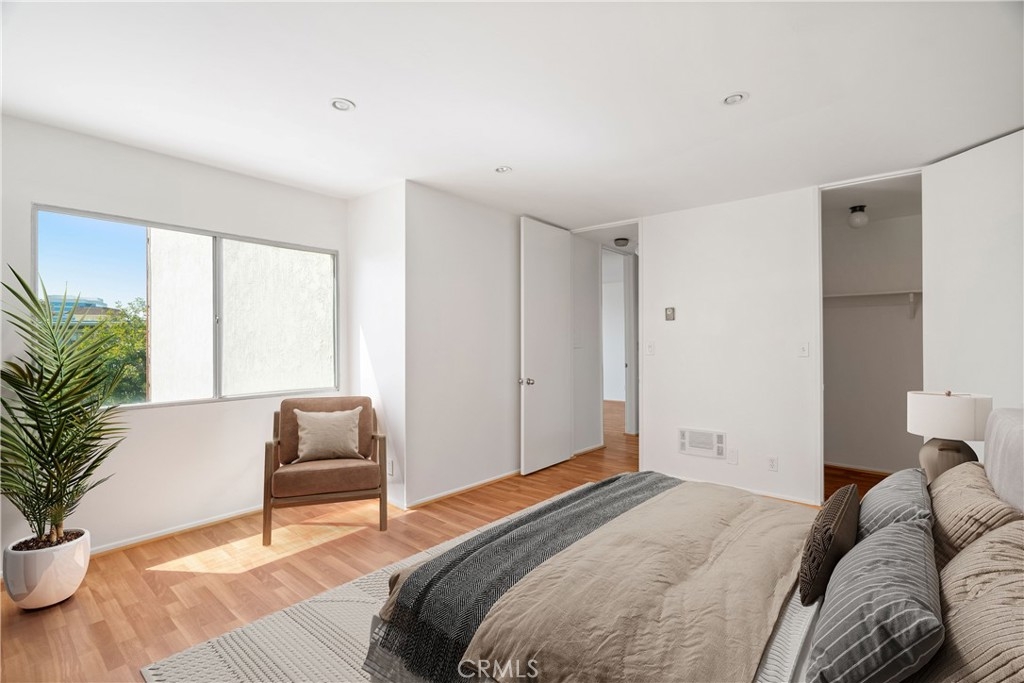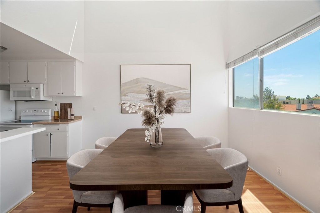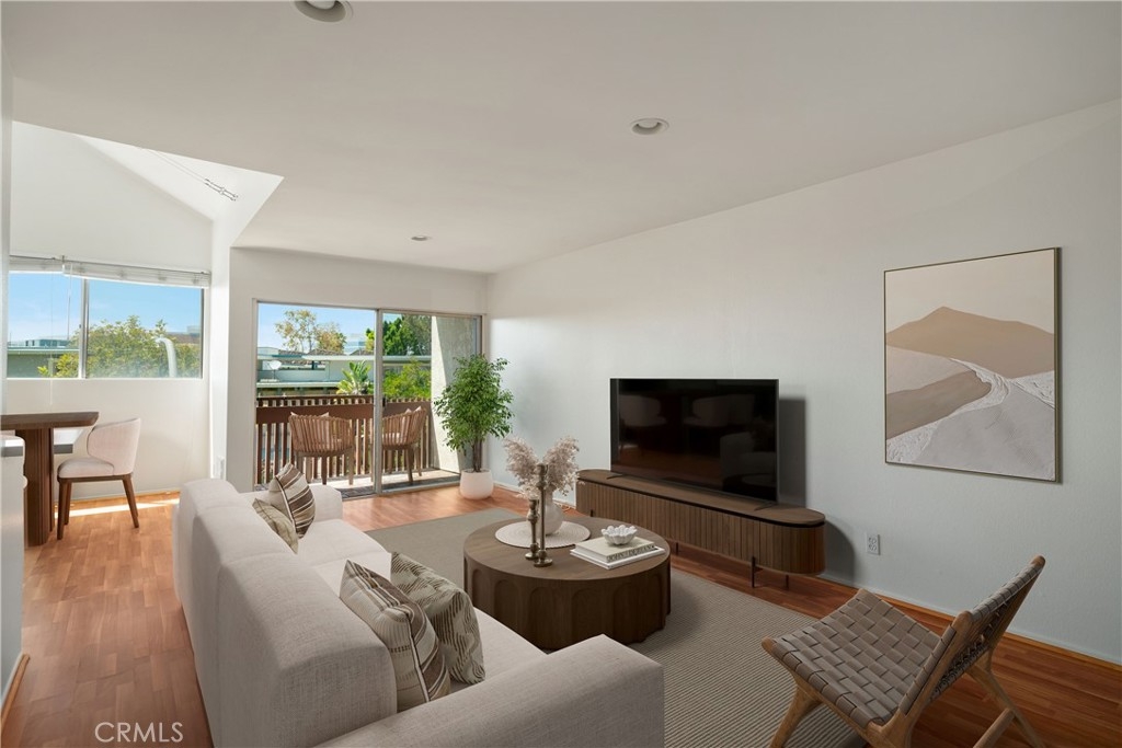 Light, bright, and airy, this West-facing condo features loft-like ceilings and a charming third-story location. The living room showcases floor-to-ceiling sliding glass doors that open to a private balcony with treetop views, creating a peaceful space to enjoy your morning coffee.The spacious bedroom is bathed in natural light, providing a tranquil and calm retreat. The generous living and dining areas feel even larger thanks to the high ceilings and plentiful windows that flood the apartment with light throughout the day. The unit features a modern white tile bathroom, laminate floors, and abundant storage, including a walk-in closet. The galley kitchen comes with a dishwasher, microwave, garbage disposal, stove and refrigerator. The kitchen has a small countertop that can be used as a coffee/breakfast bar with space for two bar stools.The complex offers a variety of amenities, including a newly painted pool area, gym, sauna, and a nostalgic clubhouse. Conveniently located near downtown Culver City, you'll have access to excellent shopping, a vibrant restaurant scene, and the beautiful beaches of Marina Del Rey. Don't miss the opportunity to own this stunning Westside unit. Hurry, this one won't last long! *** Pictures with furniture are virtually staged*** All information deemed reliable but not guaranteed. Buyer and buyers agent to do their own due diligence.