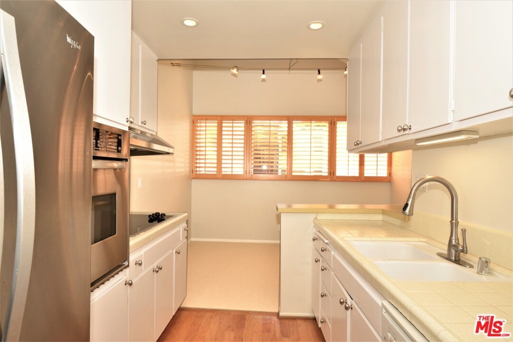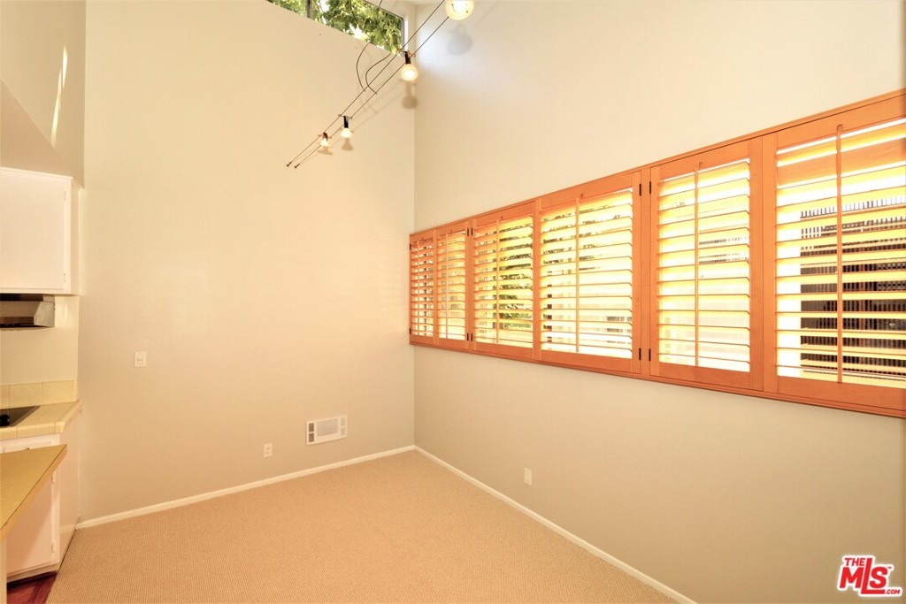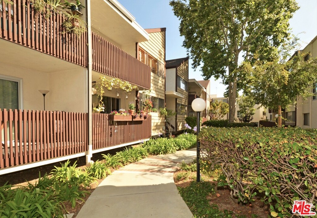 This distinctive top floor corner end unit w/private entrance (no hallways) is a special find. Enter into a large & inviting living room flooded w/natural light & oversized balcony boasting delightful views of the lush & colorful courtyard. The roomy kitchen w/stainless fridge & abundant cabinets opens to the dining room featuring a large wall of windows w/plantation shutters & soaring volume ceilings w/clerestory window. To the rear of the home is a full guest bath, good-size bedroom w/full-length closet & second balcony, & spacious master ensuite w/2 separate closets & plantation shutters. Both bedrooms are private & offer peaceful treetop views. Addt'l highlights include real hardwood floors & brand new carpeting throughout, modern new paint & hardware, smooth ceilings, & convenient carport parking below unit (space #163). Amenity-rich complex w/controlled access, meandering pathways, sparkling outdoor pool & sundeck, gym, saunas, & clubhouse w/game room, kitchen, & on-site staff.
