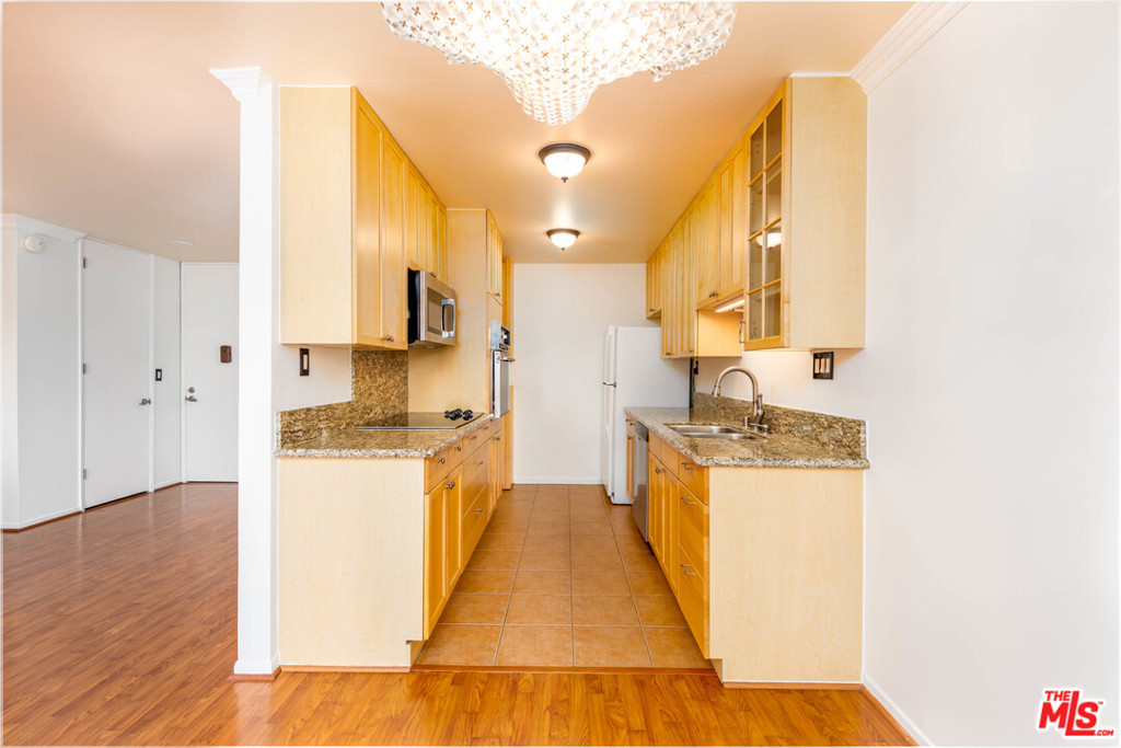The moment you step inside this wonderful home you will be delighted by the open and airy floorplan highlighted by ornamental chandeliers, crown molding, exceptional natural lighting, and serene views with a stately paperbark tree framed by the large windows as the centerpiece. Enjoy preparing meals in the roomy galley kitchen outfitted with custom maple shaker cabinets, granite countertops and backsplash, and ceramic tiled flooring. Down the hallway is a comfortable bedroom with wall-to-wall closets, lovely bathroom with custom tilework and decorative vanity and mirror, and spacious and private Ensuite with a large walk-in closet, elegant vanity, and deep soaking tub. Additional highlights include smooth ceilings throughout, wood laminate flooring in the main living area, charming outdoor balcony surrounded by mature trees, and side-by-side parking by the elevator. The resort-style Pines complex offers numerous amenities including an inviting outdoor pool and sundeck, fitness center, saunas, staffed clubhouse with upstairs game room, and patrolled nightly security. Ideal location near numerous retail shops, restaurants and cafes, and public parks.