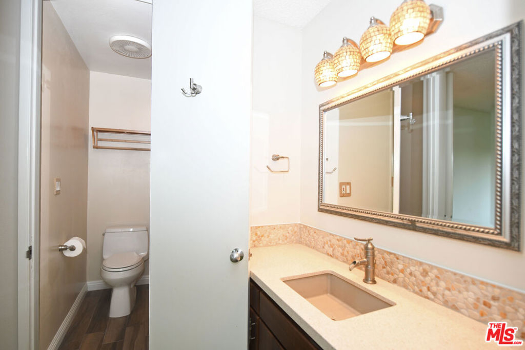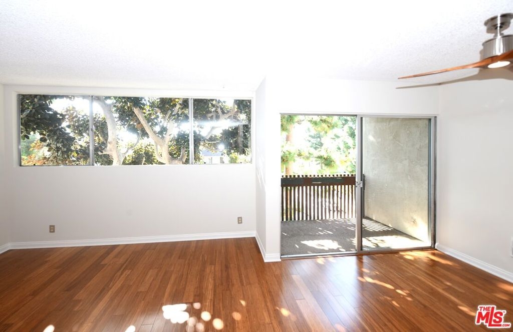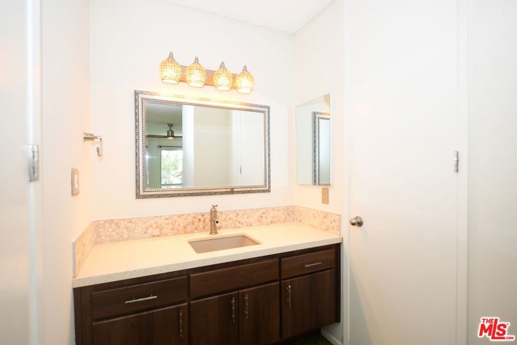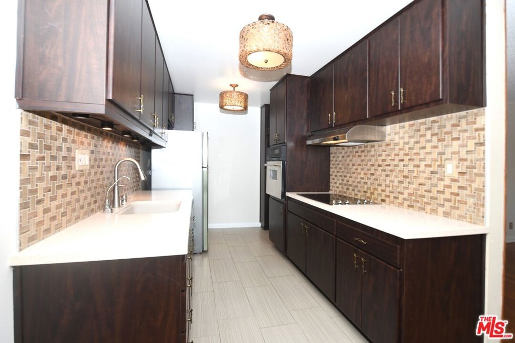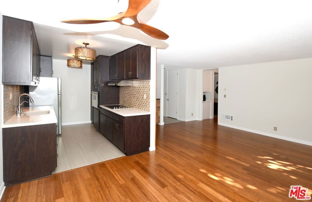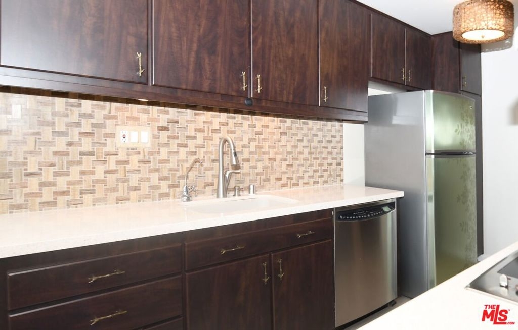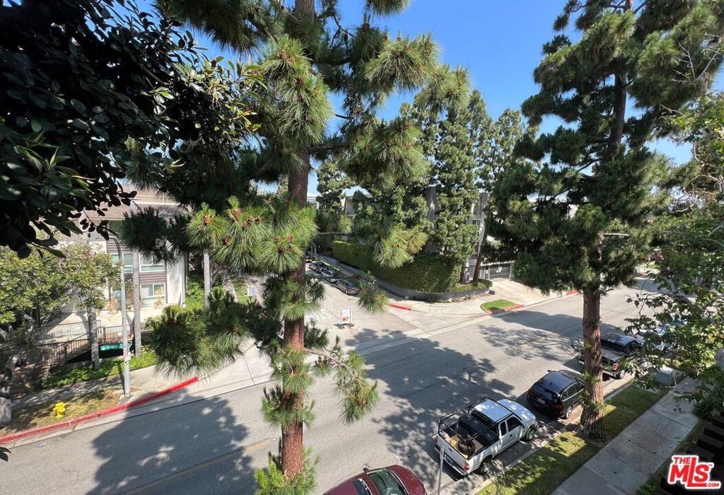 Cool modern meets mid-century retro in this one-of-a-kind top floor condo in The Pines community. Upon entry take in the inviting living space featuring luxury bamboo flooring; remodeled kitchen with quartz counters, stainless steel appliances, water filtration system, and full decorative backsplash; hip bar area with cork walls; and large wall of windows with peaceful tree views that filter the natural sunlight. Both bathrooms boast upscale tile and stonework, whimsical lighting, and built-in Bluetooth ceiling speakers. Each bedroom is roomy, private, and thoughtfully-designed with colorful "vintage" carpeting by FLOR, airplane propeller ceiling fans, and large custom closets with adjustable shelving. Desirable location near the elevator and complex amenities including an inviting outdoor pool and sundeck, fitness center, sauna, and clubhouse with onsite manger, package storage lockers, and game room. Gated subterranean SxS parking also included (spaces #100 & #101). A fantastic home!