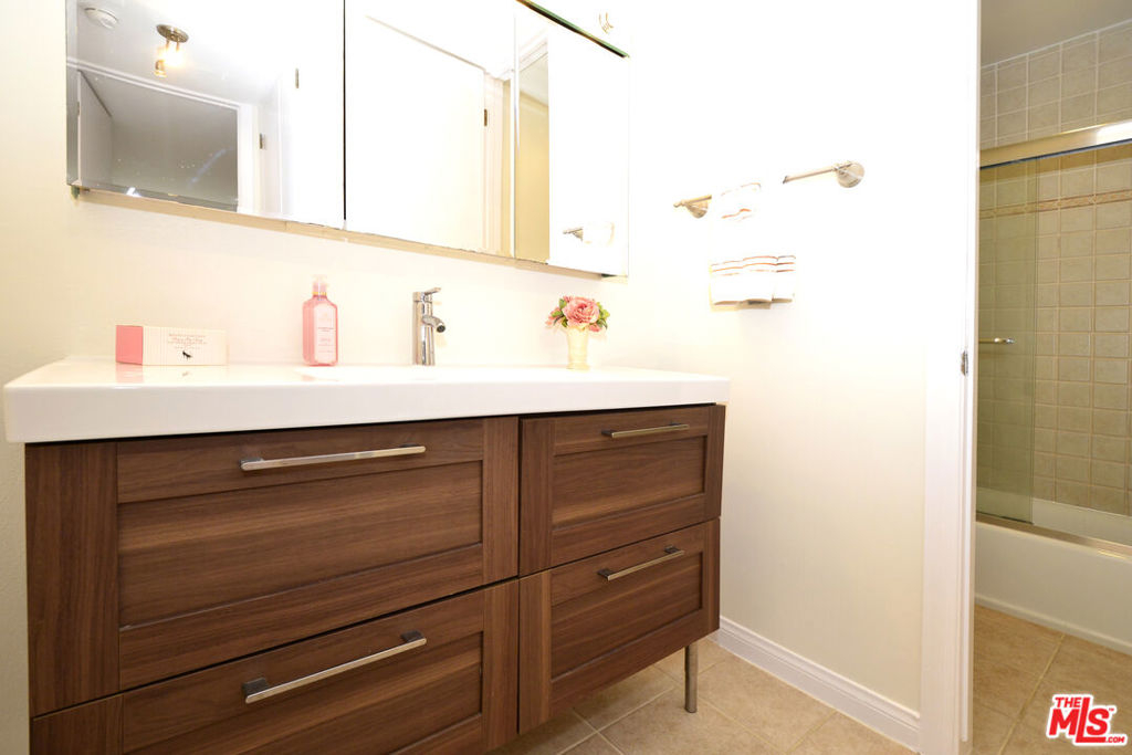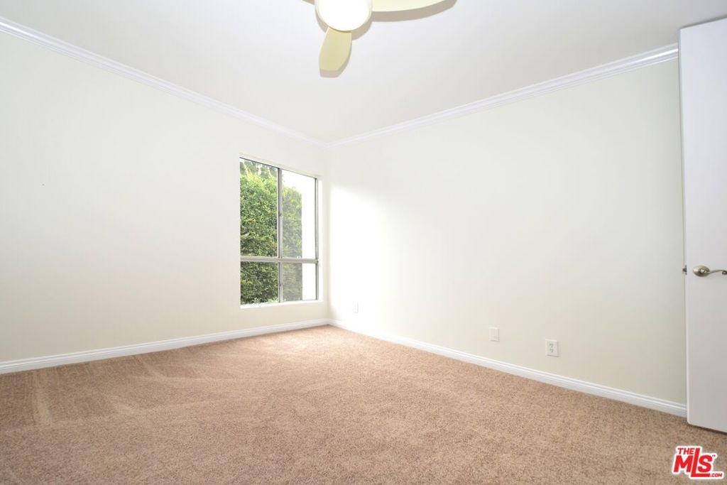 Enjoy the natural lighting, privacy, and treetop views this upper floor unit in the popular 'Pines' complex has to offer. Upon entry, take in the warm and inviting living space highlighted with smooth ceilings, decorative crown molding and baseboards, and large picture windows outfitted with plantation shutters. The crisp white galley kitchen is perfect for preparing meals to enjoy in the adjacent dining area or the quaint outdoor balcony. The roomy Ensuite boasts a dual-entry walk-in closet, ceiling fan, serene views, and tiled bathroom with contemporary vanity. Additional features include new paint, new carpeting, and gated carport parking behind unit (tandem space 380). Complex amenities include controlled access, inviting outdoor pool, gym, saunas, clubhouse with game room and on-site manager, and mature landscaping with meandering pathways. Ideal location near 10-acre Fox Hills Park, numerous retail and dining establishments, and easy access to popular west side destinations.